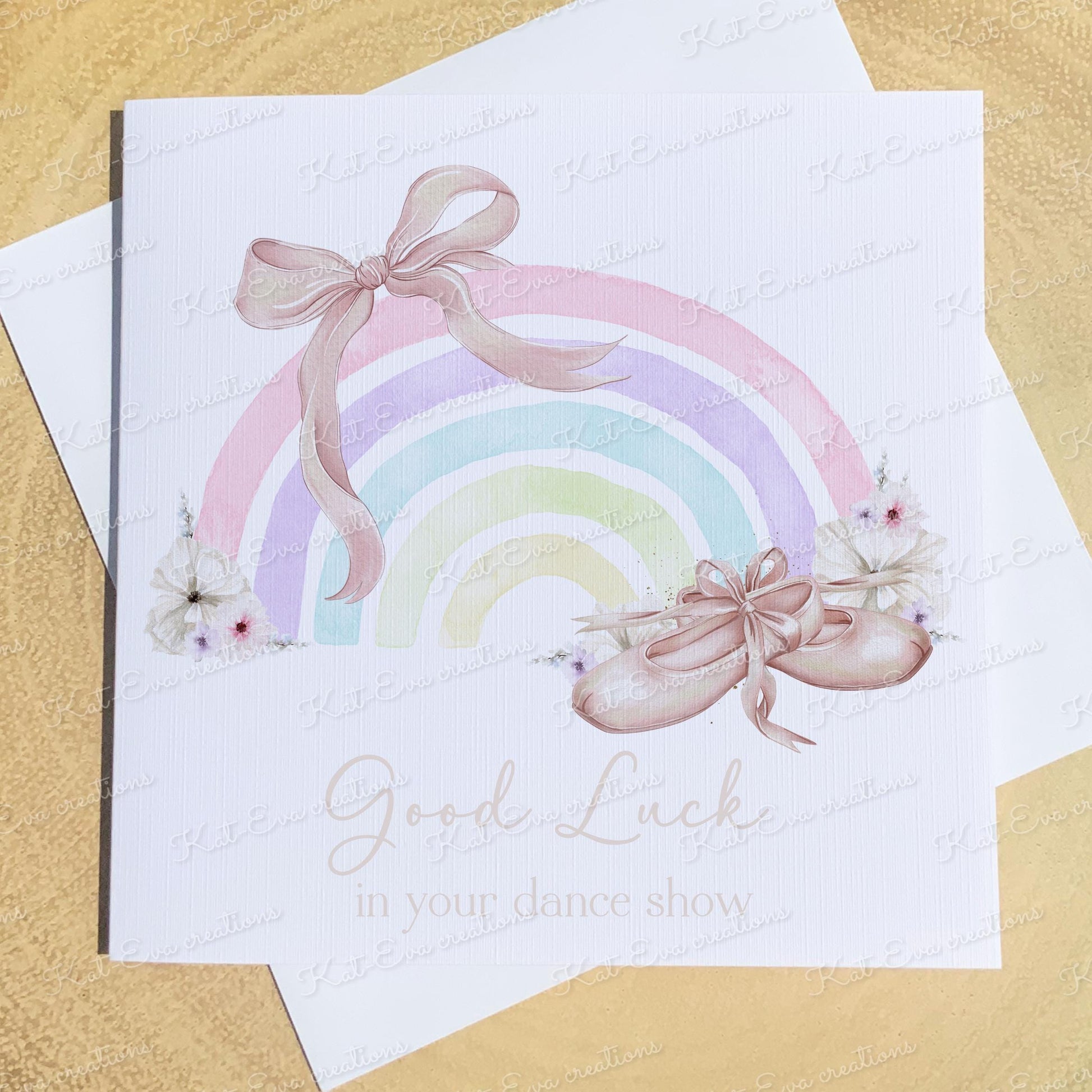 Personalised ballet, ballerina card. Ballet slipper rainbow. Good luck, well done, congratulations or birthday card. Choice of wording