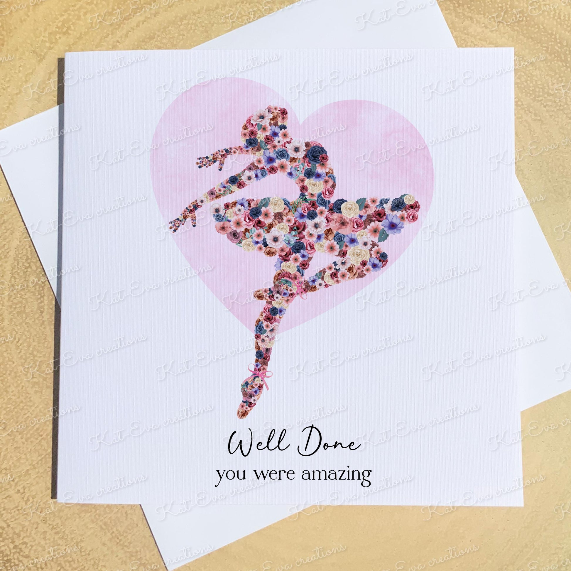 Personalised ballet, ballerina card. Floral ballet card. Good luck, well done, congratulations or birthday card. Choice of wording