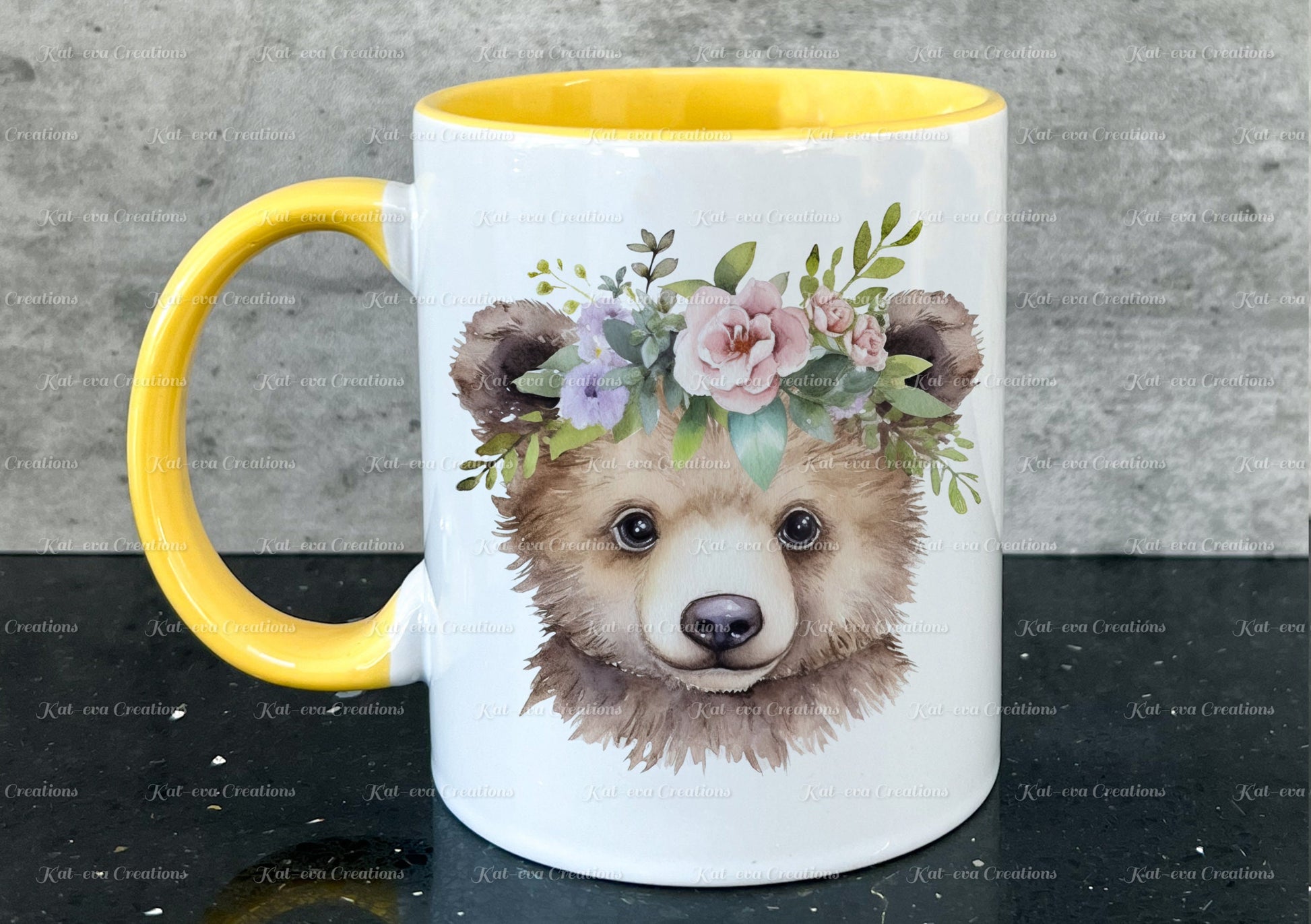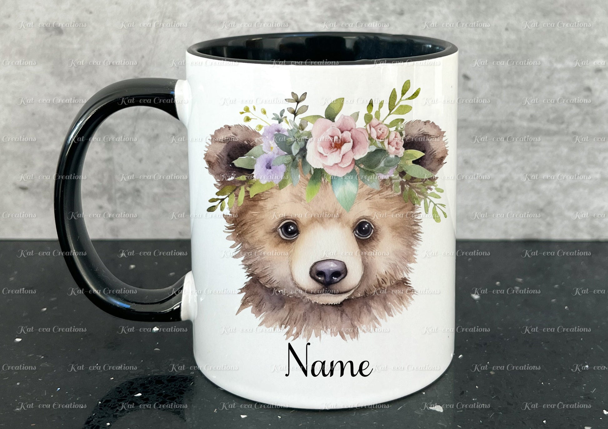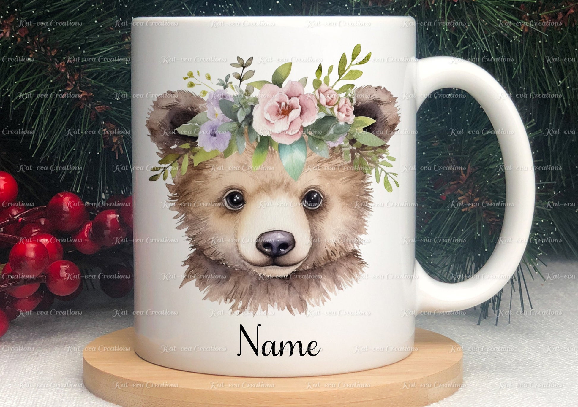 personalised bear mug. Gorgeous Floral Bear Cup. Ideal for birthday, secret santa, stocking filler or Christmas present