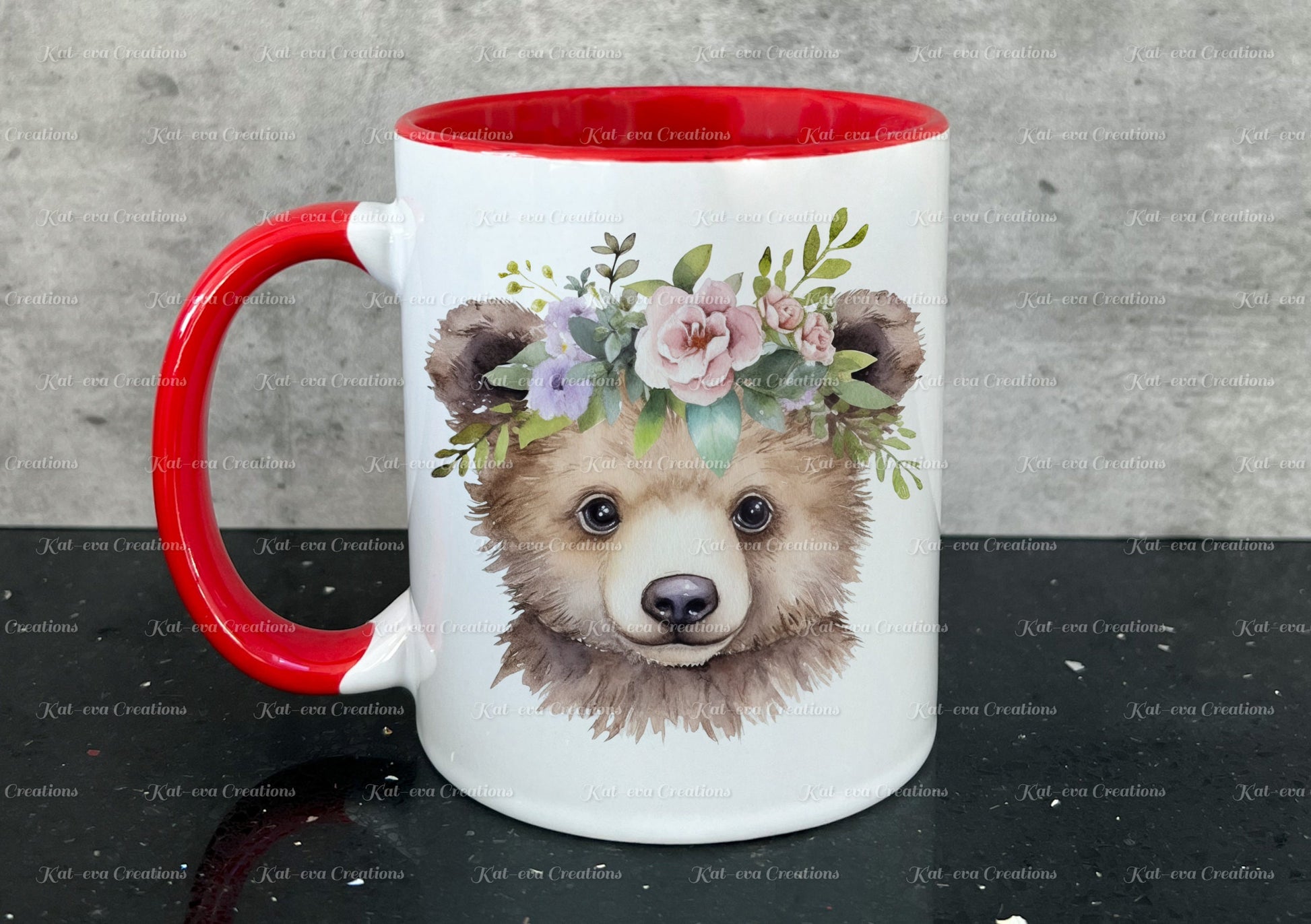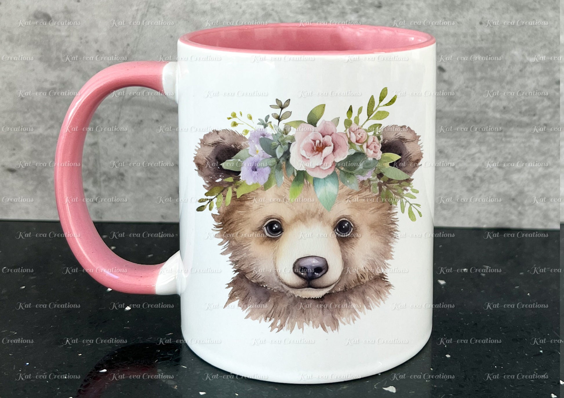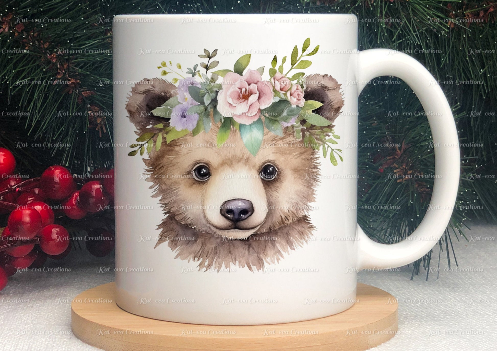 personalised bear mug. Gorgeous Floral Bear Cup. Ideal for birthday, secret santa, stocking filler or Christmas present