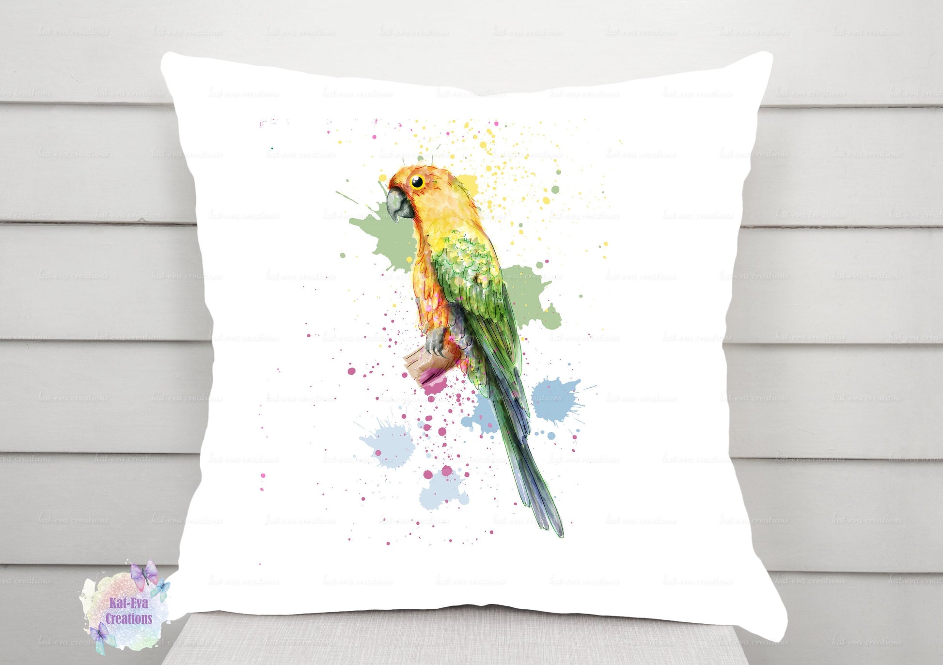 Personalised budgie, parrot cushion. Watercolour birds cushion