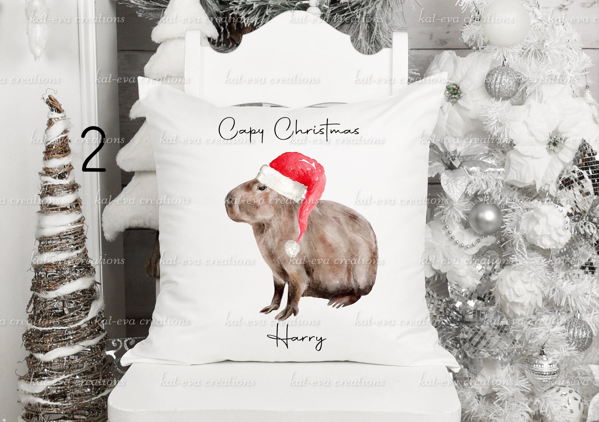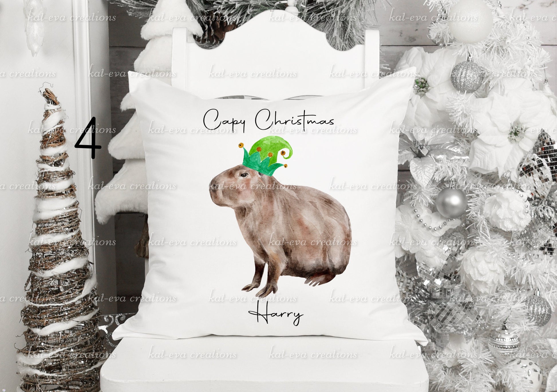 personalised christmas capybara cushion, Elf, Santa, Father Christmas