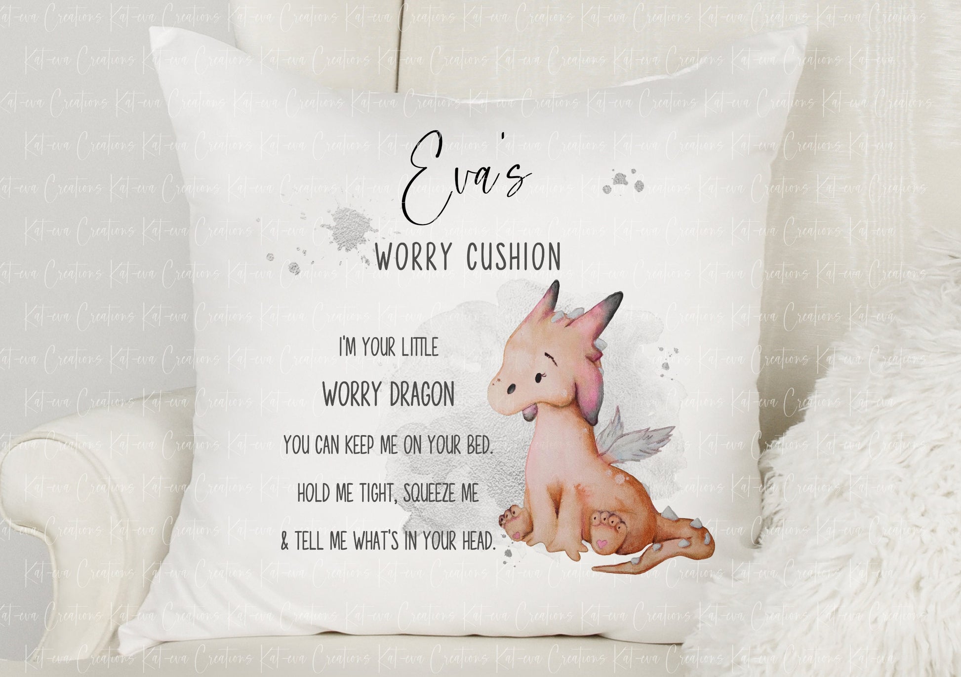 Can be personalised or have worry cushion wording