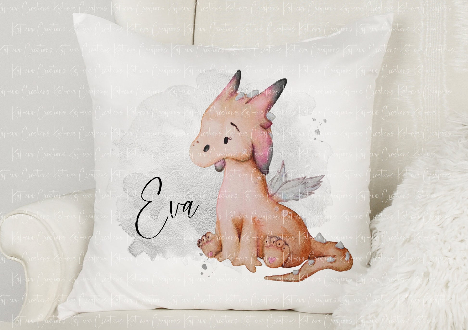 Beautiful watercolour dragon cushion