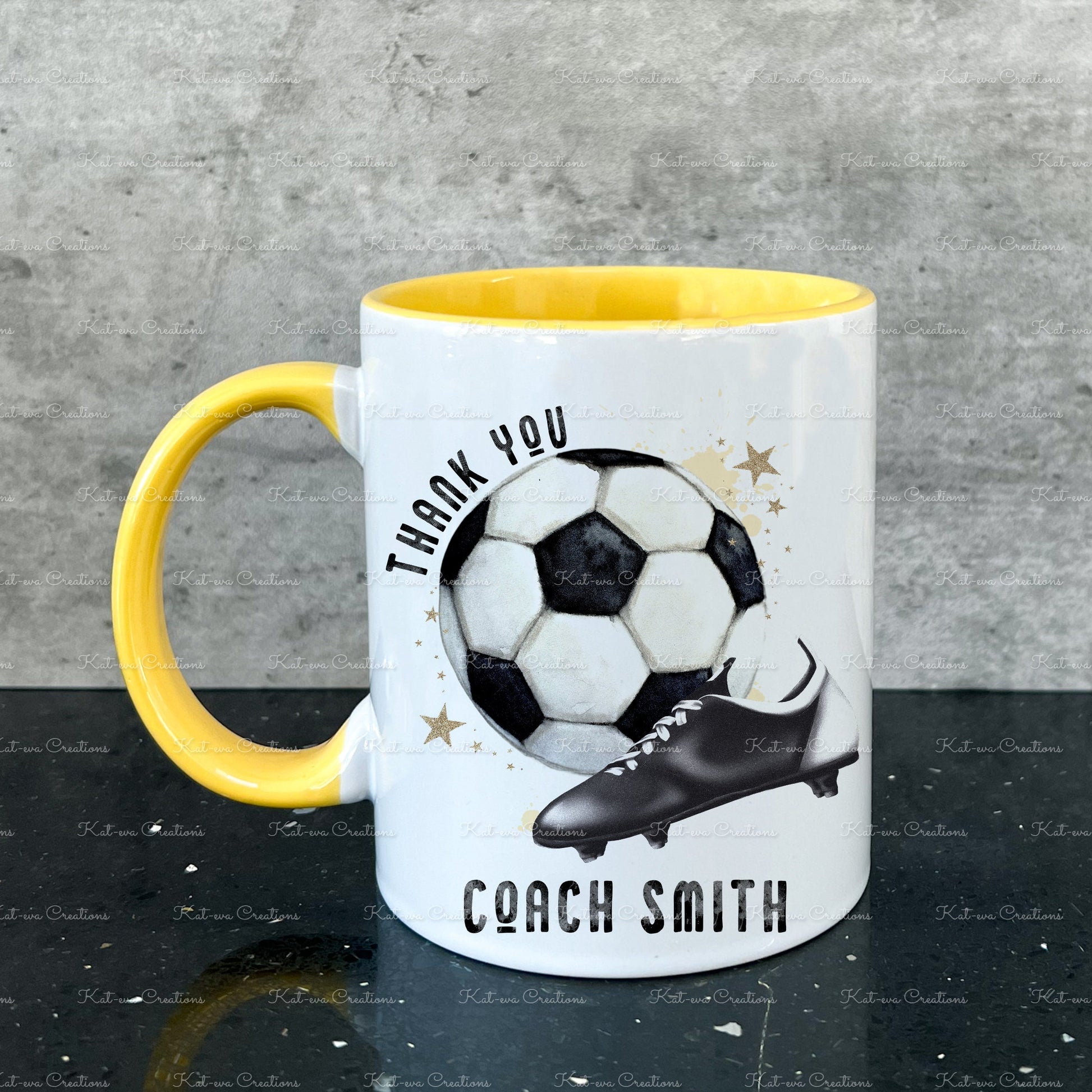 Personalised football mug. ideal christmas or birthday gift. coach present