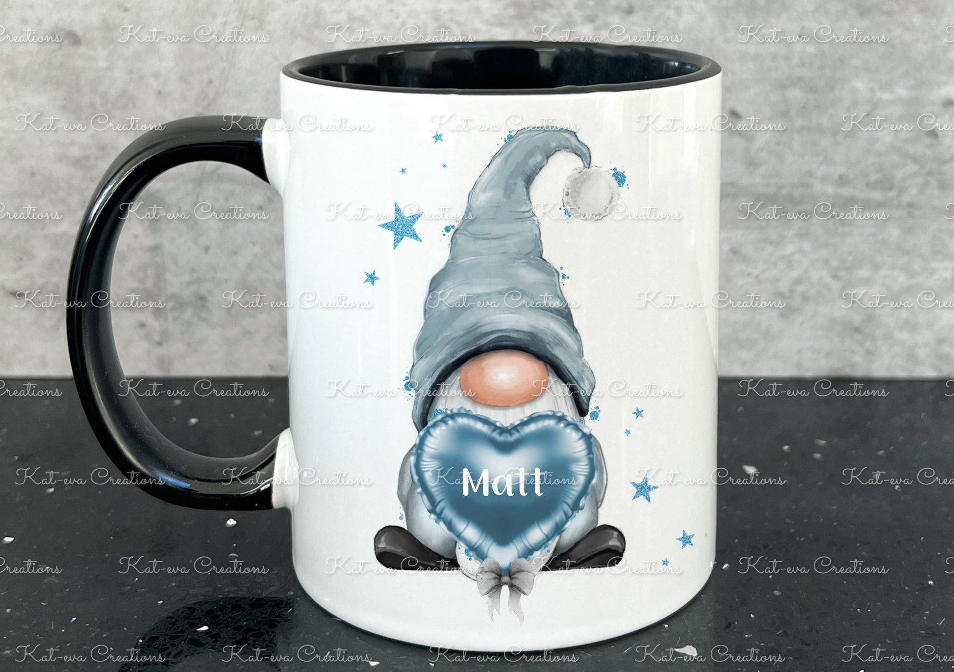 personalised gnome mug. personalised gonk mug. Choice of colour. Ideal christmas gift, secret santa present, birthday, wedding or engagement