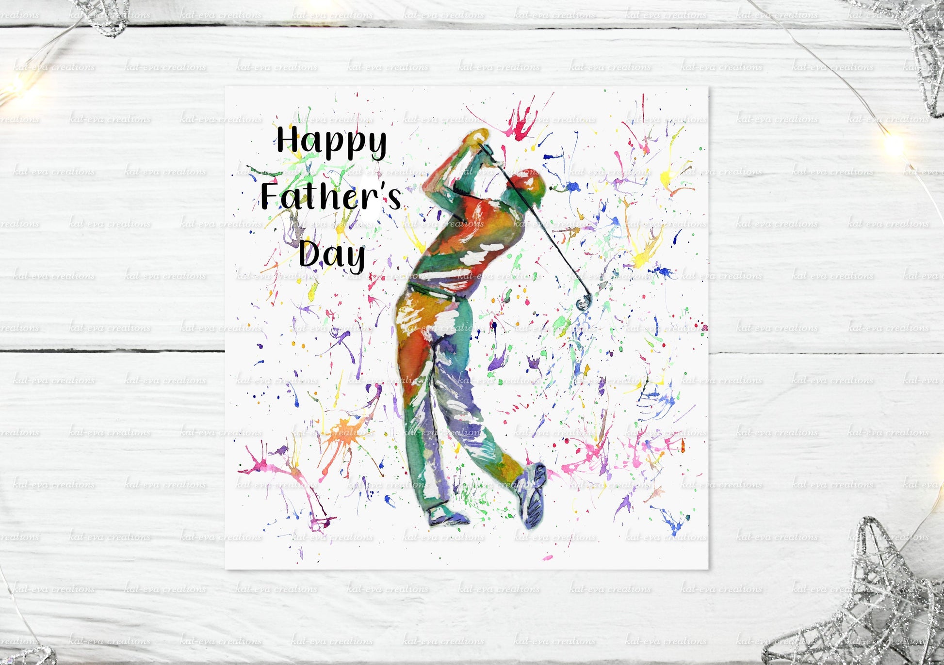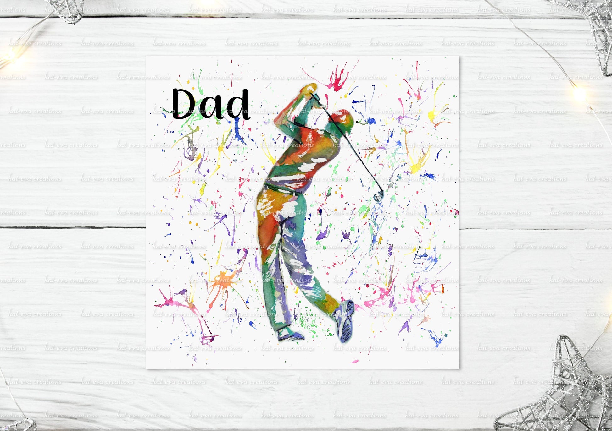 personalised golf, golfer watercolour card. ideal for birthdays, father's day or any other occasion