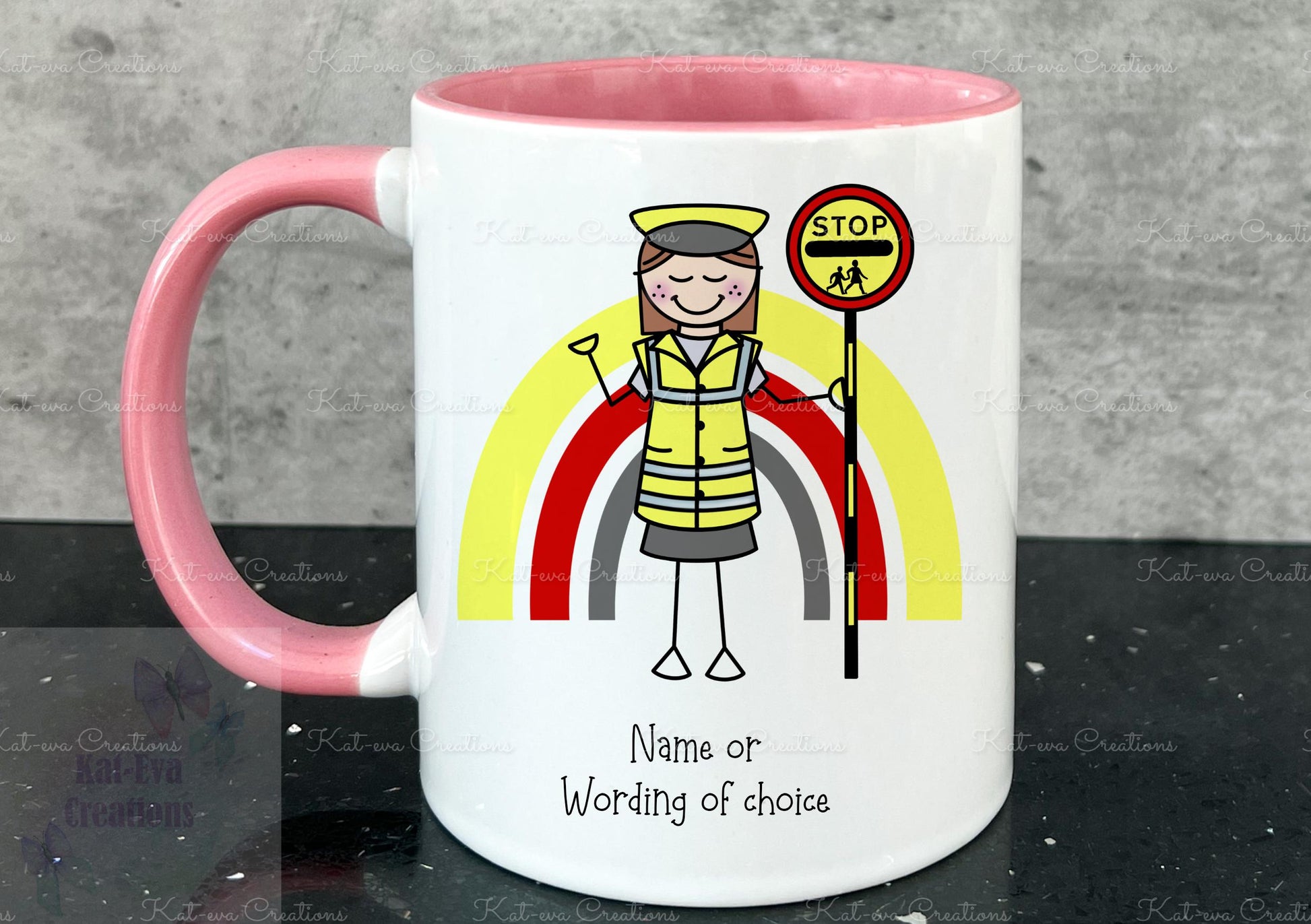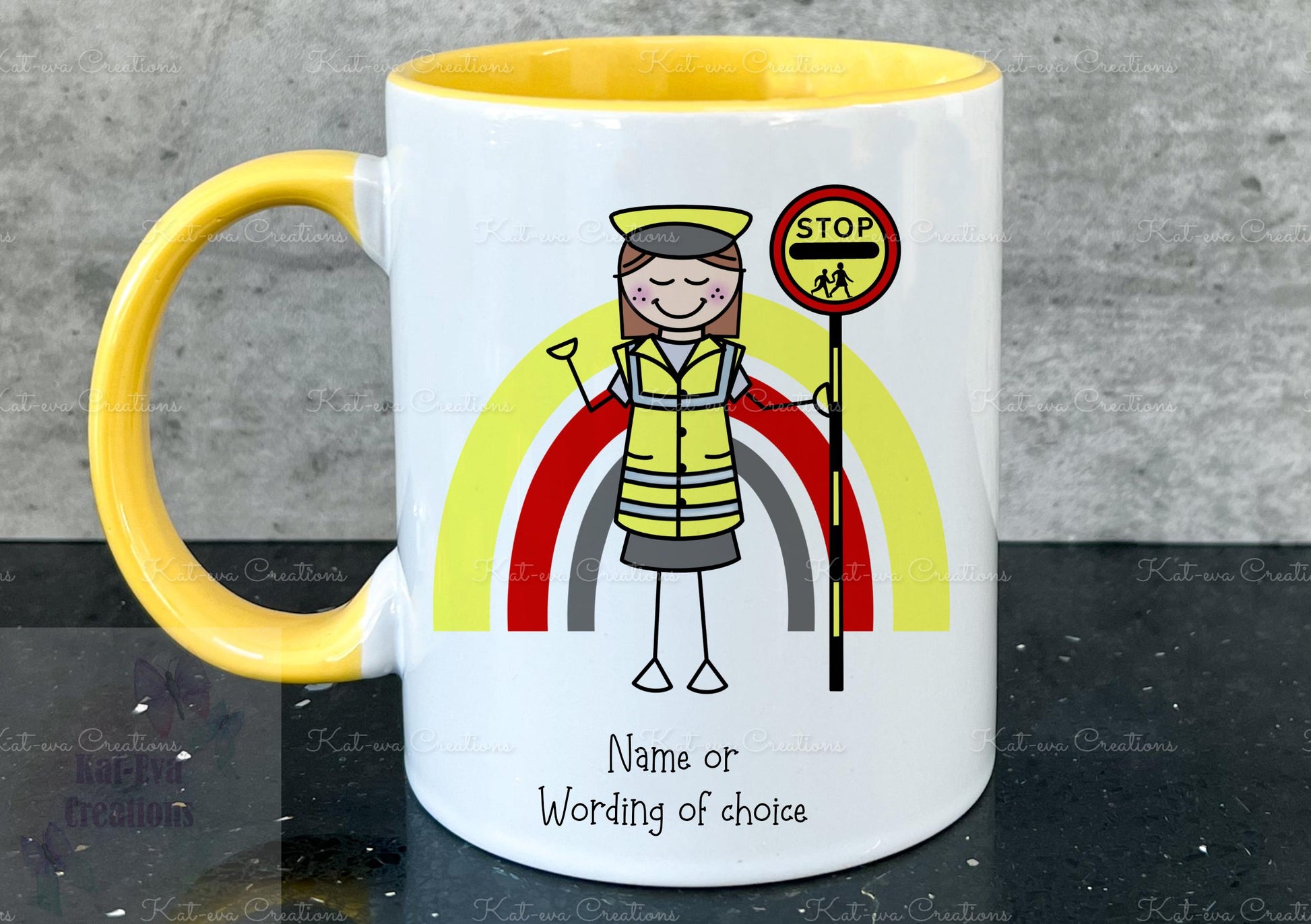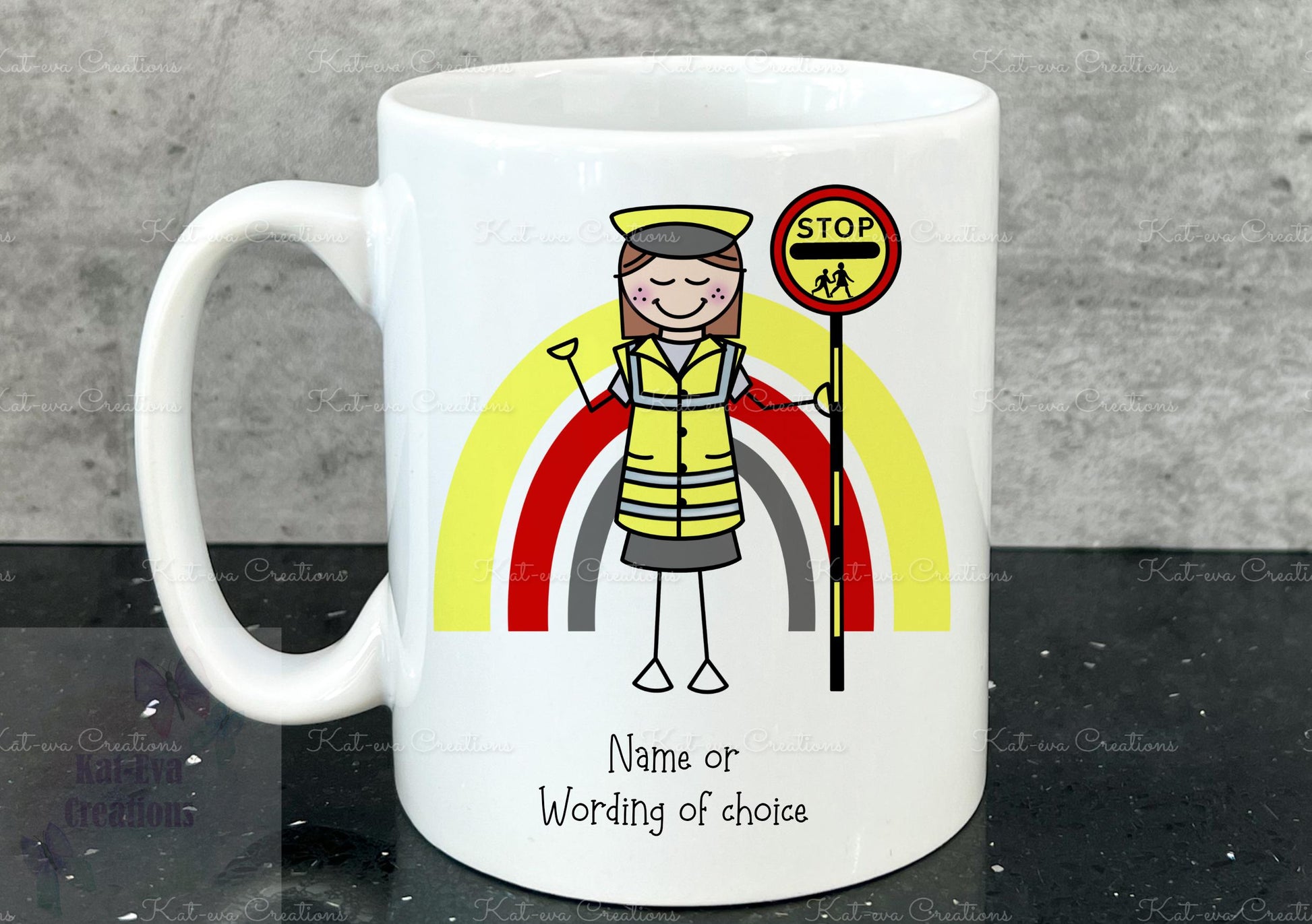 personalised lollipop lady / man / crossing stick man rainbow 11oz mug or mug and coaster set