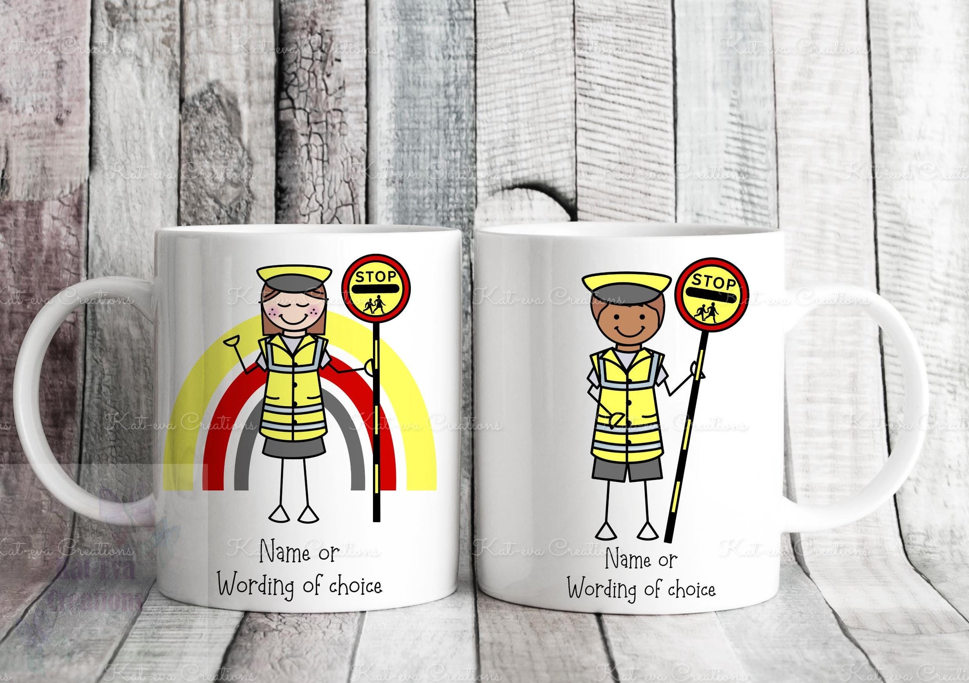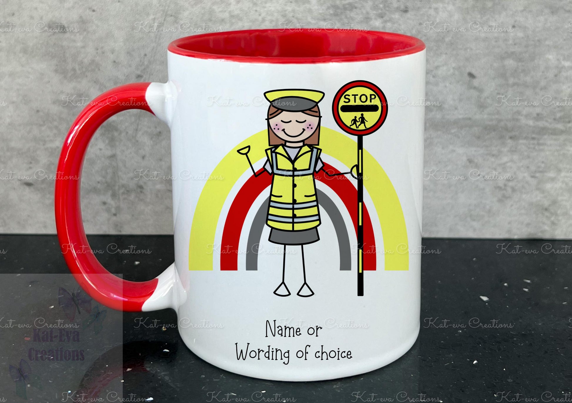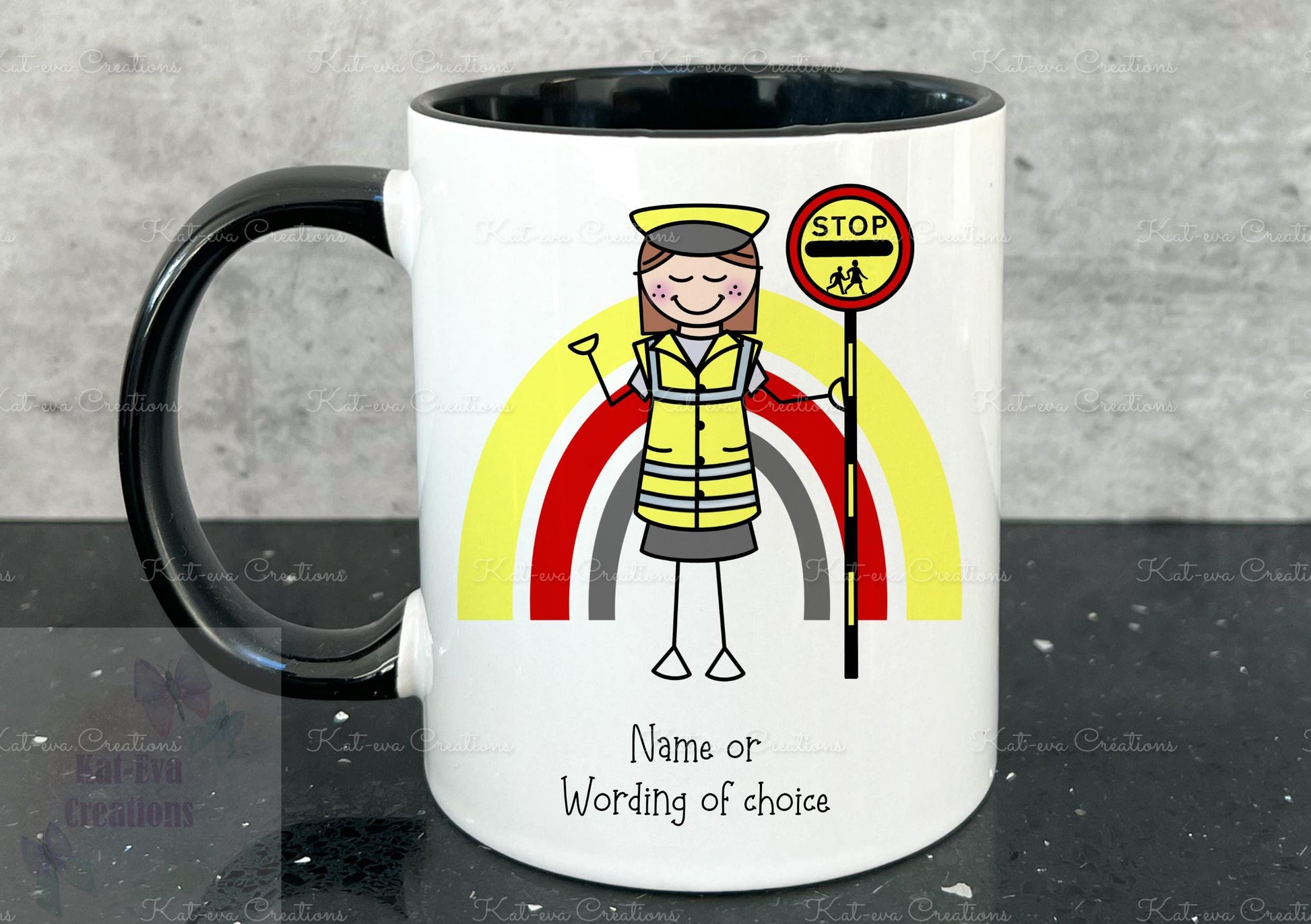 personalised lollipop lady / man / crossing stick man rainbow 11oz mug or mug and coaster set