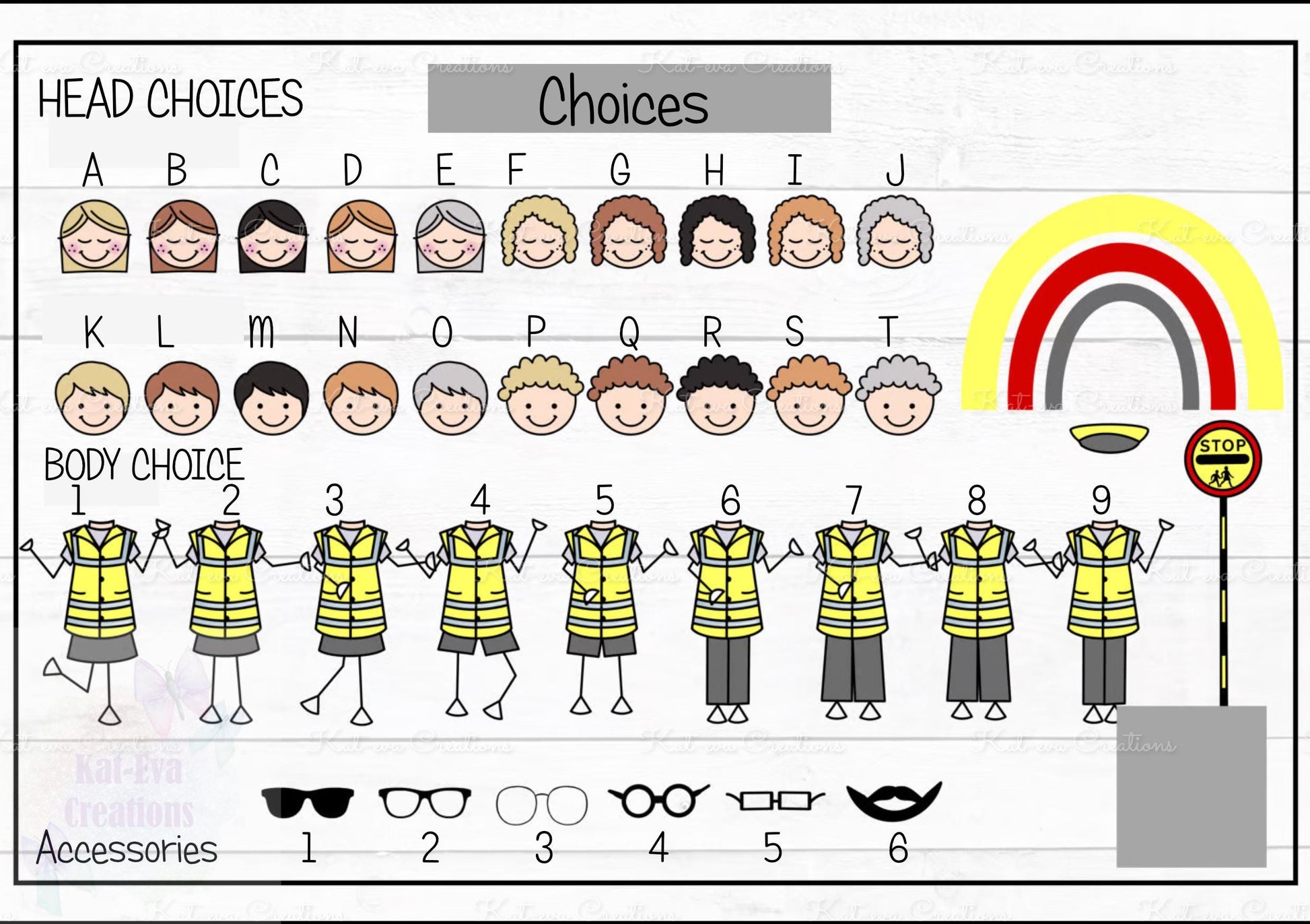 choice of body, head, accessories and rainbow background