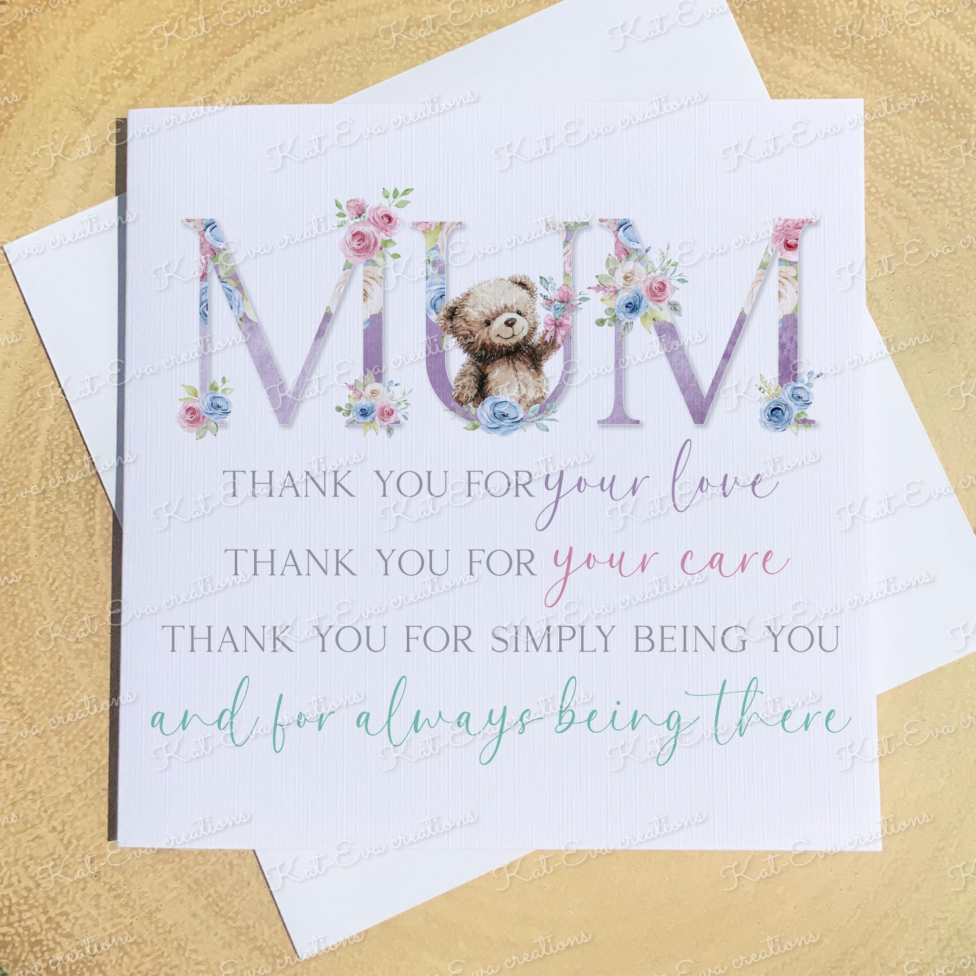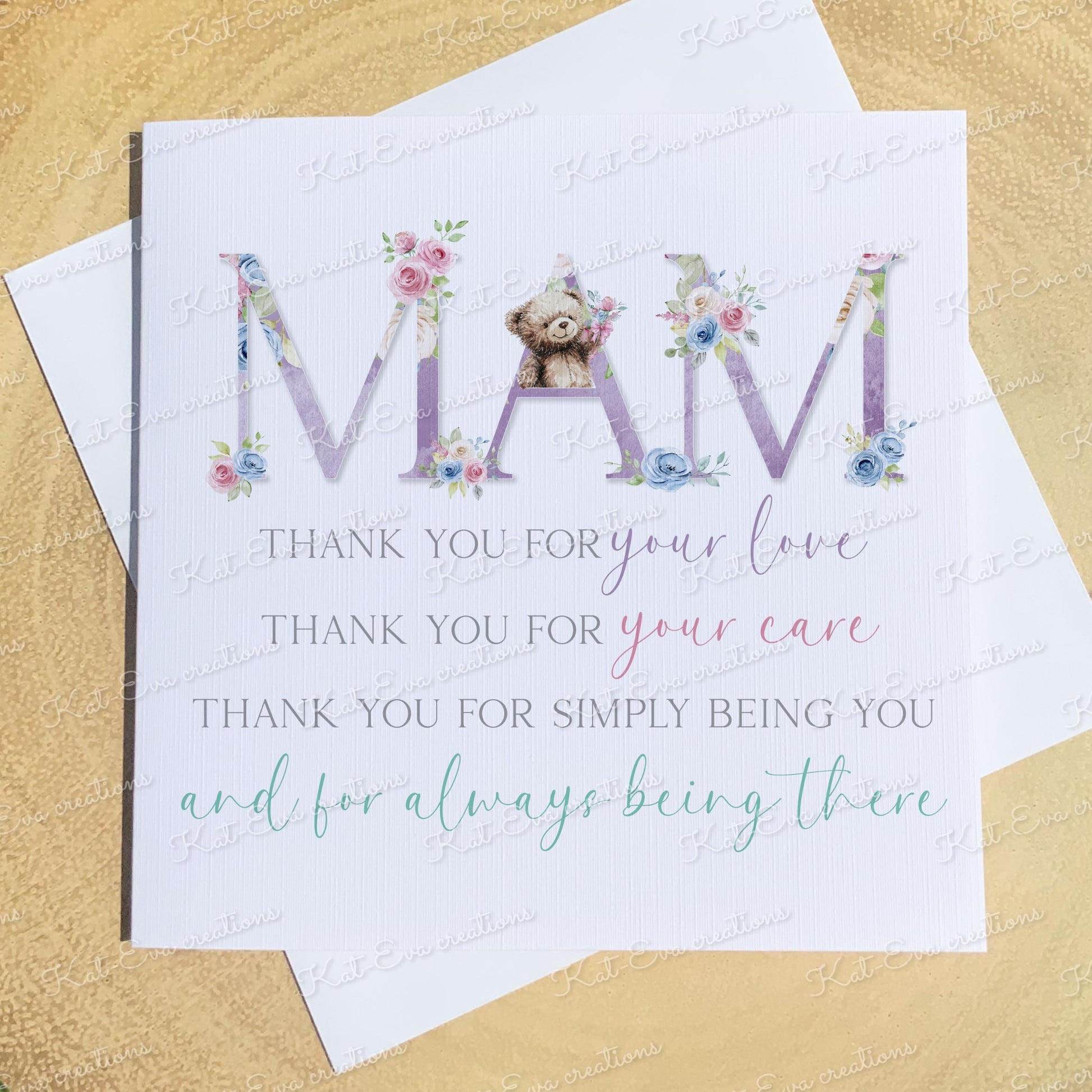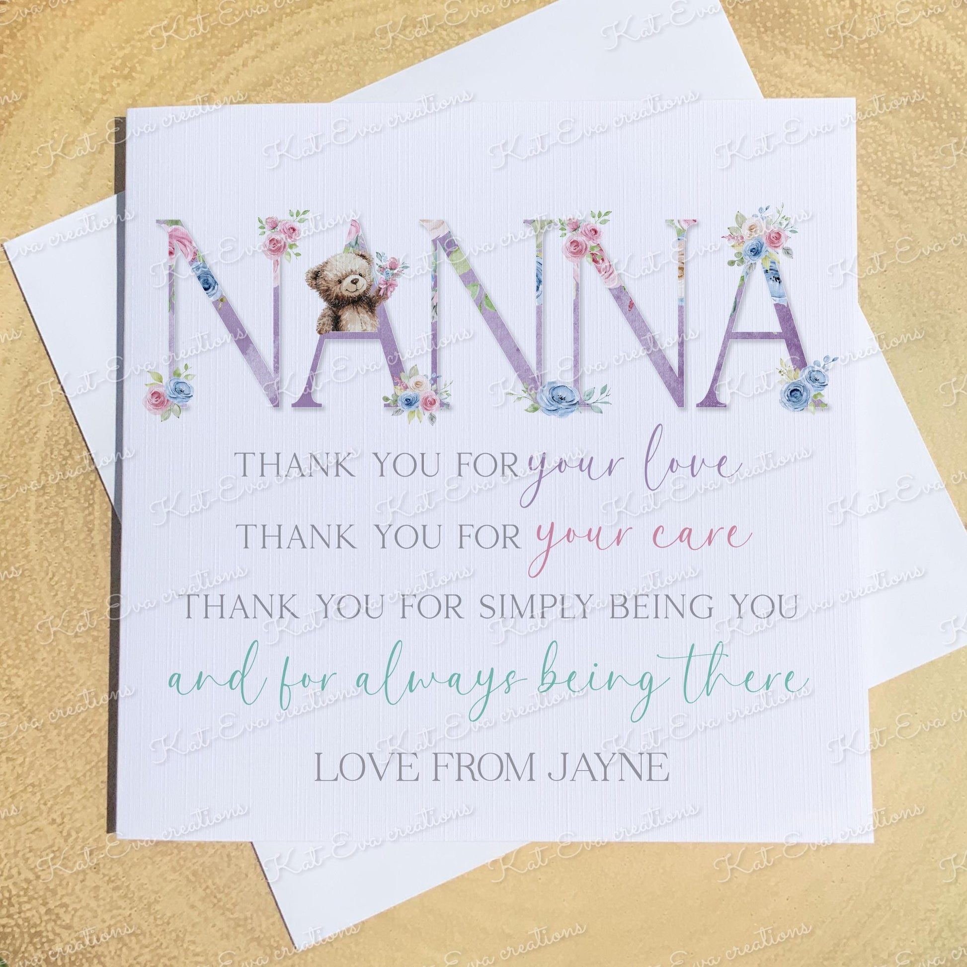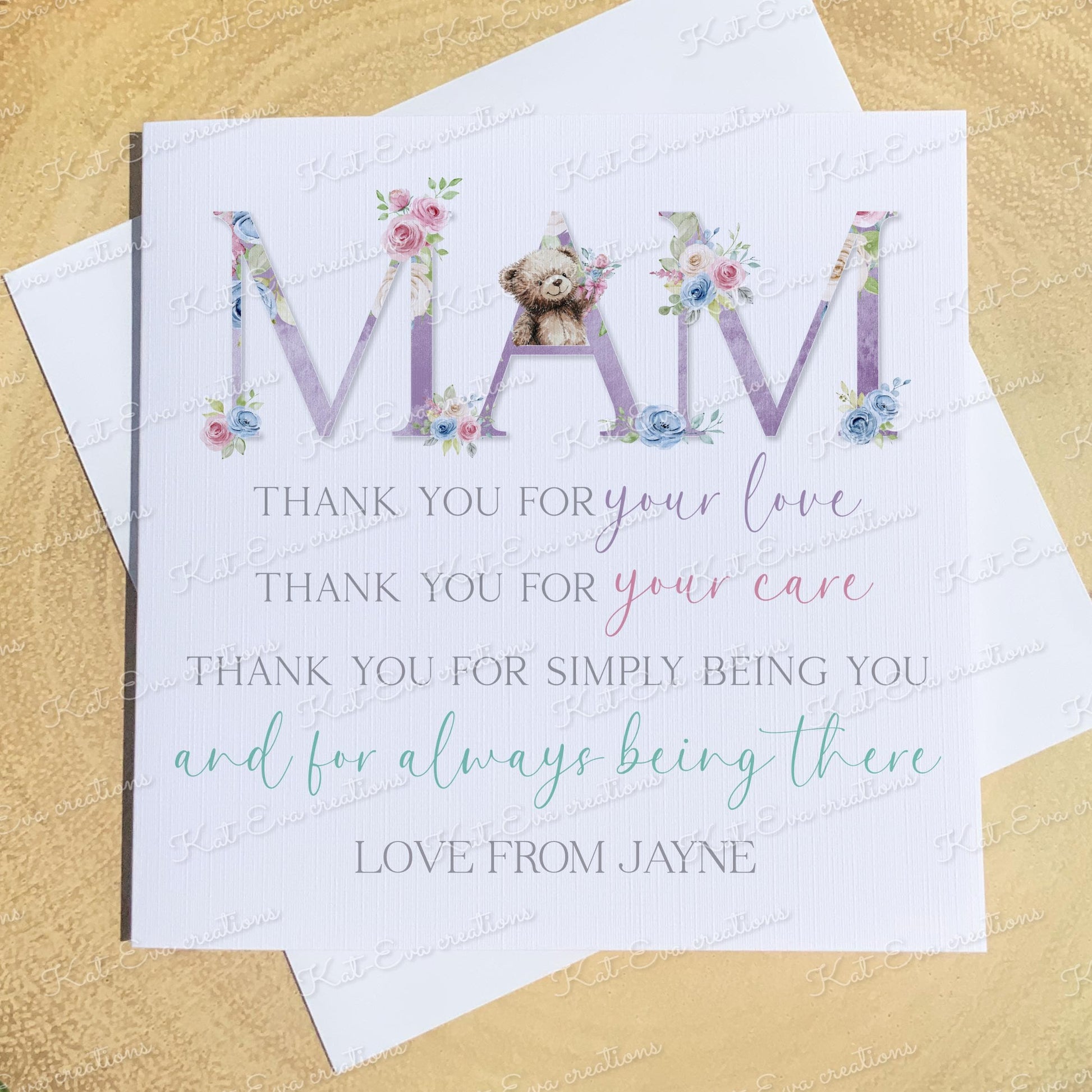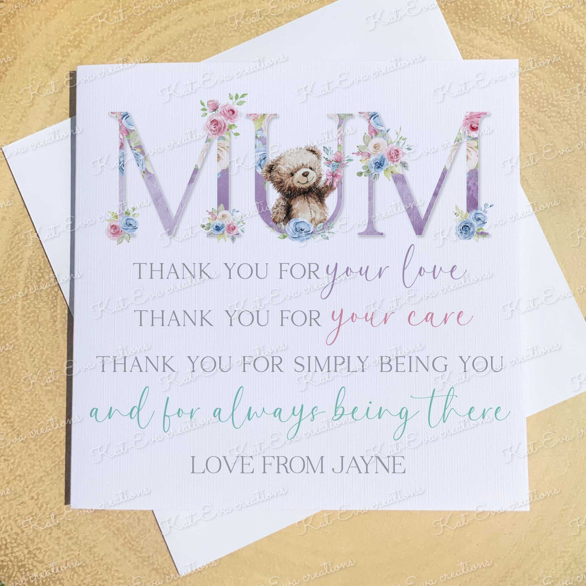Personalised mother's day card. Happy mothers day or birthday card for mam, mom, mum, nan, nanna, nana, nannie, nanny. Cute Teddy bear card