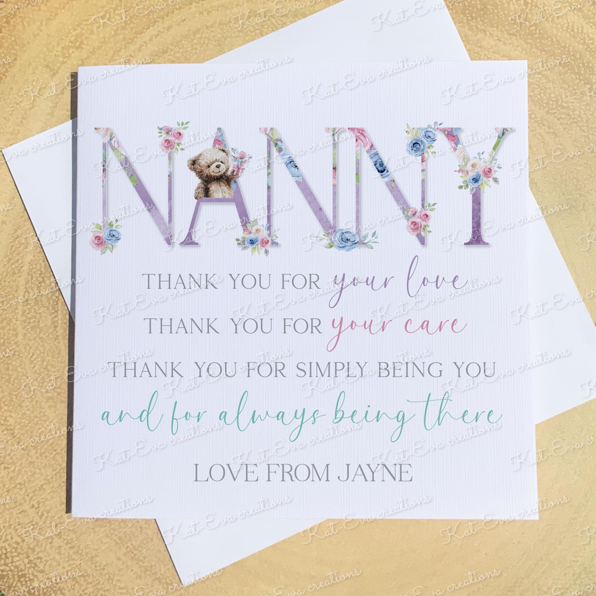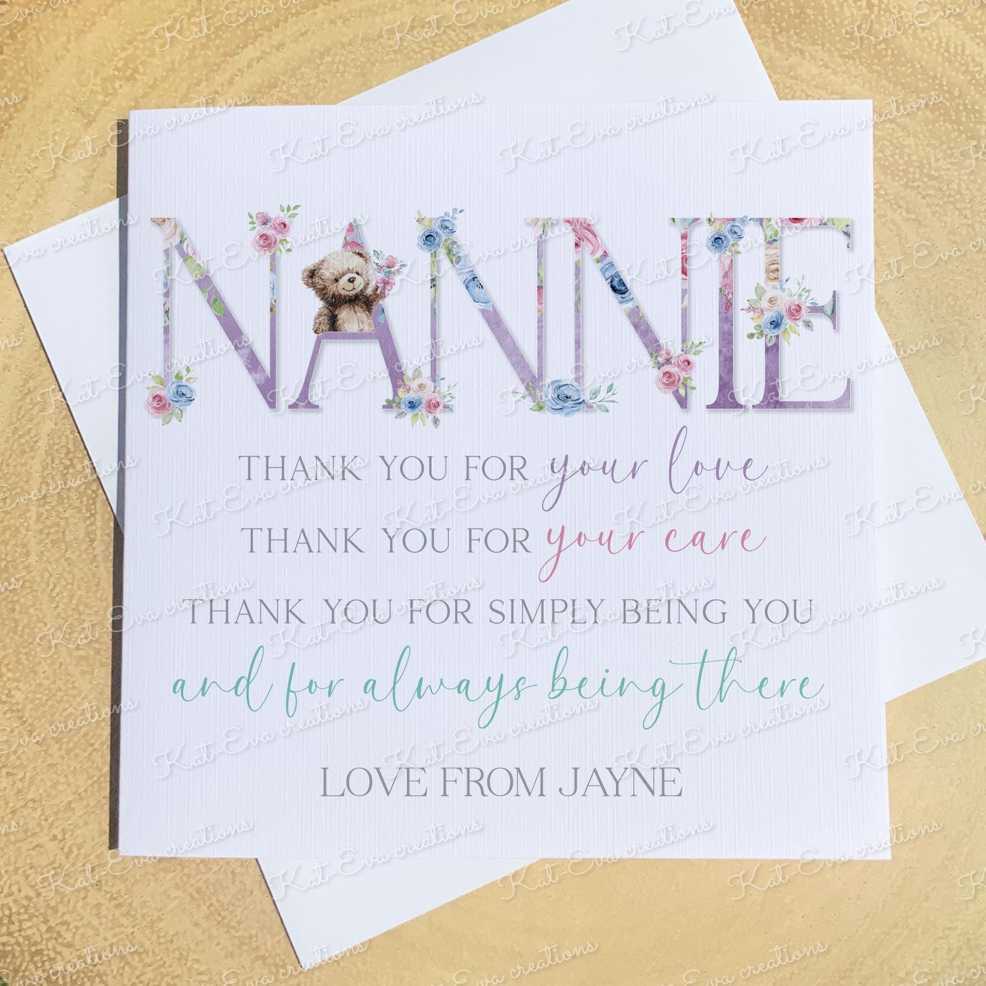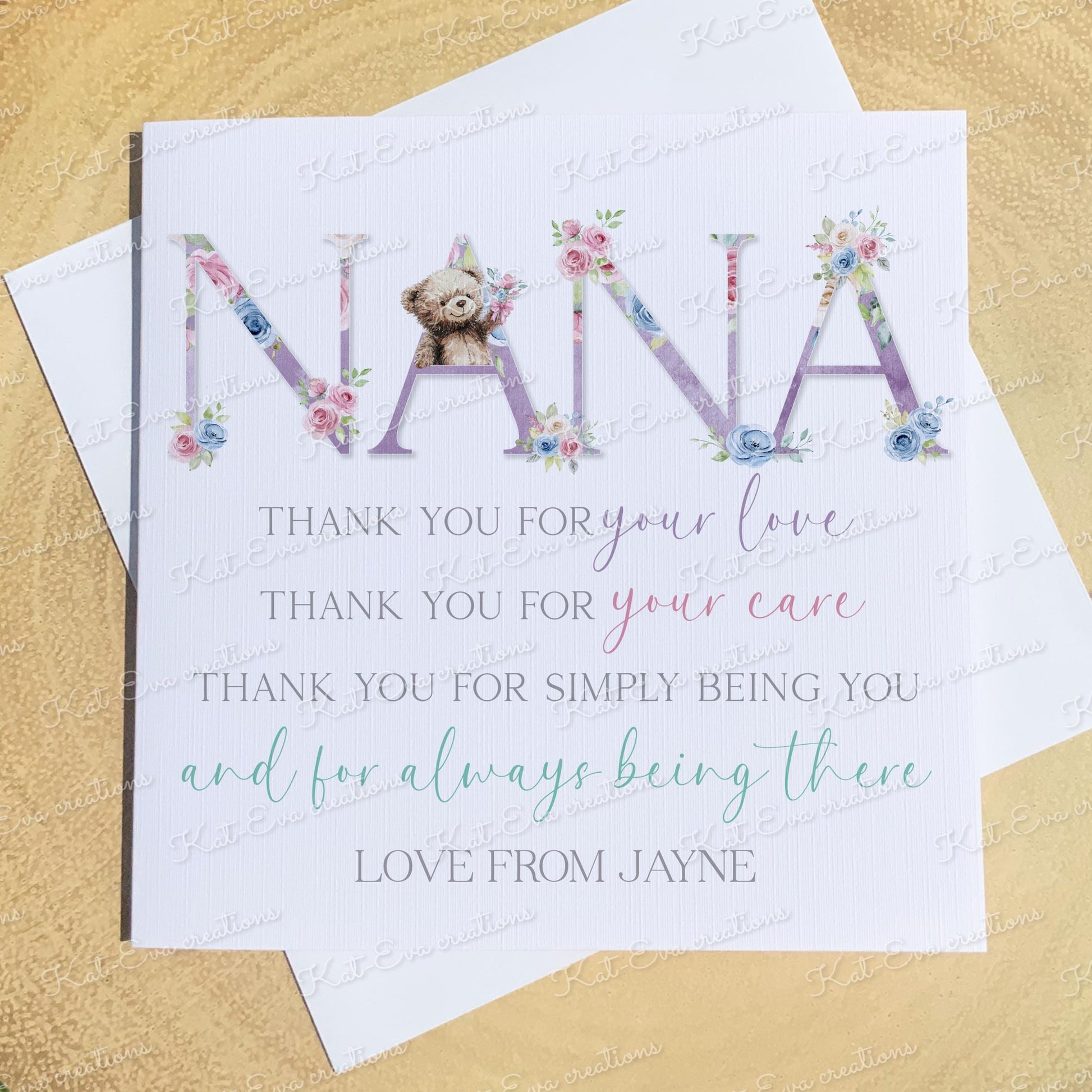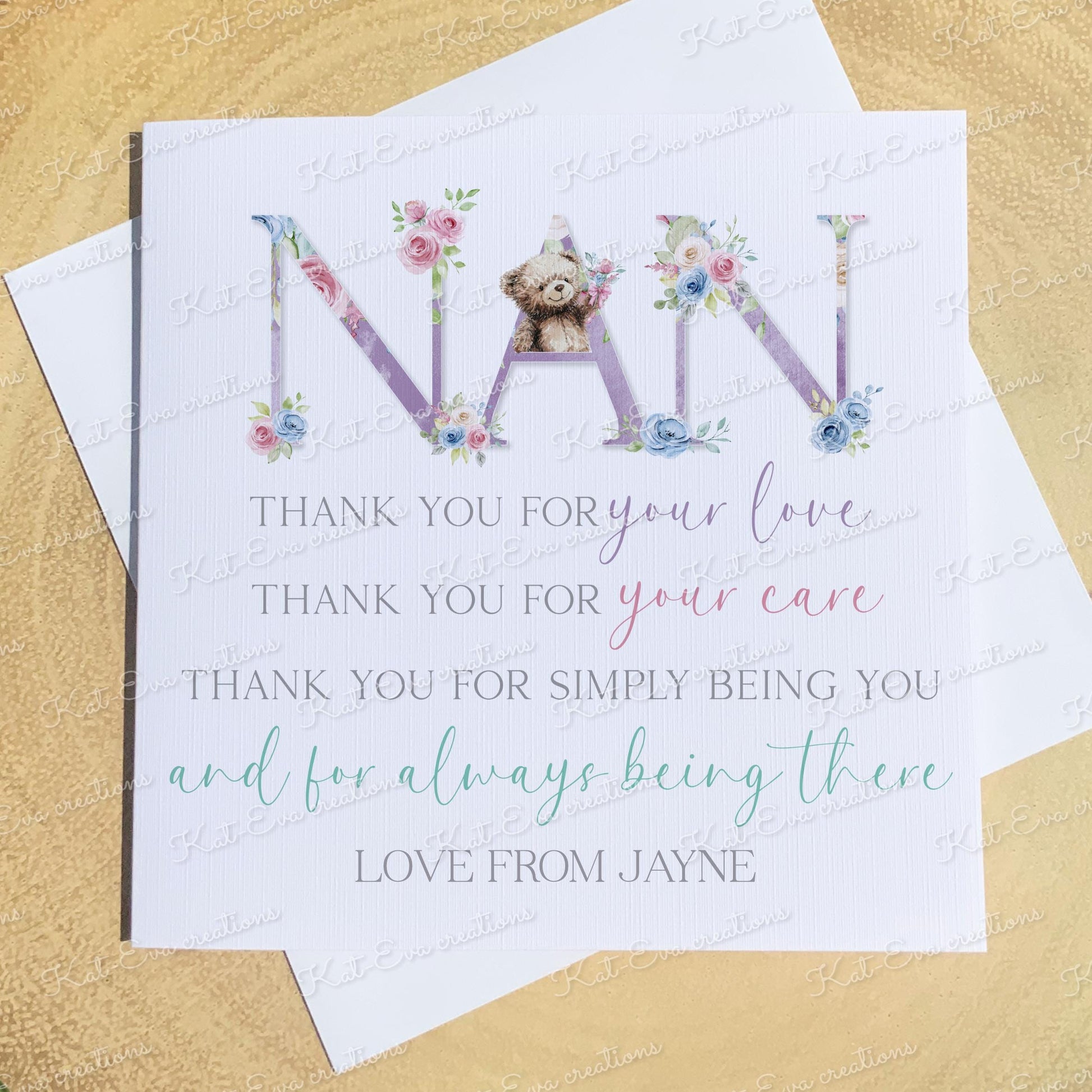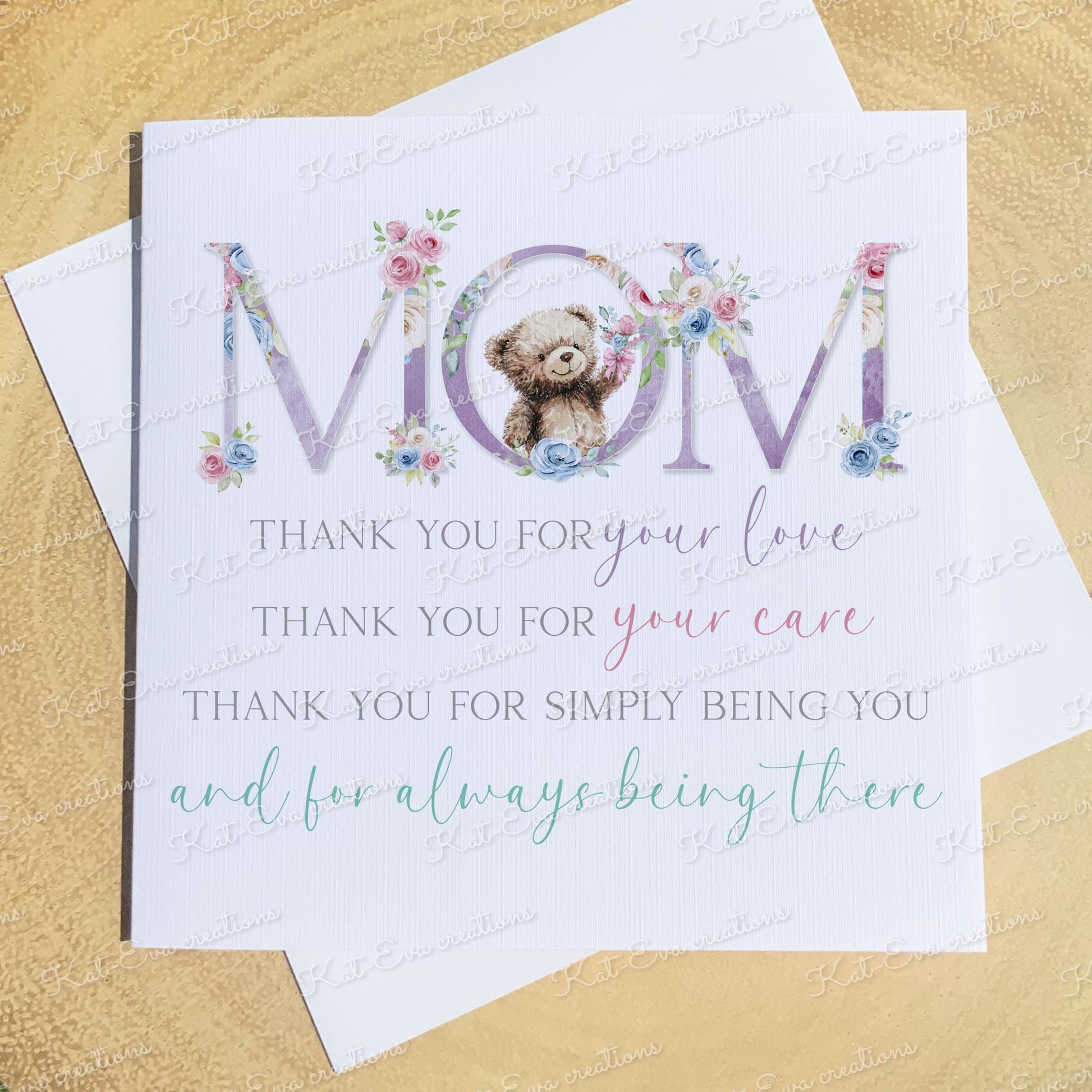 Personalised mother's day card. Happy mothers day or birthday card for mam, mom, mum, nan, nanna, nana, nannie, nanny. Cute Teddy bear card
