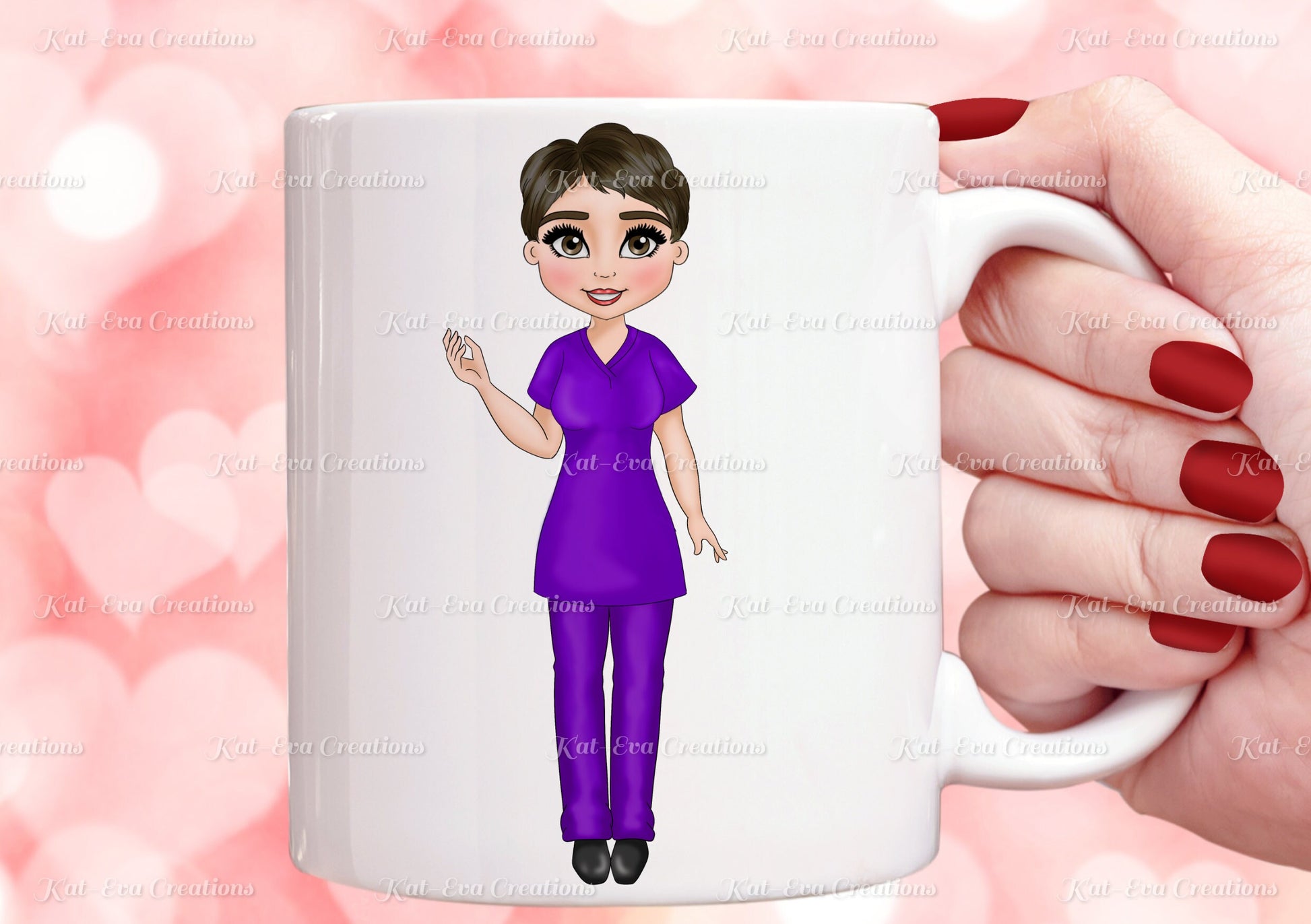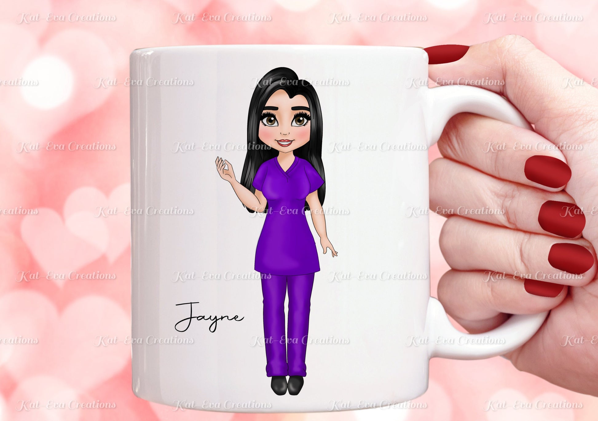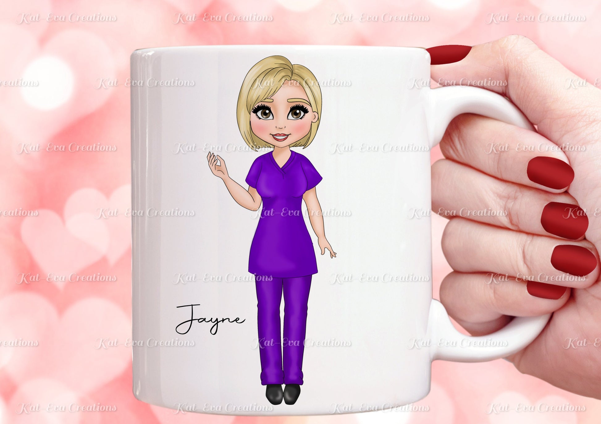 personalised Nurse mug. different hairstyles, uniform choices and more