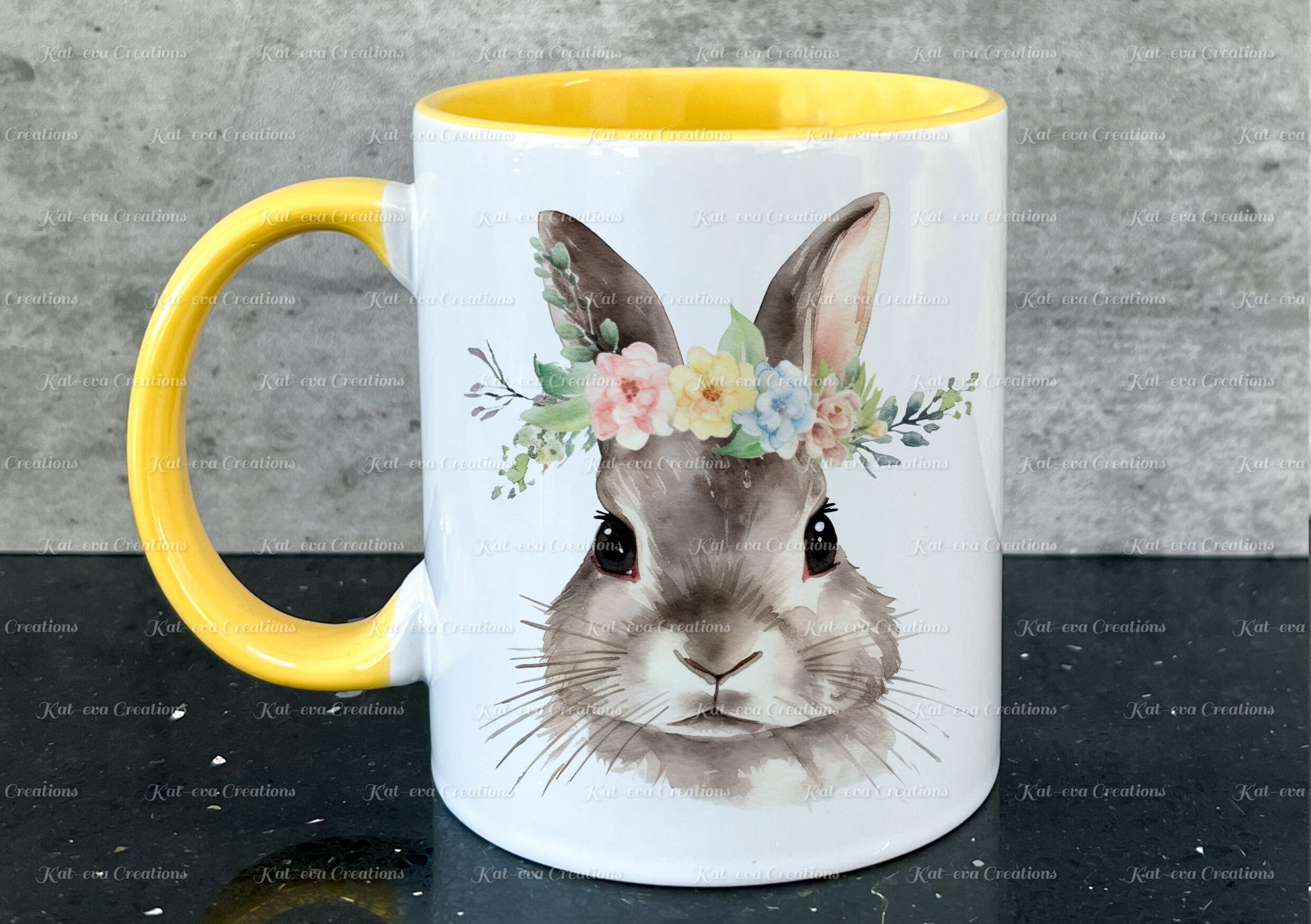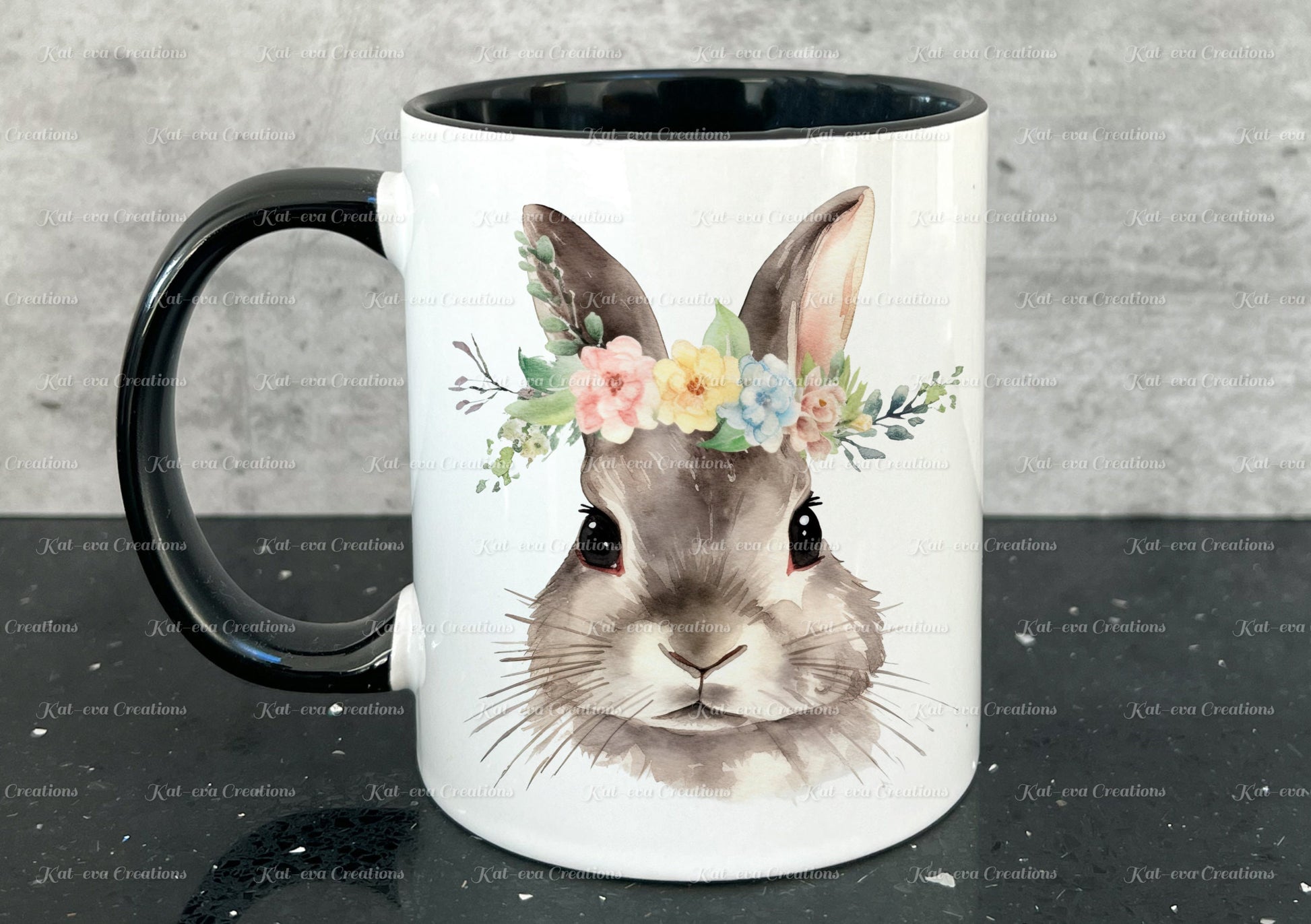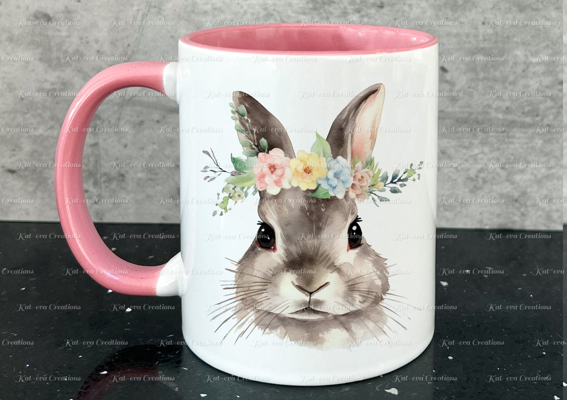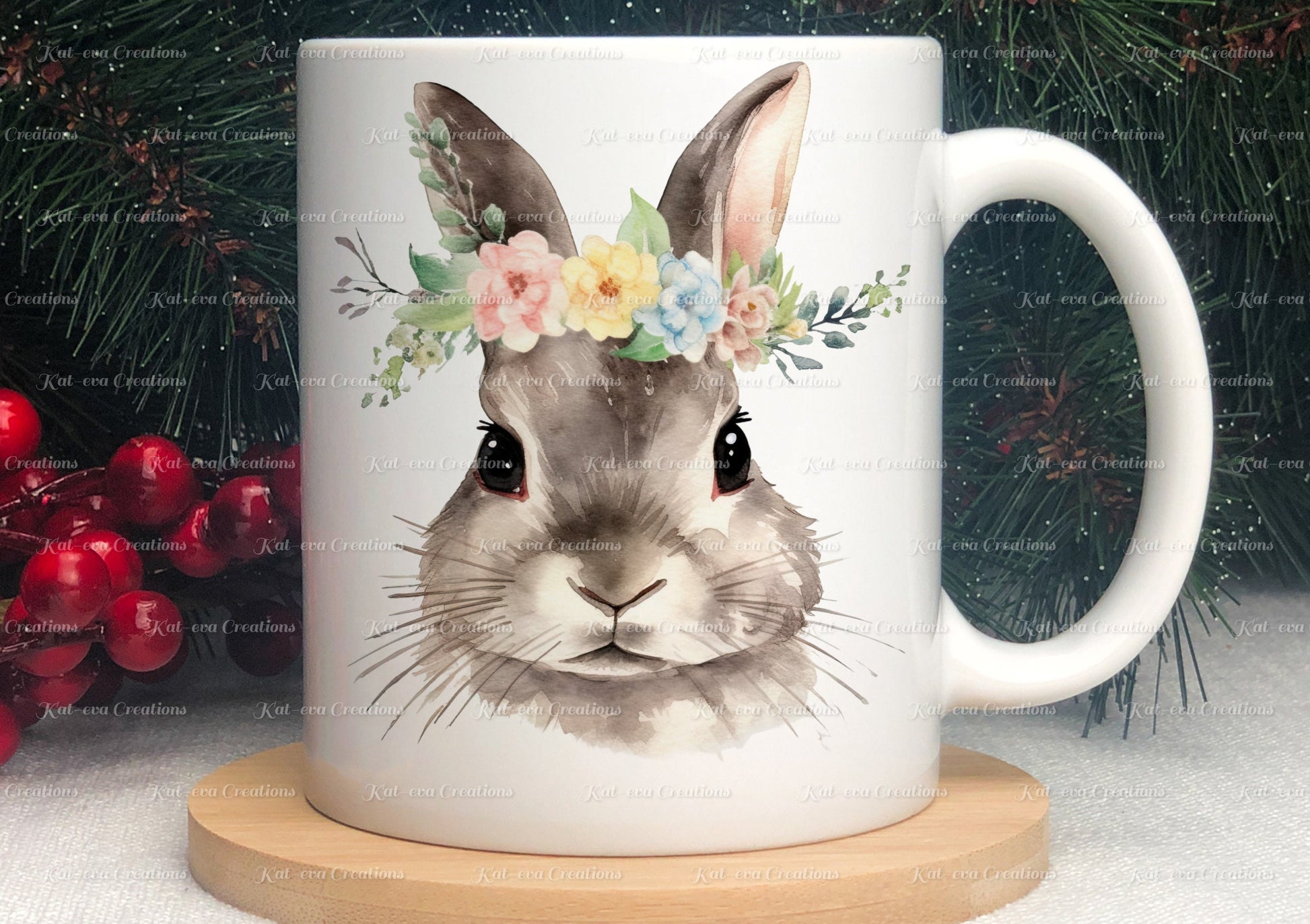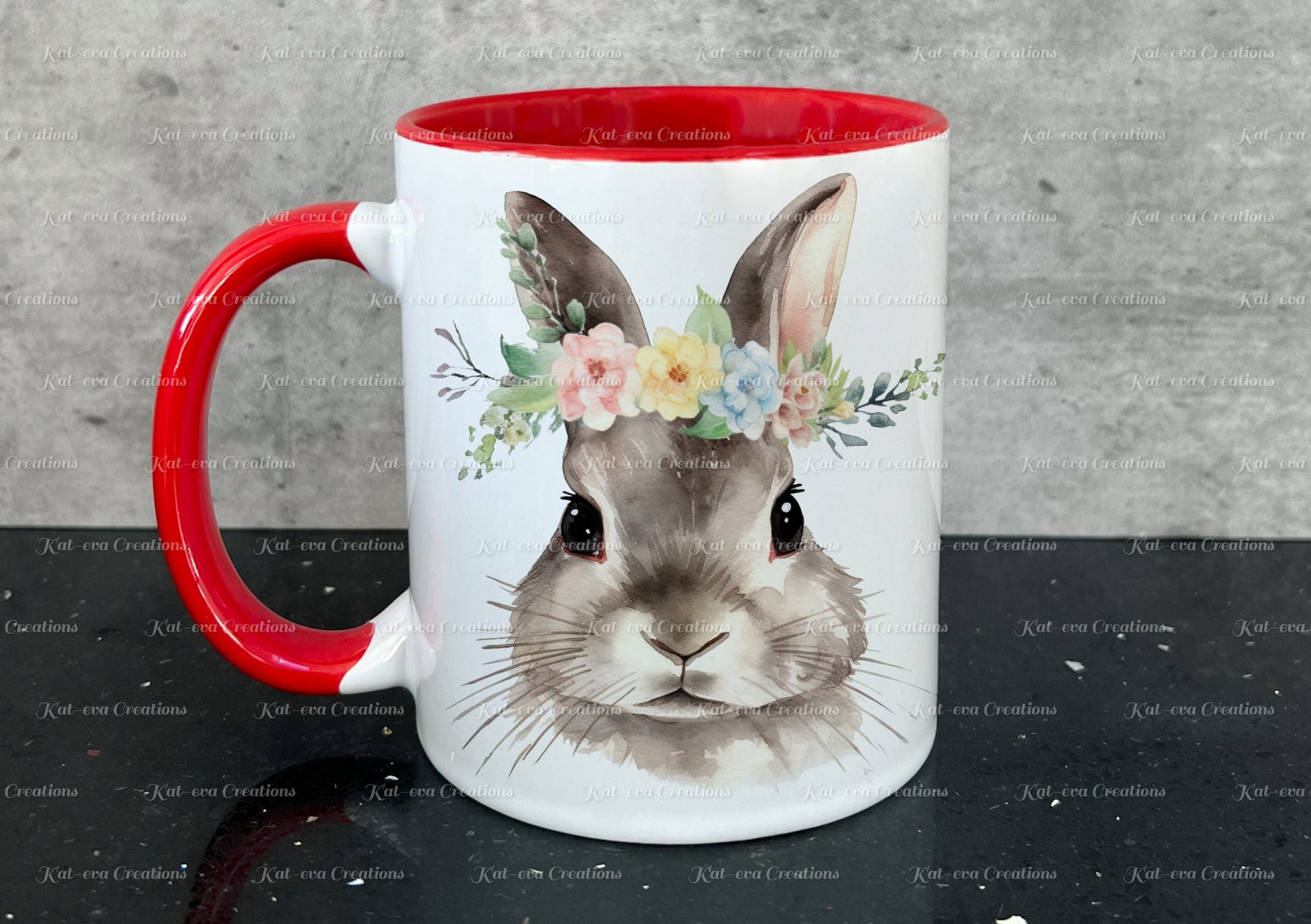 personalised Rabbit mug. Gorgeous Floral Bunny Cup. Ideal for birthday, secret santa, stocking filler or Christmas present