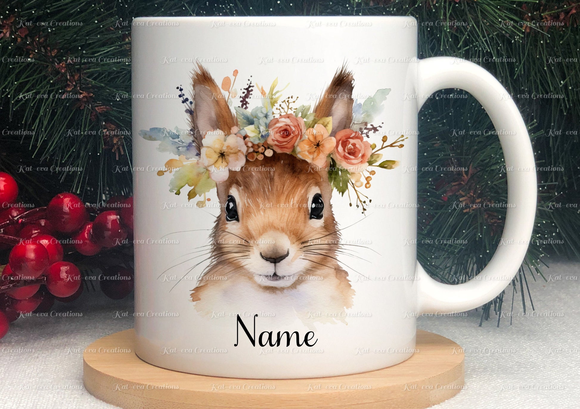 personalised squirrel mug. Gorgeous Floral squirrel Cup. Ideal for birthday, secret santa, stocking filler or Christmas present