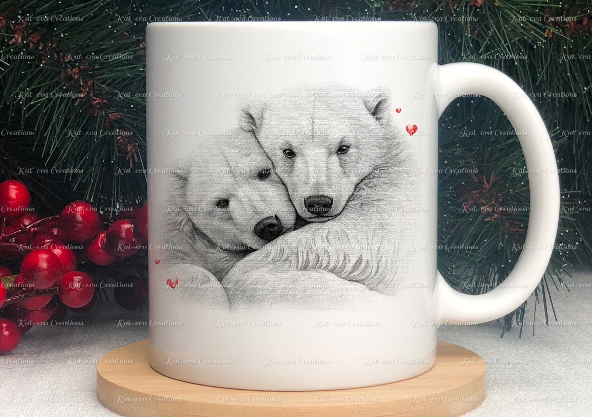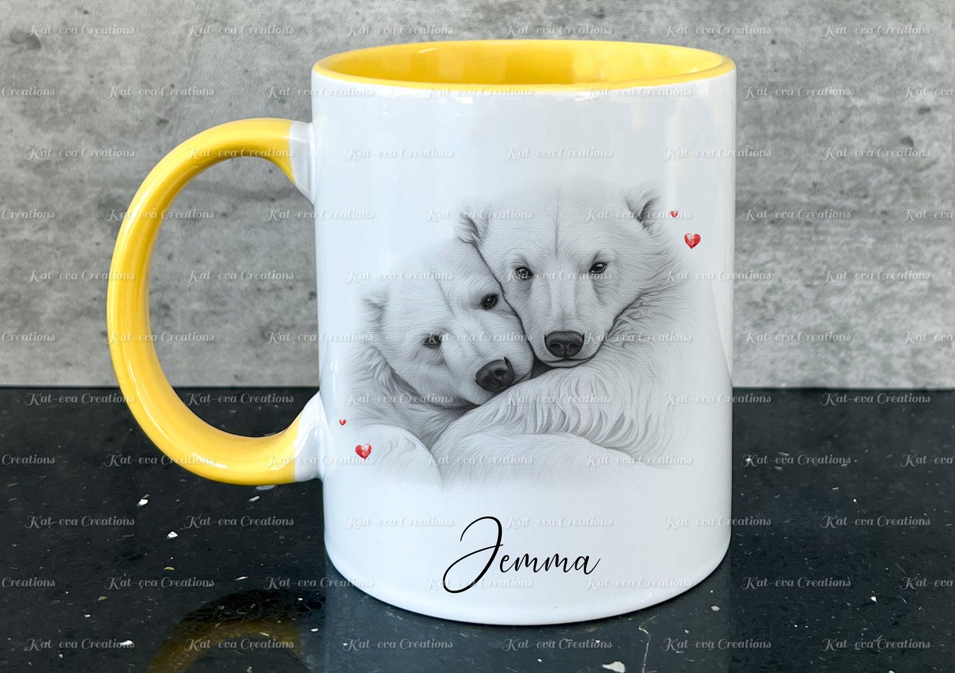 Polar bear mug. Personalised polar bear couple cup. Ideal gift for Christmas. Birthday, secret santa or stocking filler. arctic collection