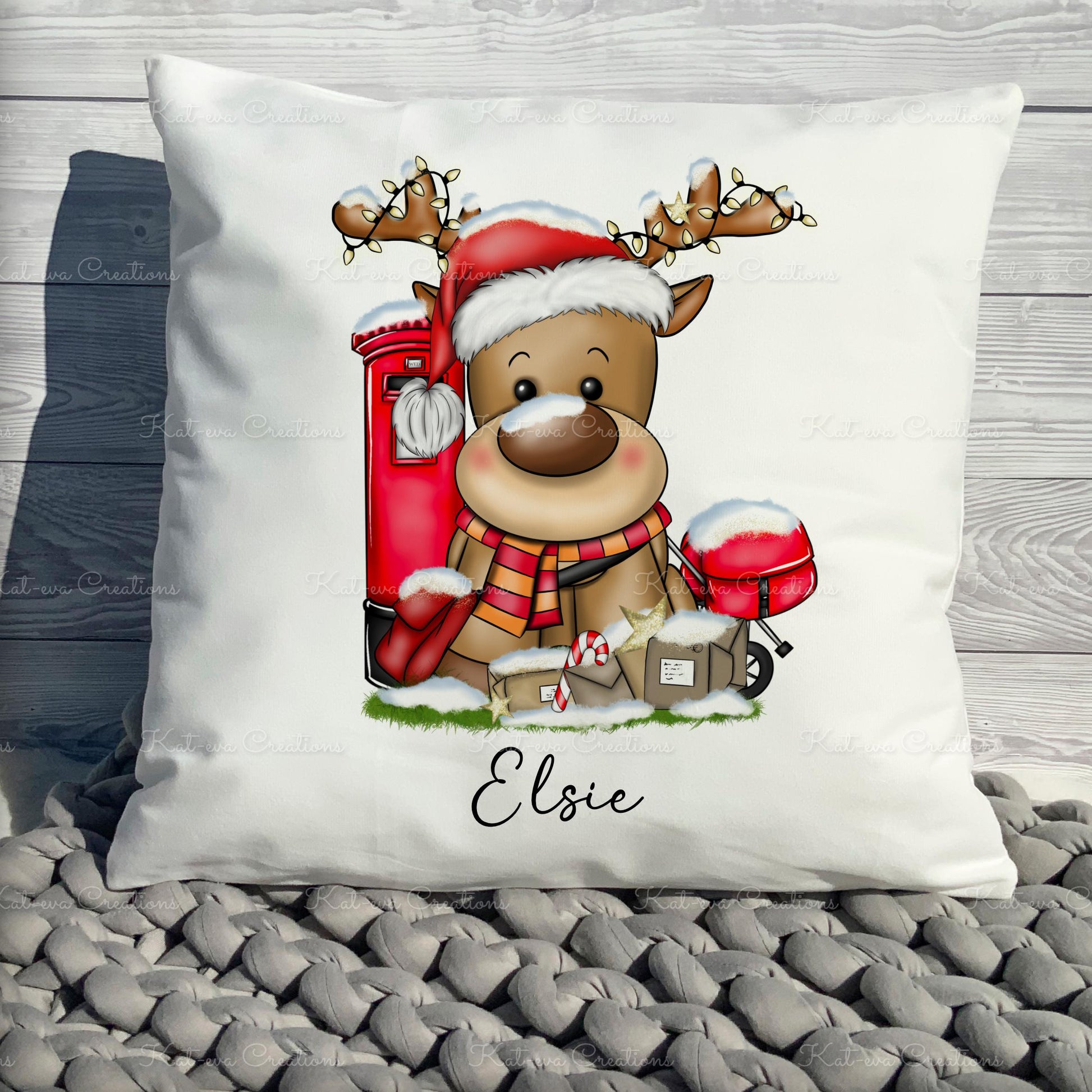 Personalised post reindeer cushion