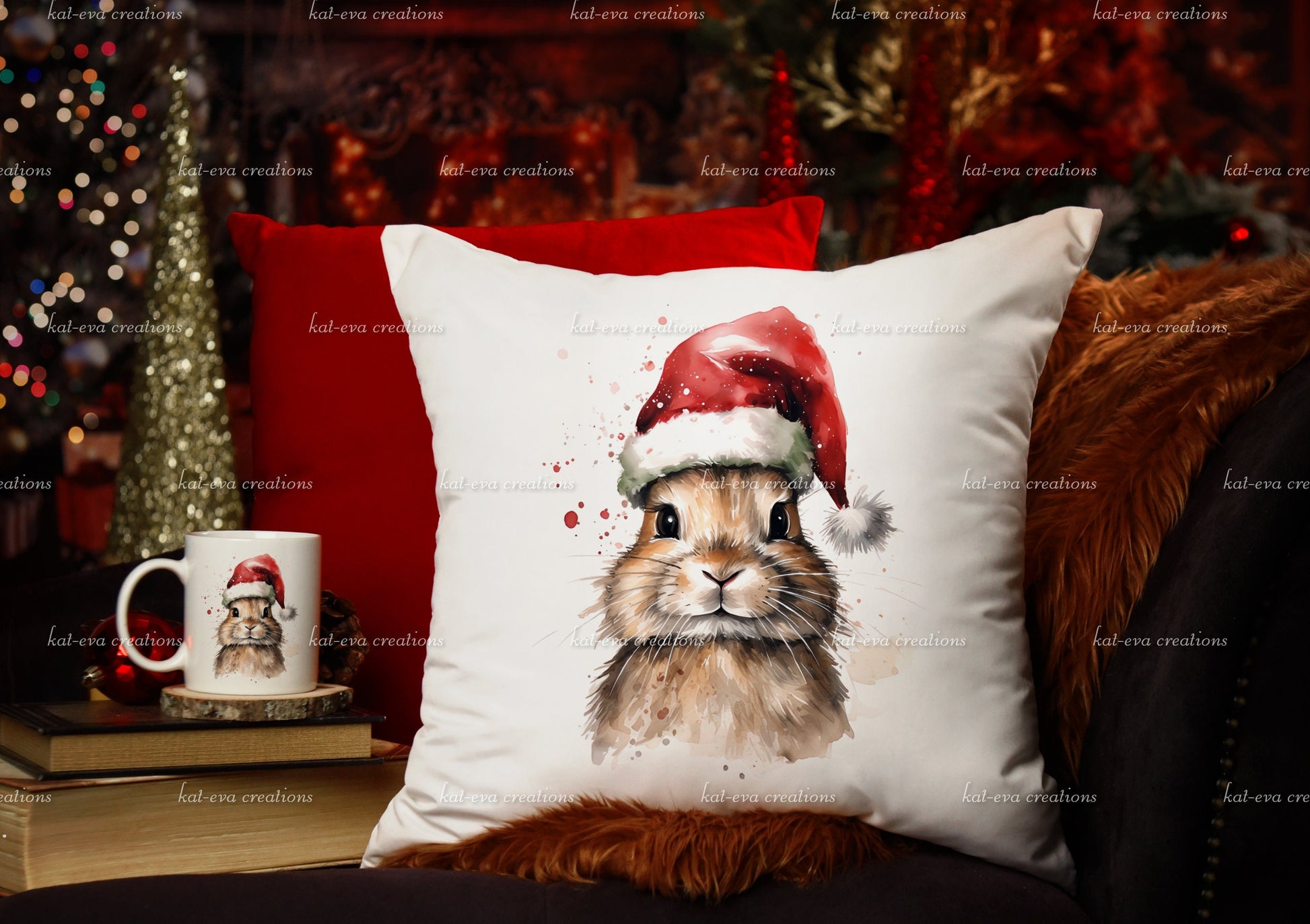 rabbit Cushion, personalised Christmas bunny cushion. Ideal Christmas gift. stocking filler or secret Santa present