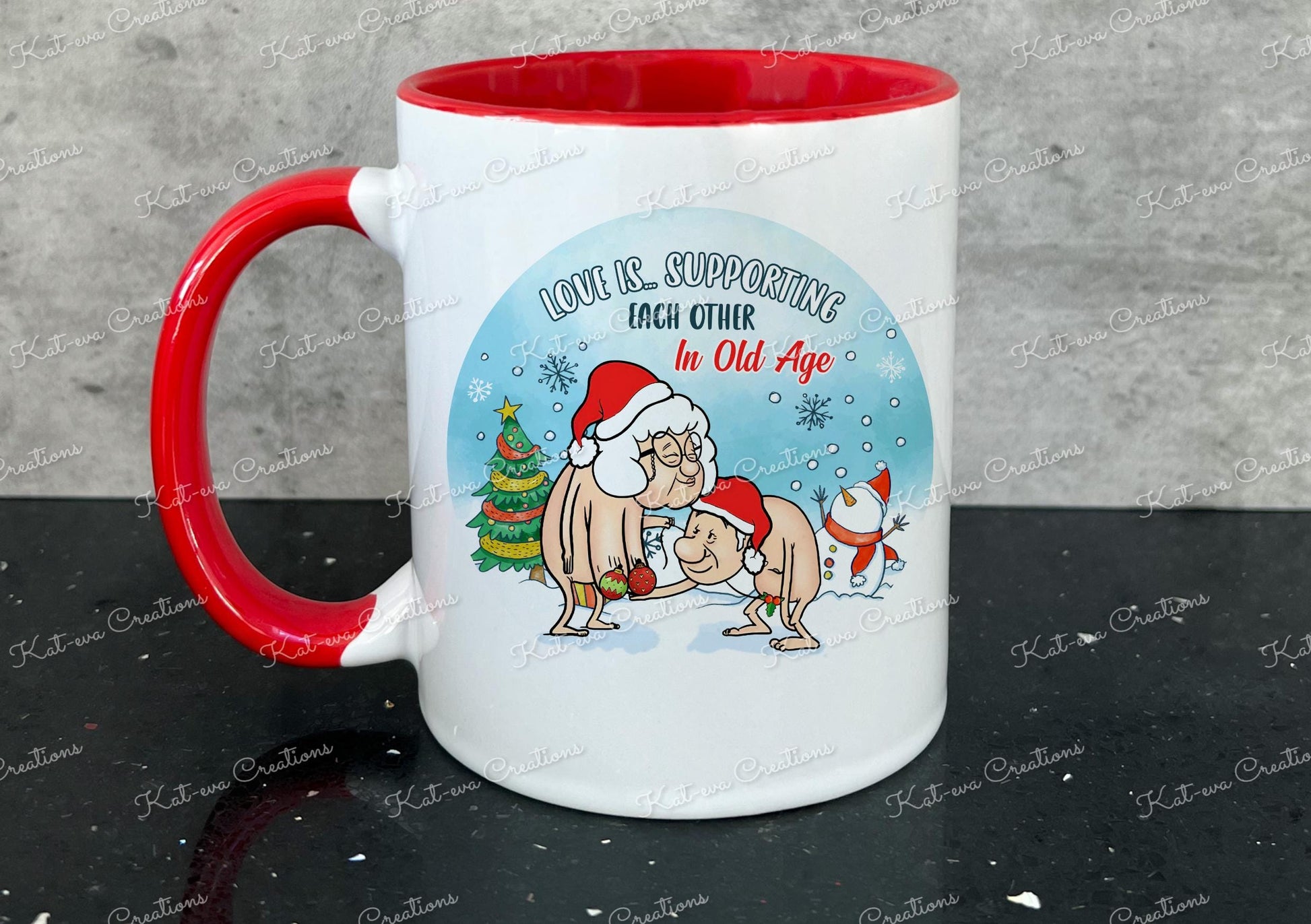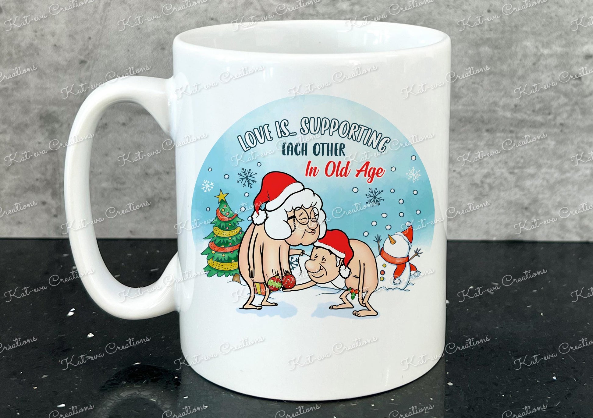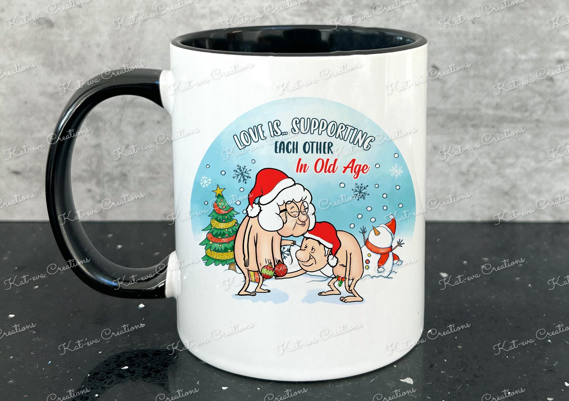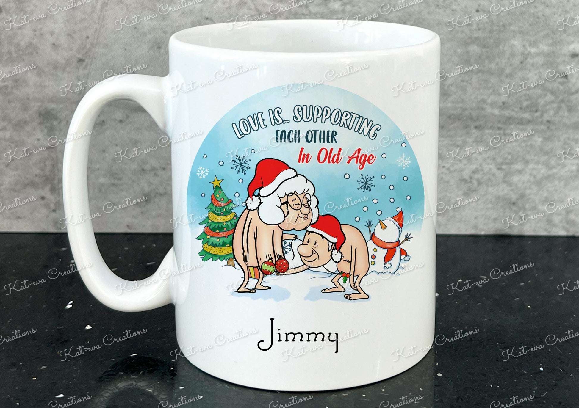 Rude old age mug. love is supporting each other personalised cup. anniversary present christmas gift or secret santa present.