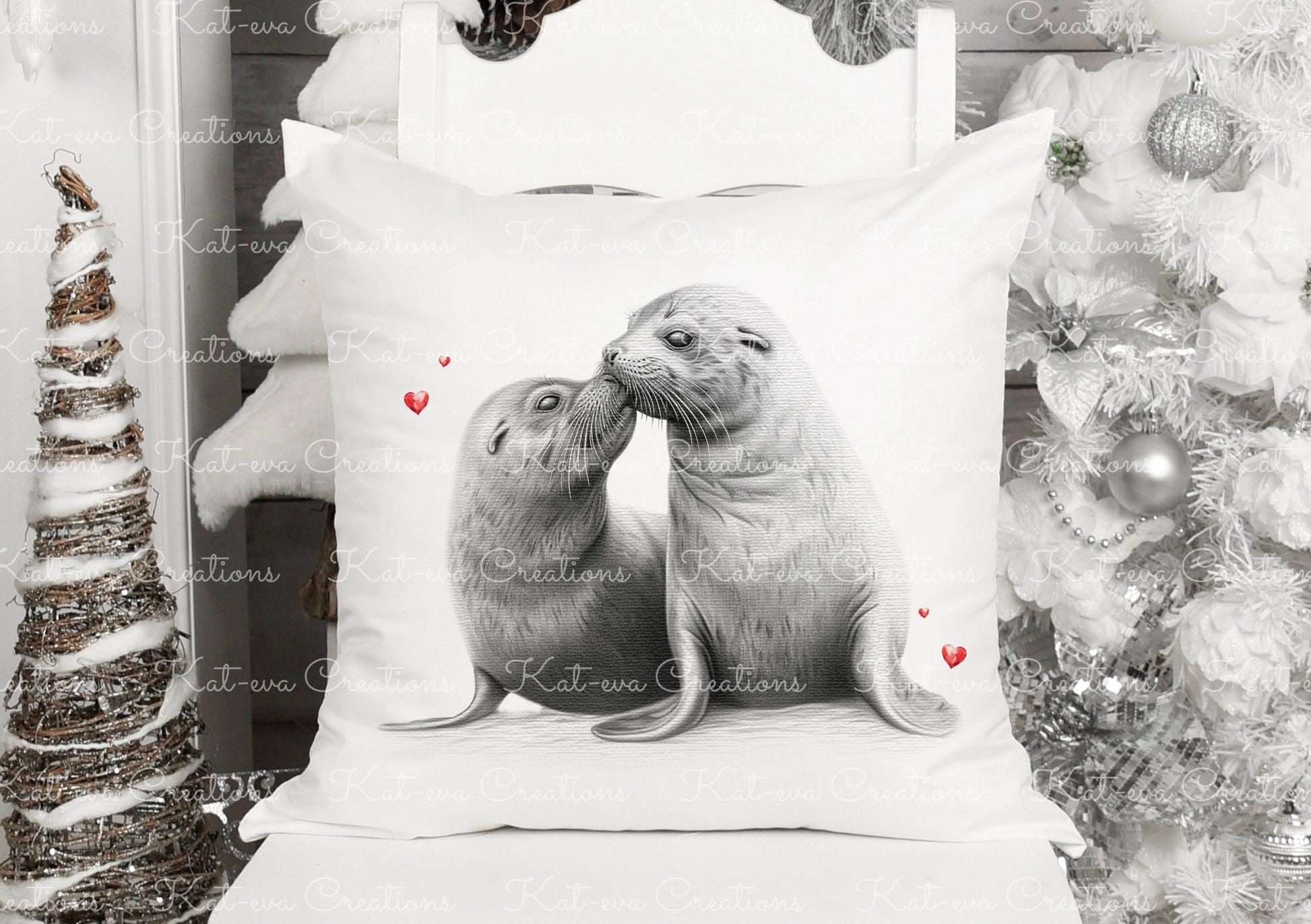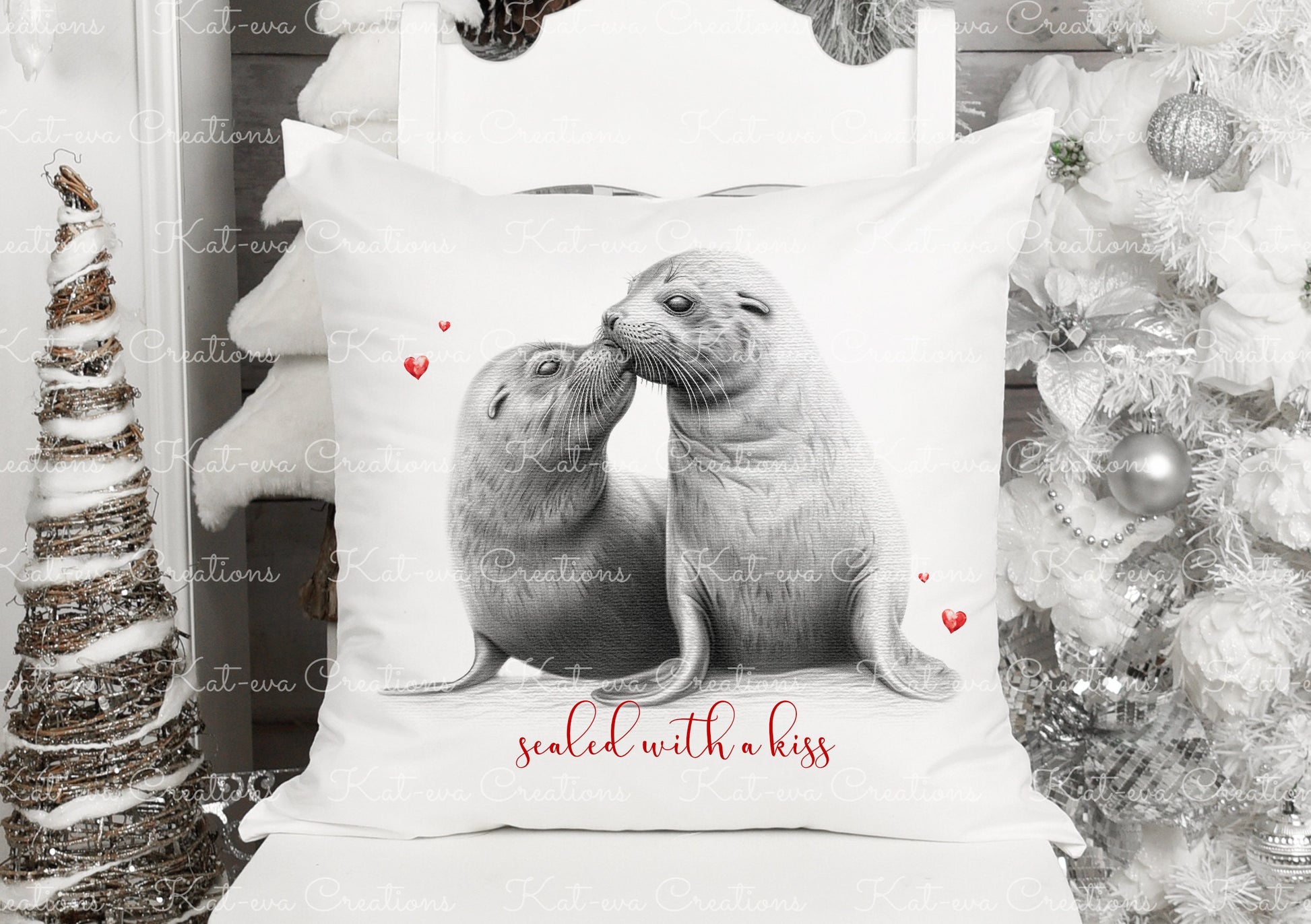 Seal cushion. personalised seal couple pillow. ideal christmas, secret santa, stocking filler, birthday or wedding gift