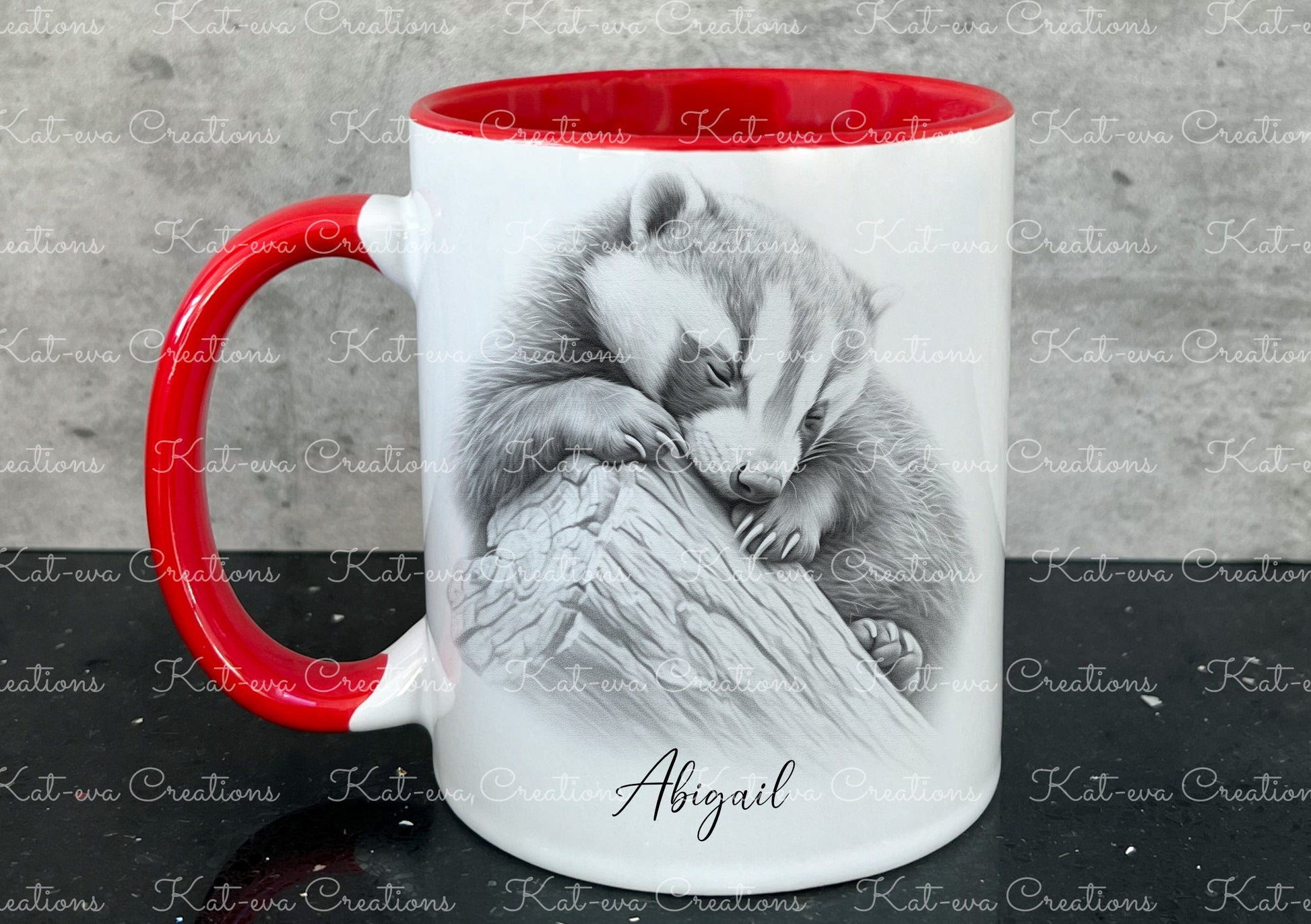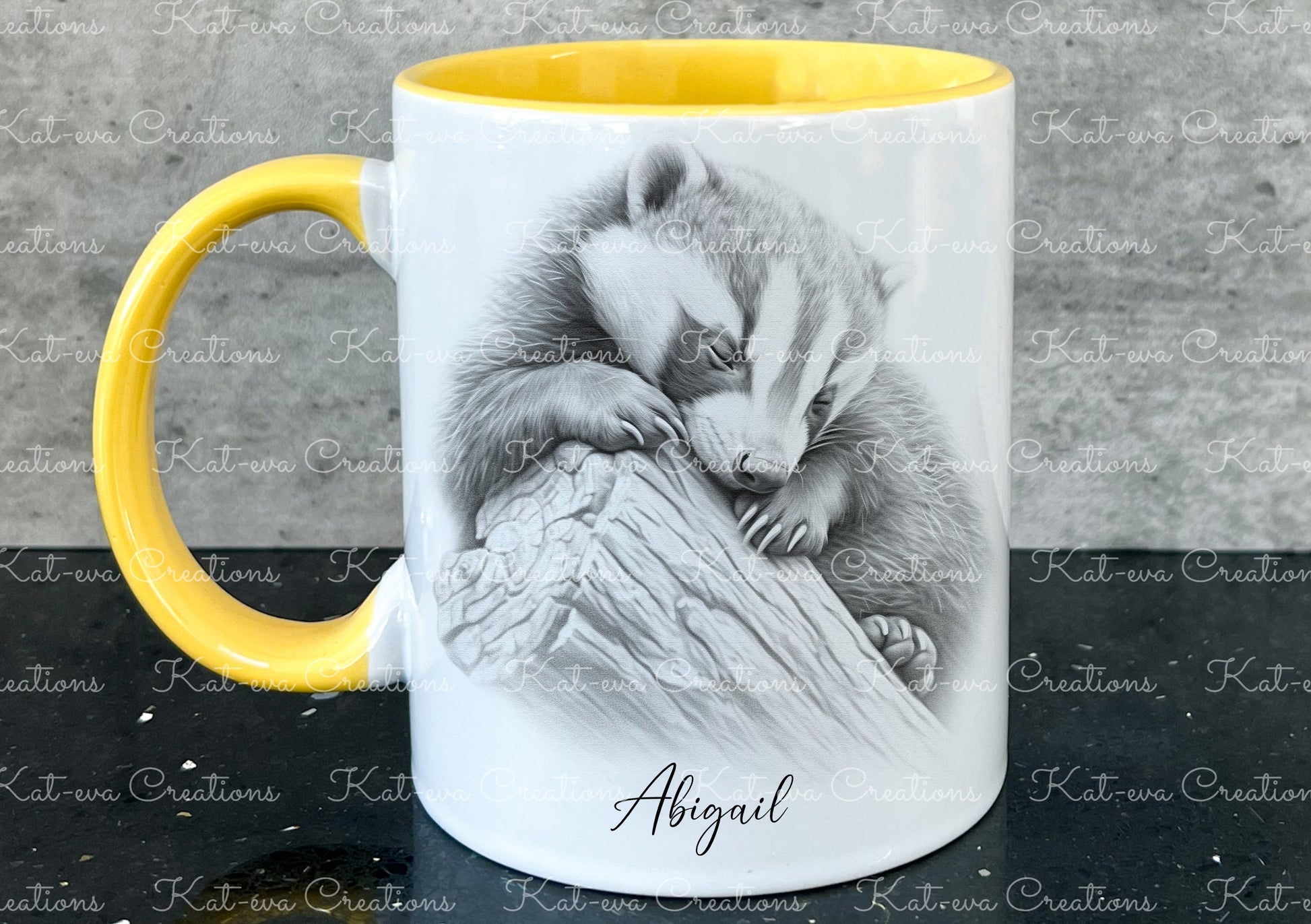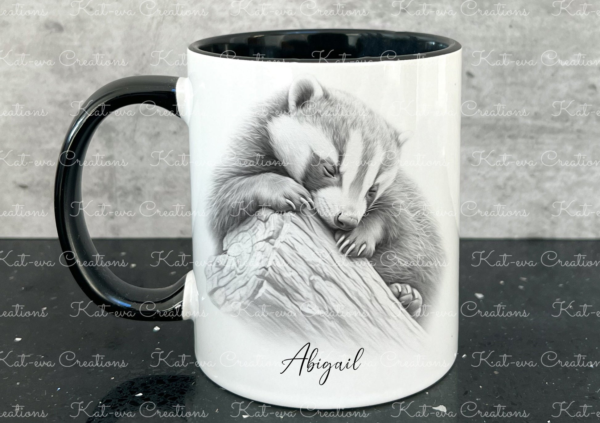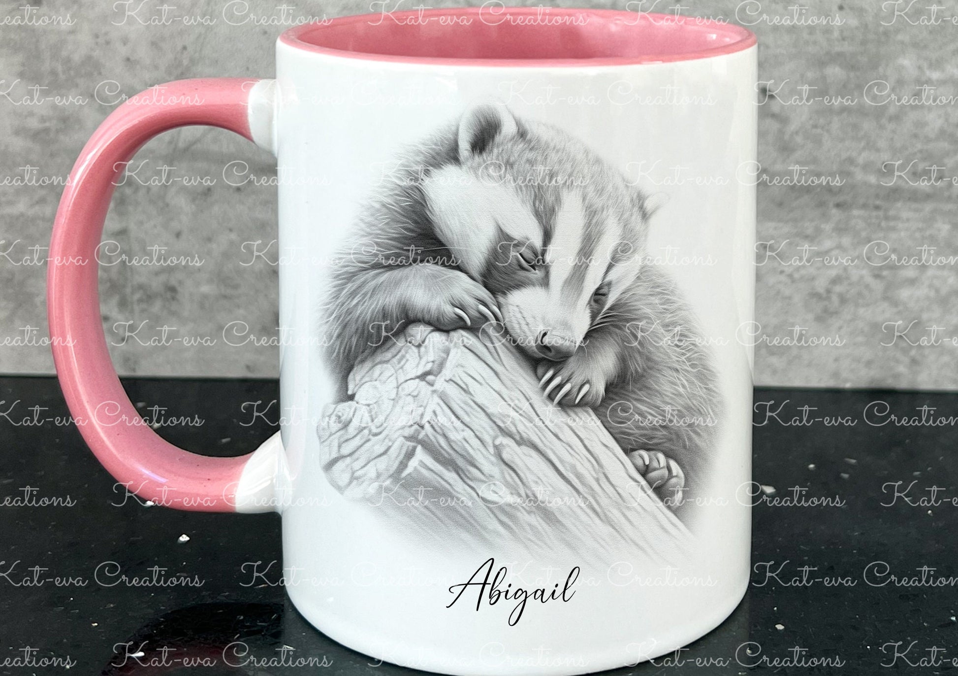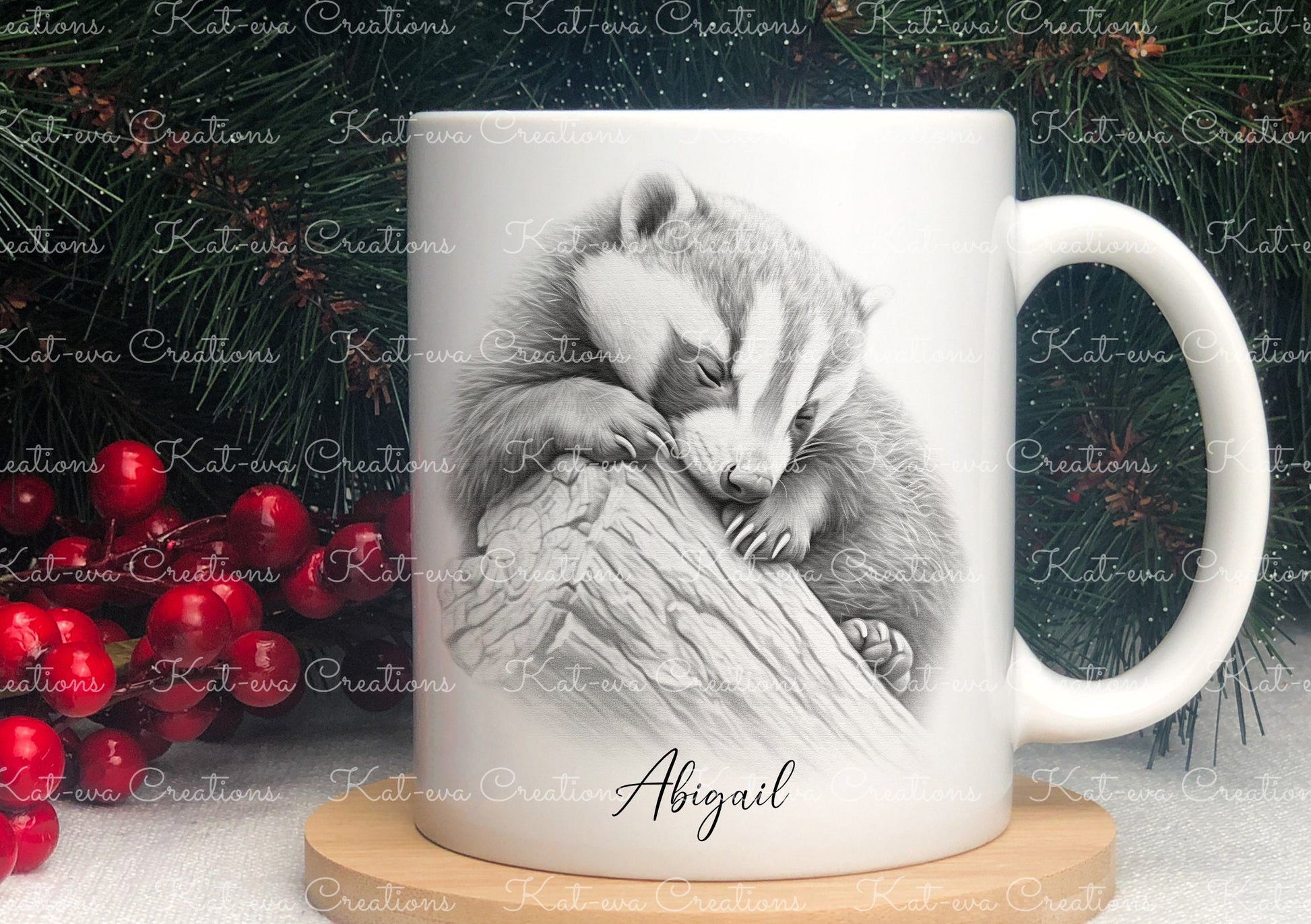 sleeping badger mug. Personalised badger cup. Ideal gift for Christmas. Birthday, secret santa or stocking filler