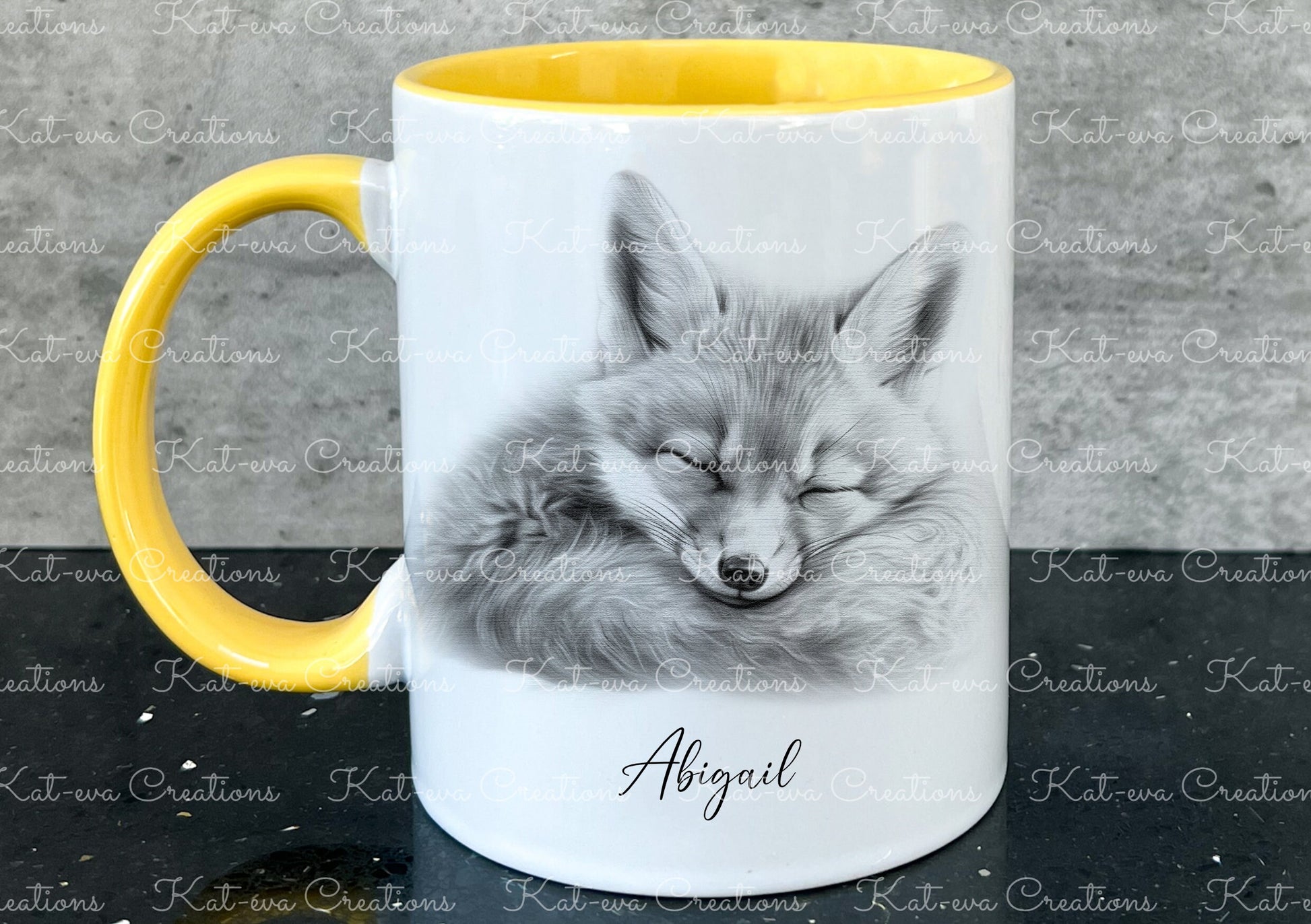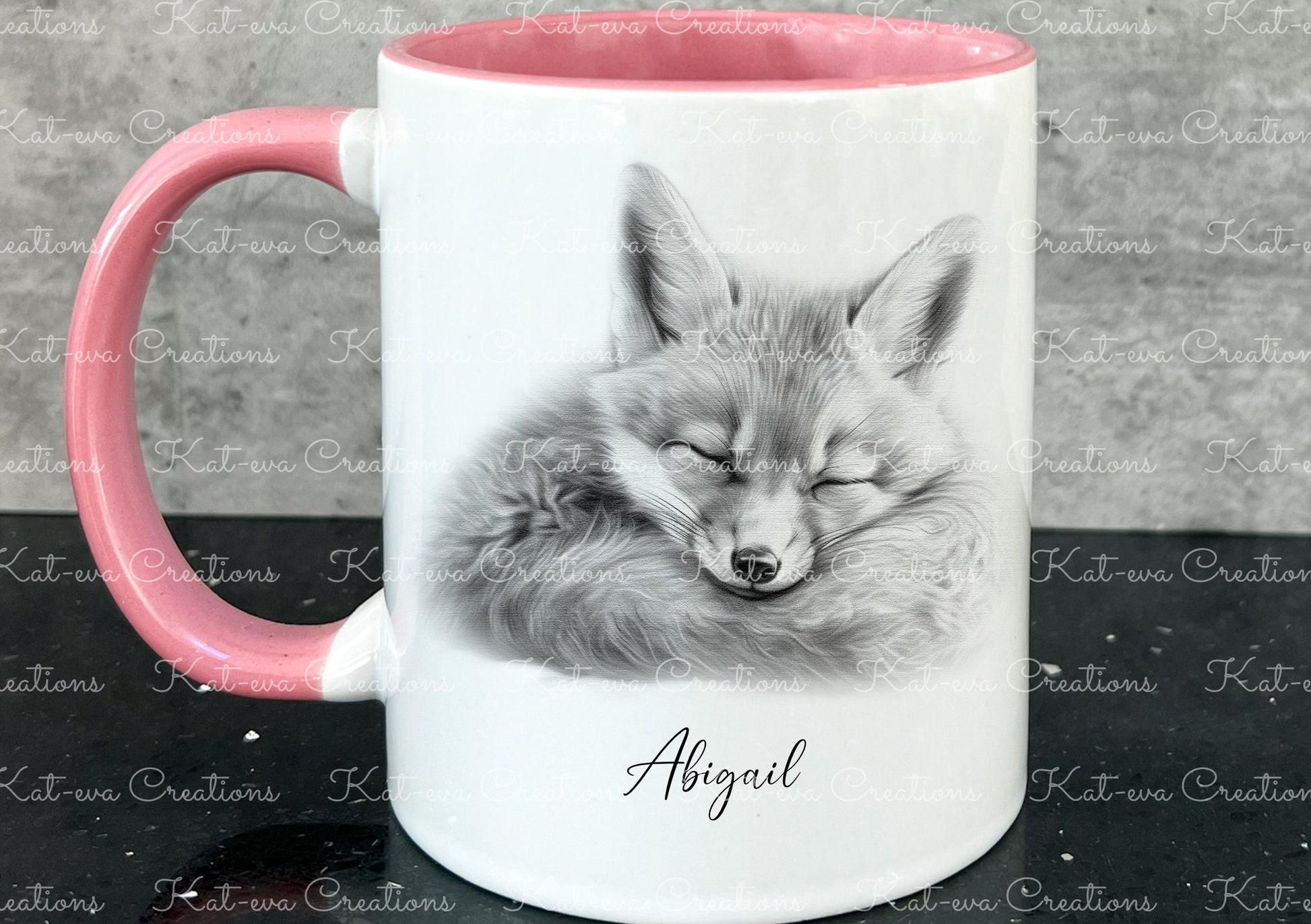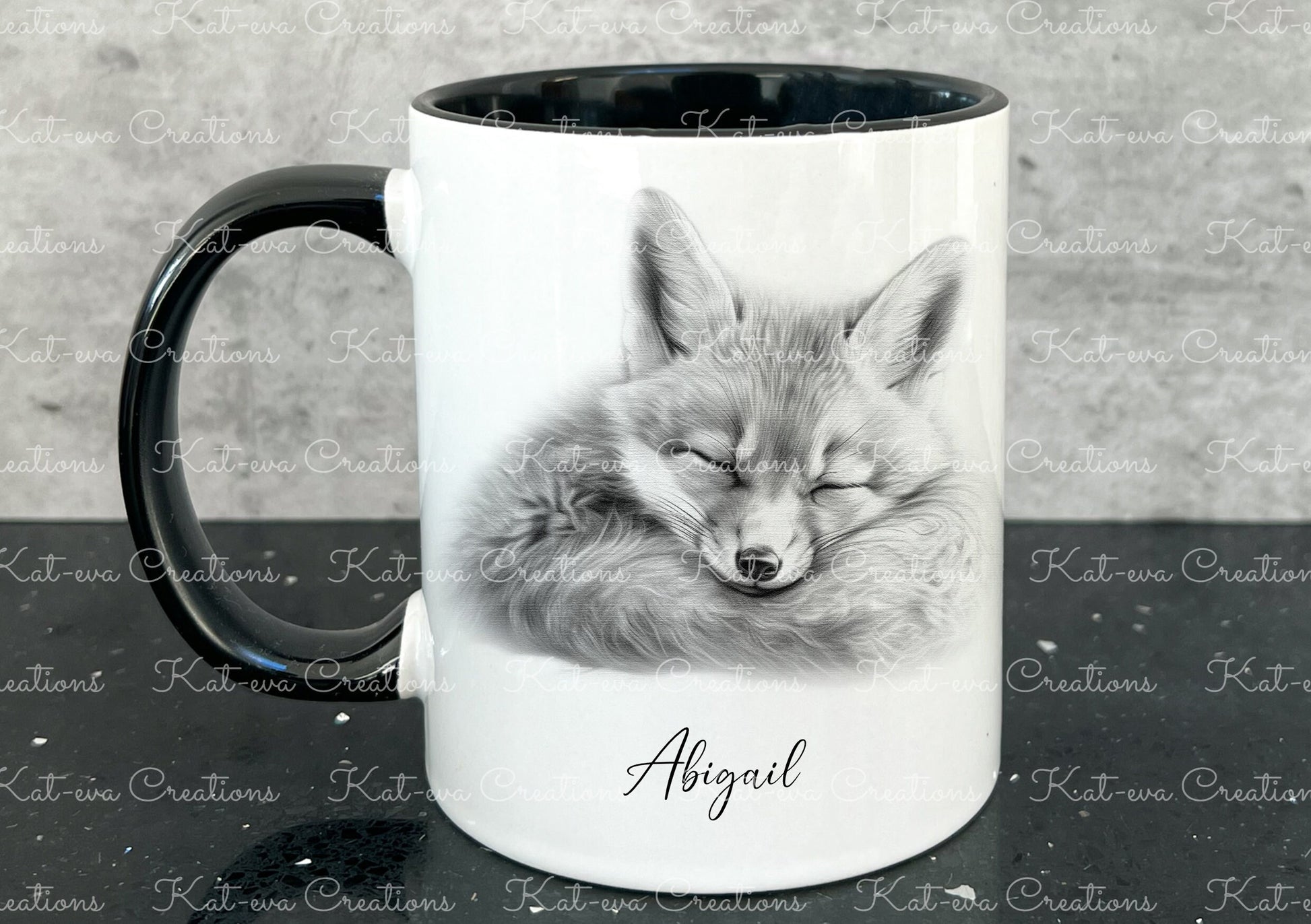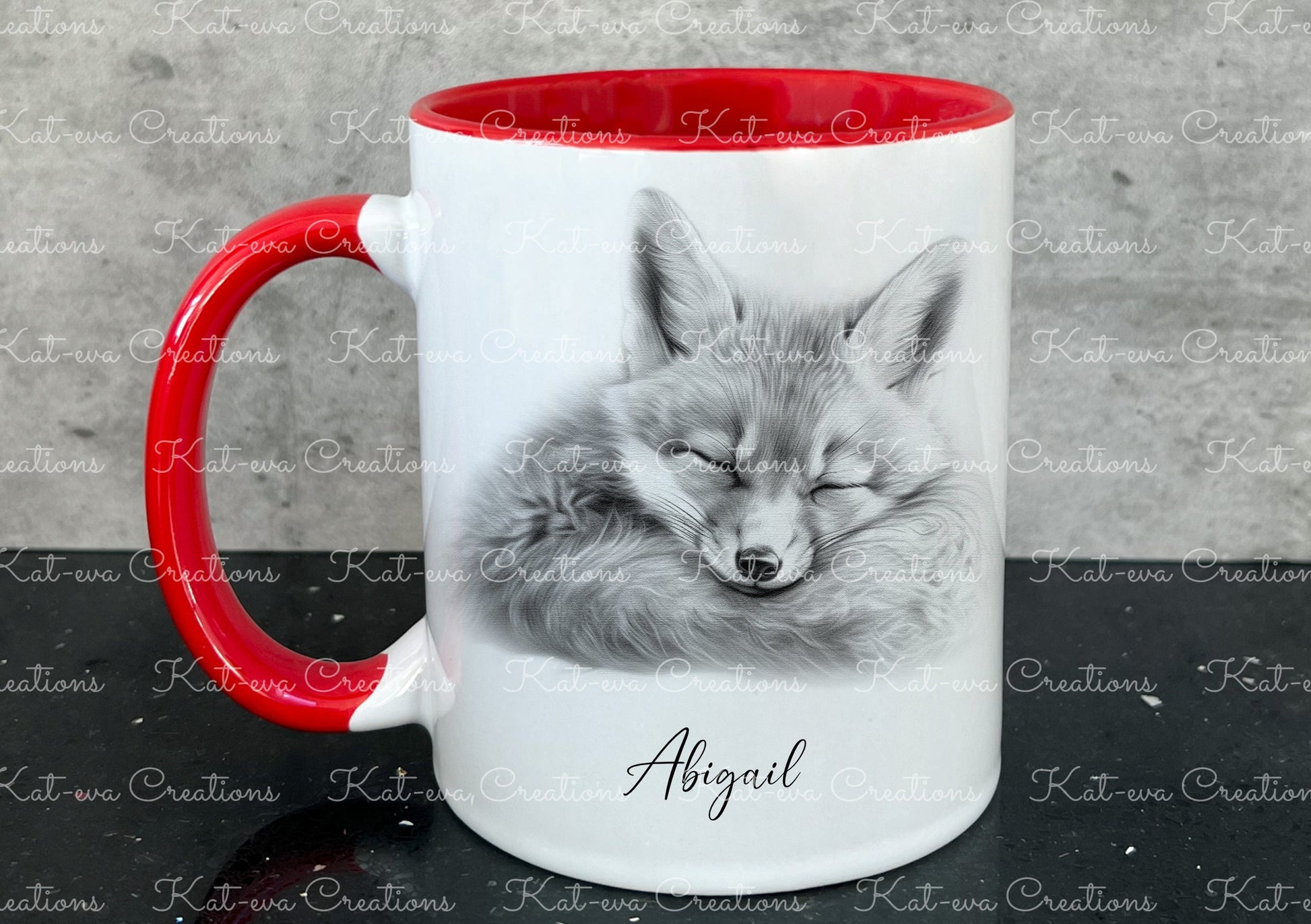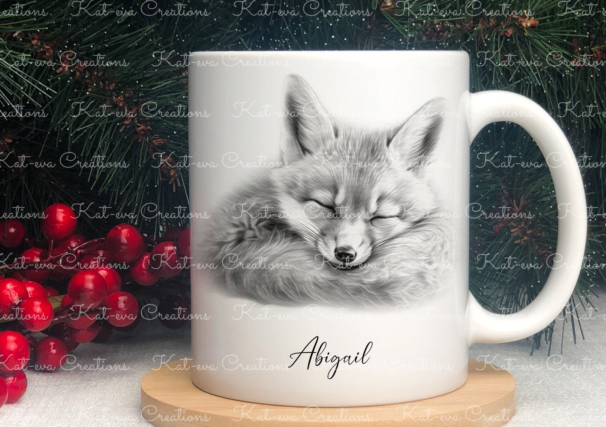 sleeping fox mug. Personalised fox cup. Ideal gift for Christmas. Birthday, secret santa or stocking filler
