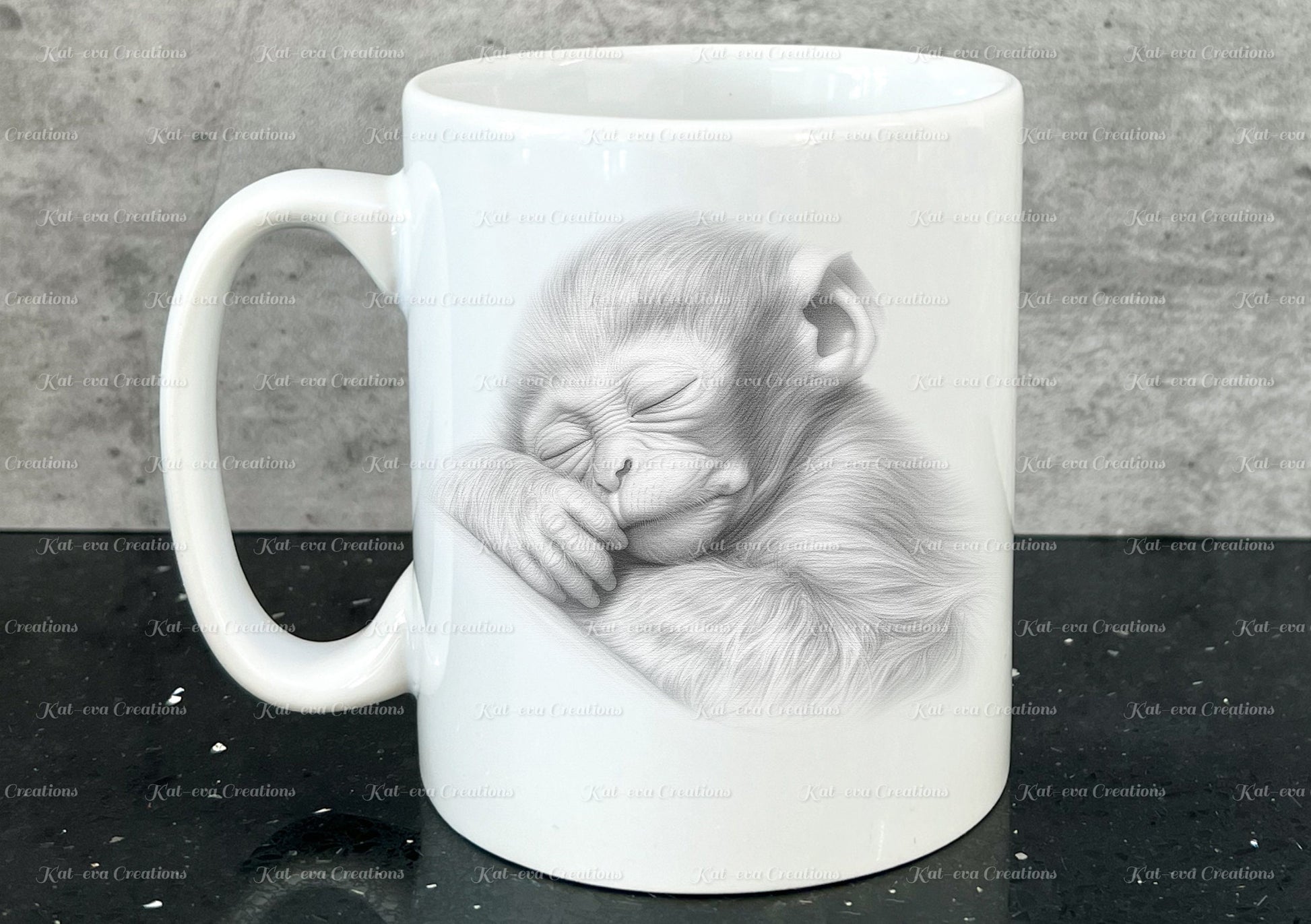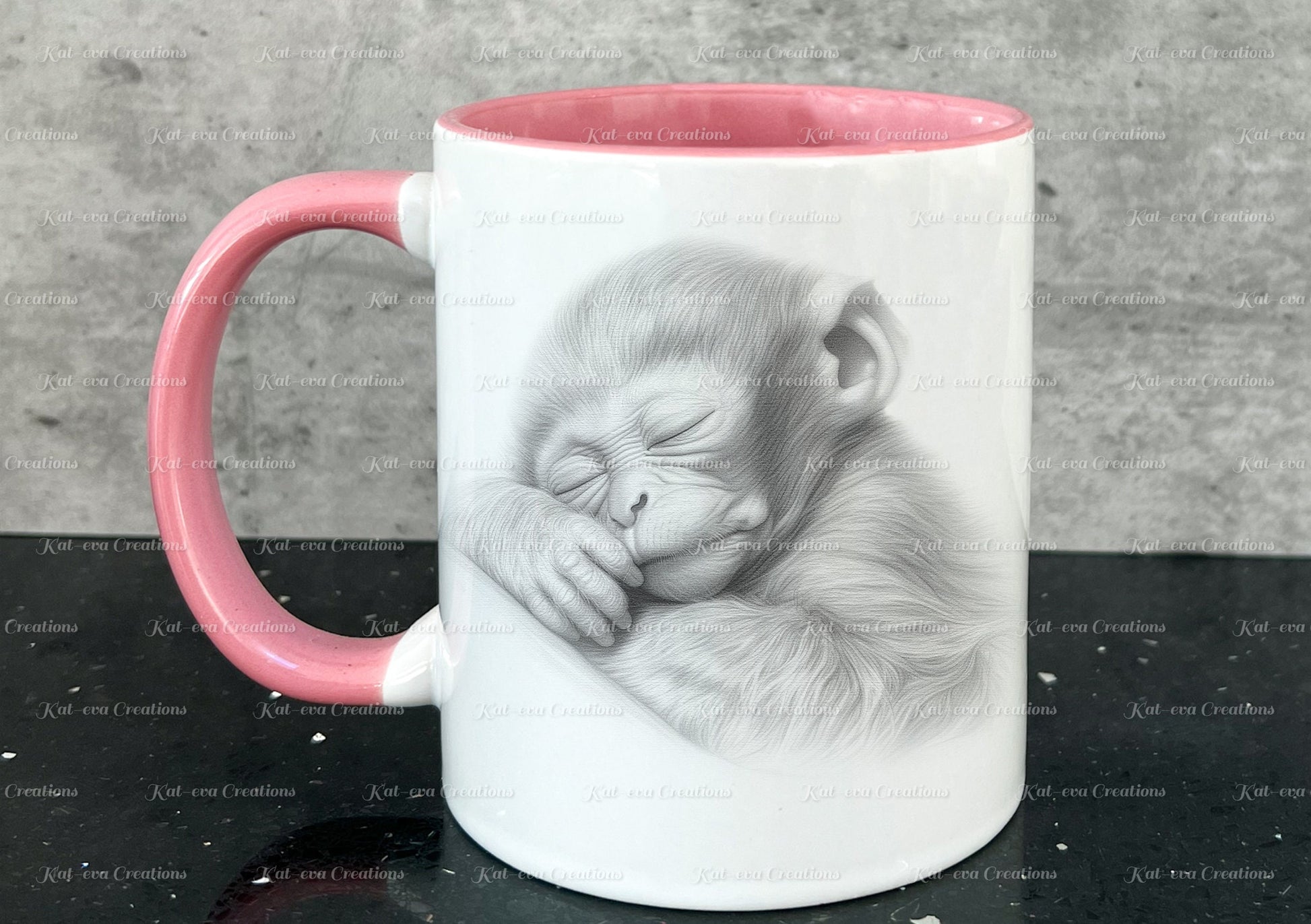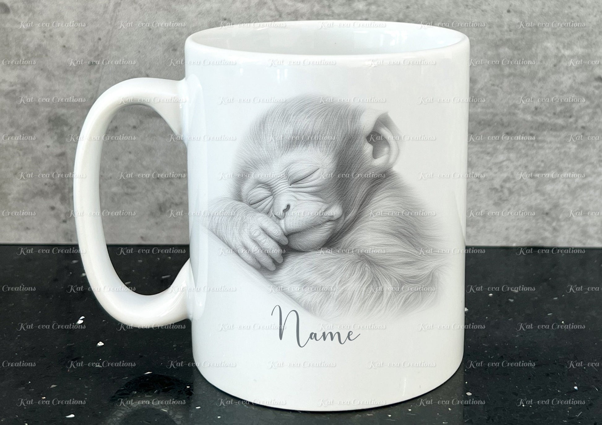 sleeping monkey mug. Personalised baby monkey / chimp cup. Ideal gift for Christmas. Birthday, secret santa or stocking filler
