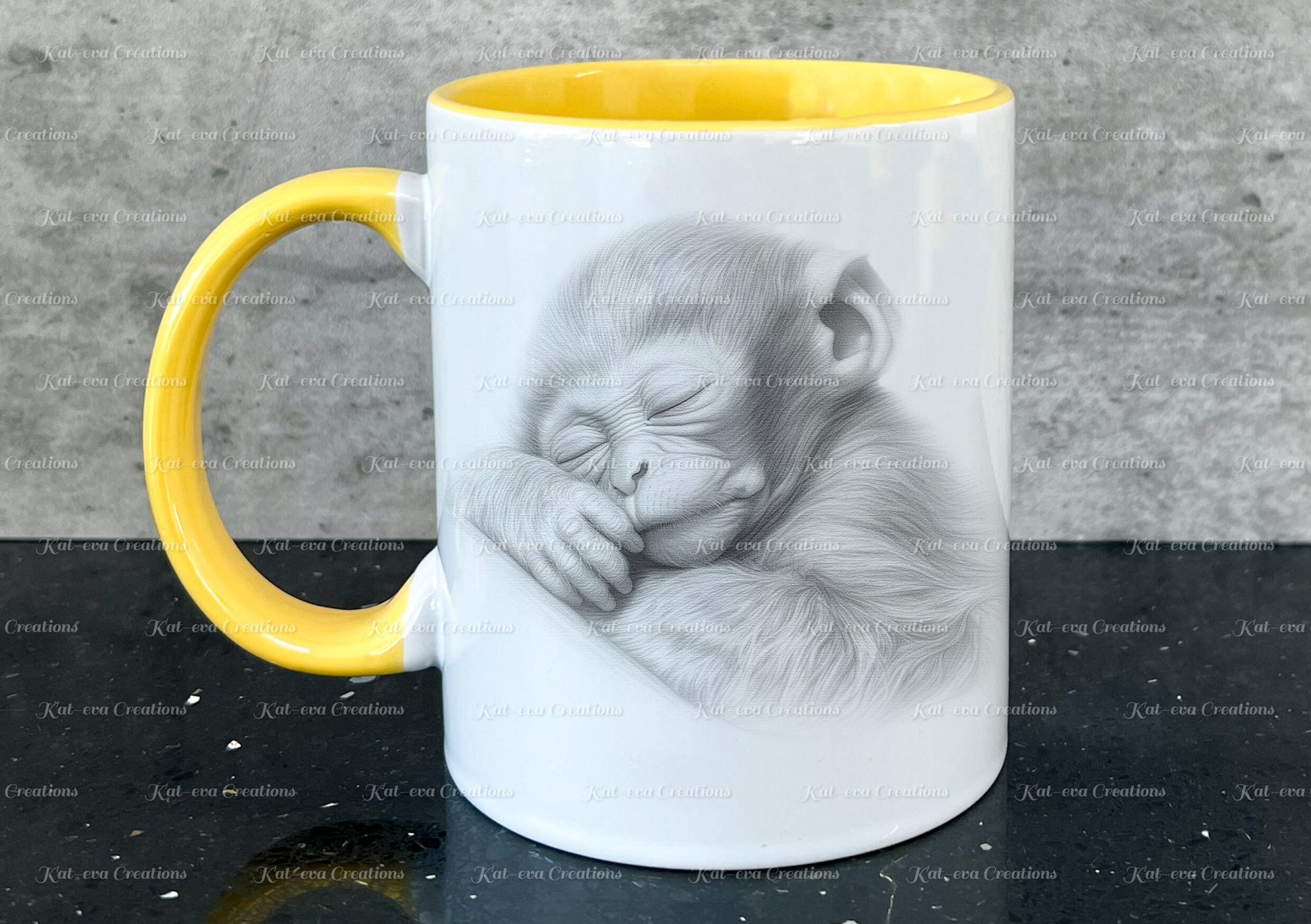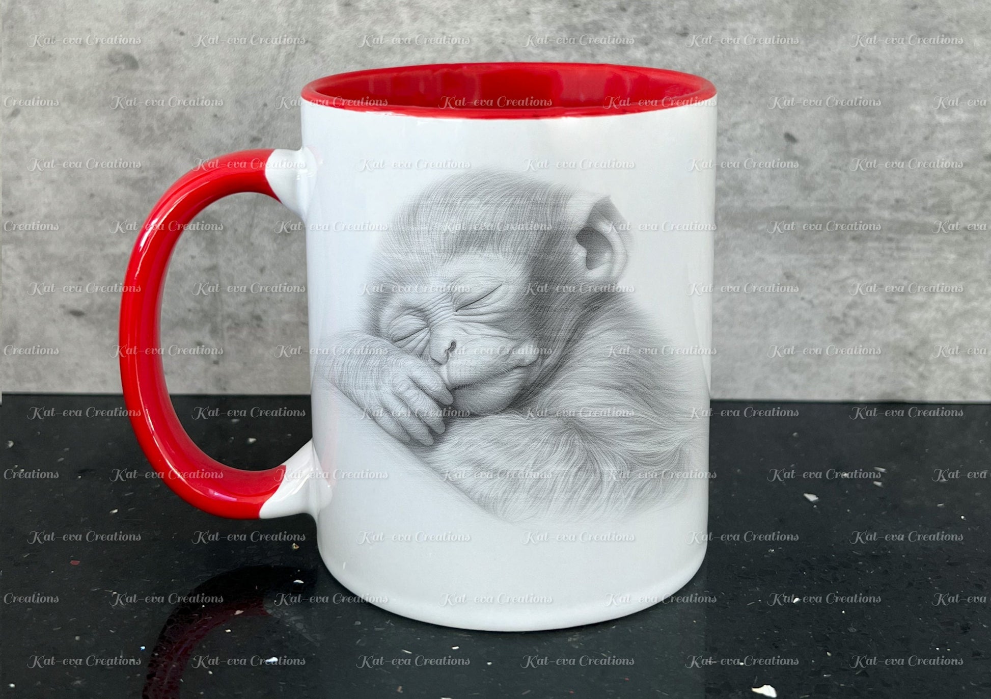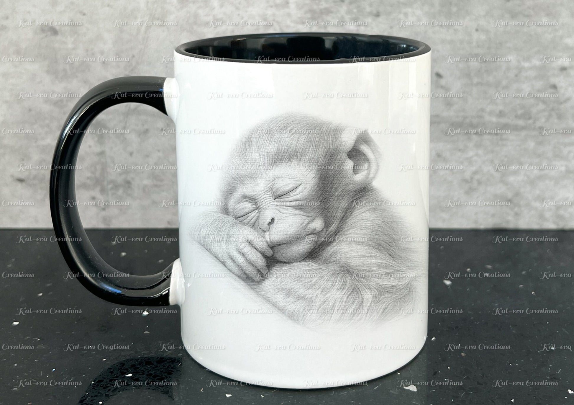 sleeping monkey mug. Personalised baby monkey / chimp cup. Ideal gift for Christmas. Birthday, secret santa or stocking filler