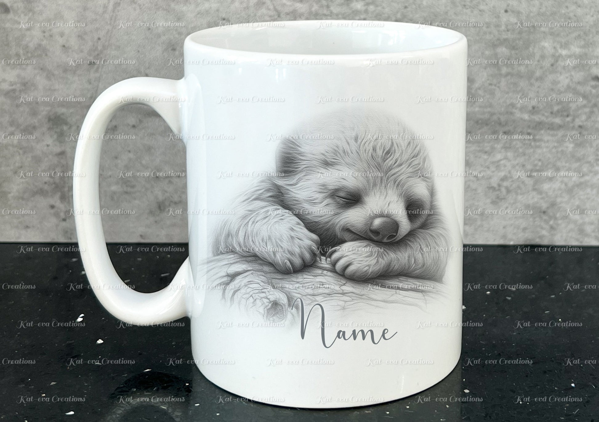sleeping sloth mug. Personalised baby sloth cup. Ideal gift for Christmas. Birthday, secret santa or stocking filler