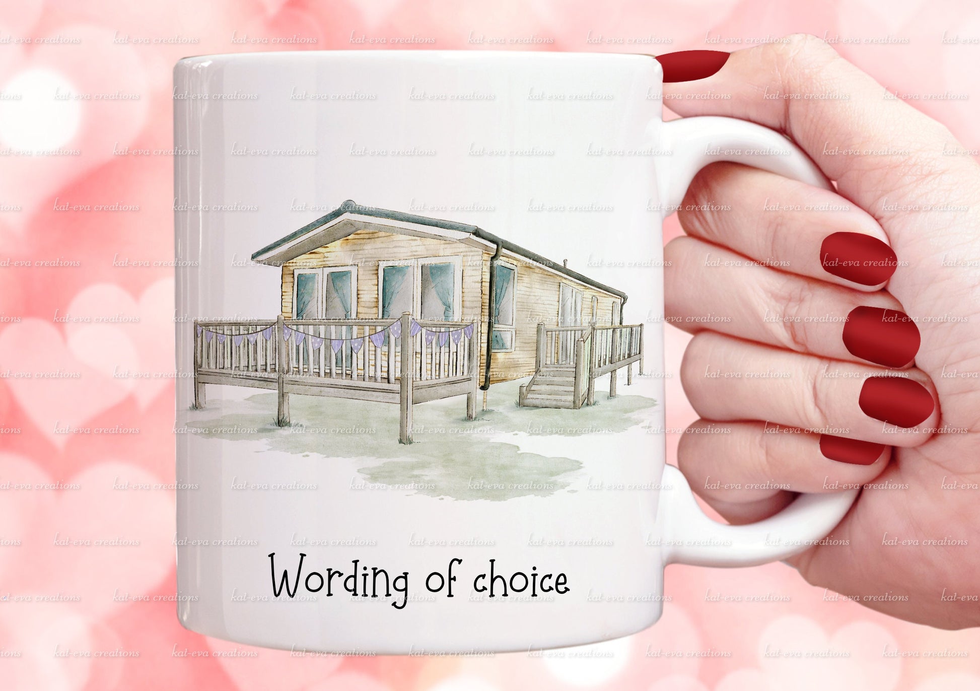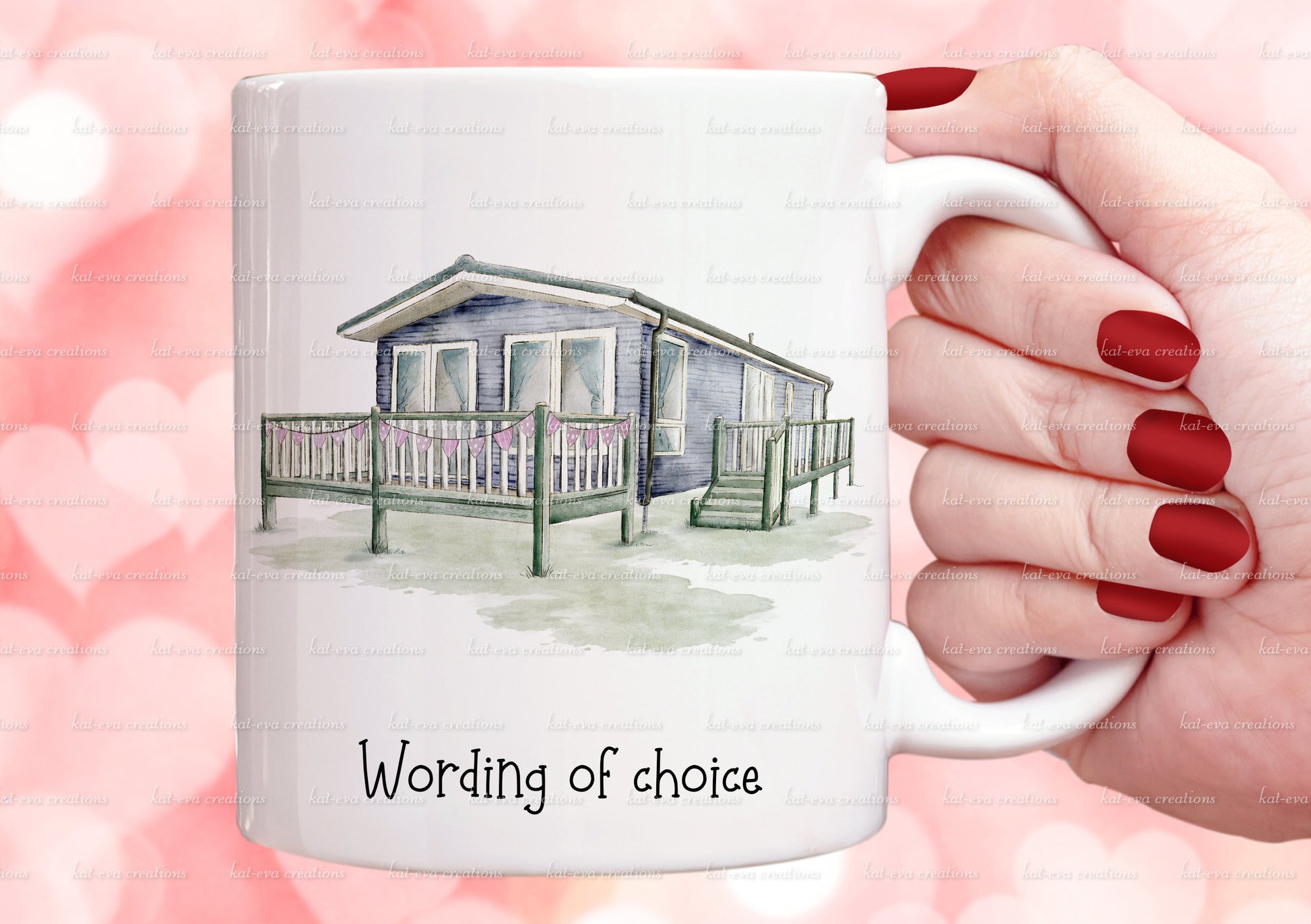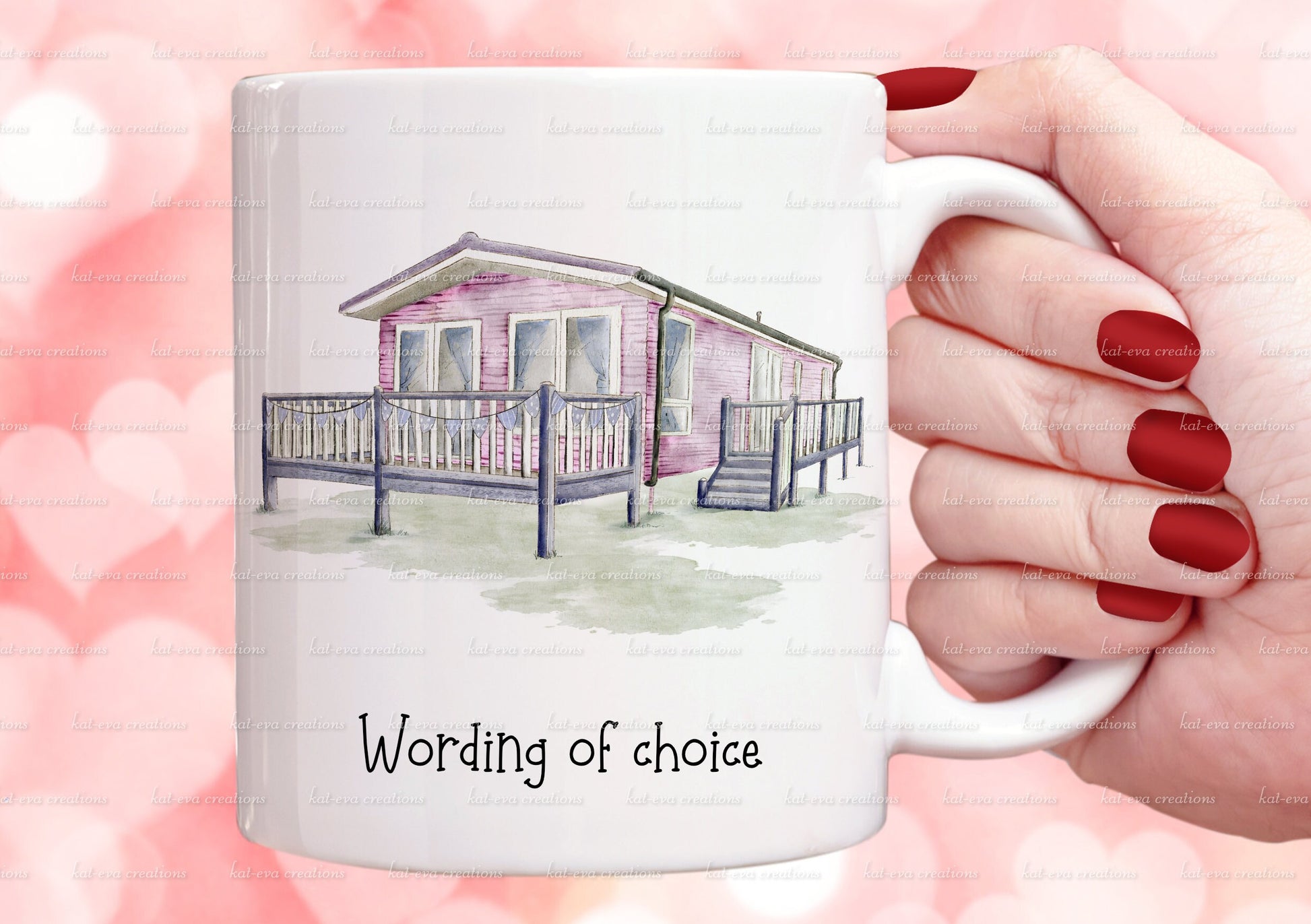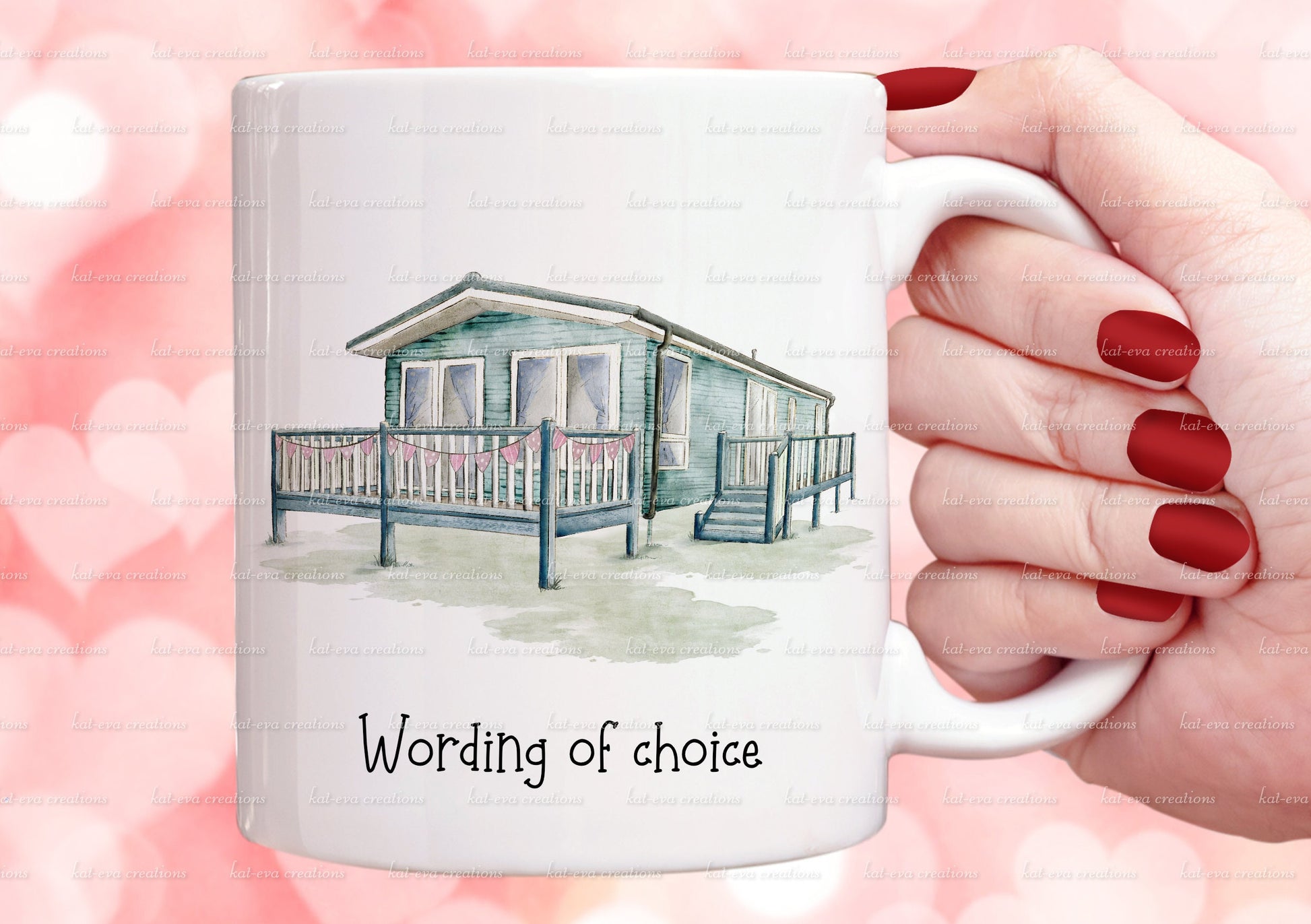 static caravan mug. personalised vintage static caravan cup. choice of colours