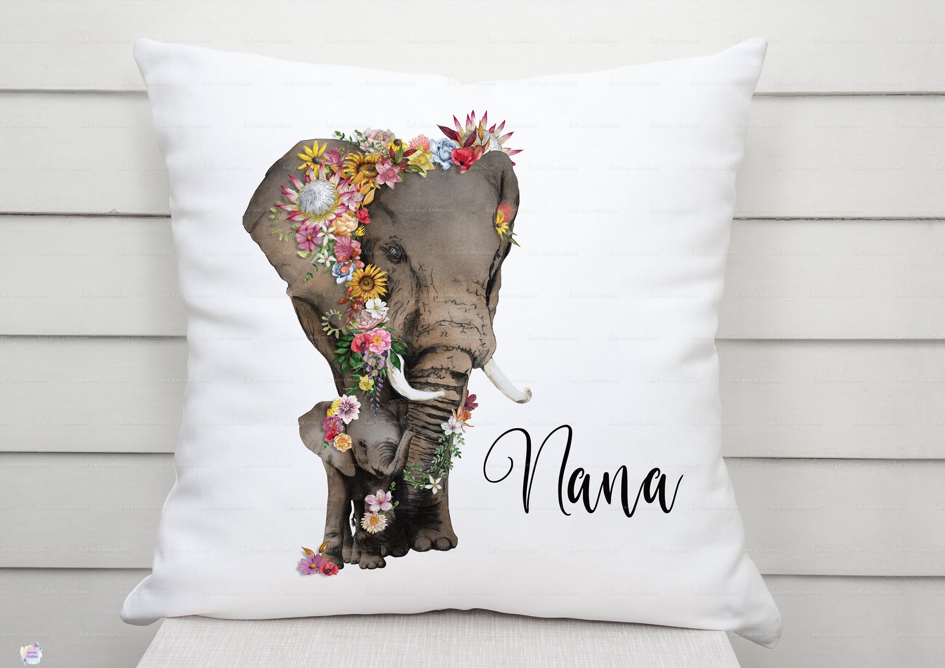 Stunning floral elephant and elephant baby cushion. can be personalised