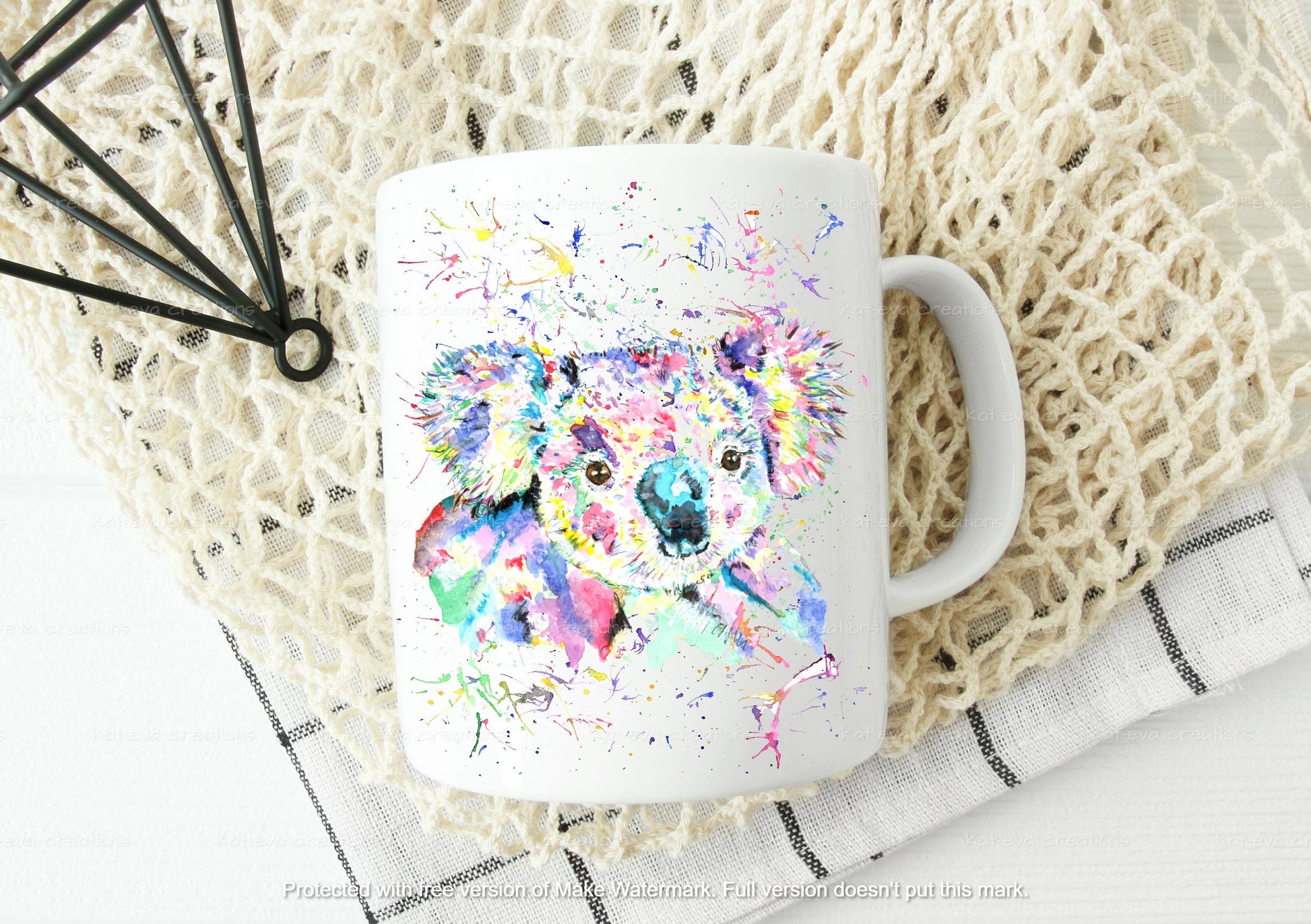 Stunning watercolour koala mug or mug and coaster set. can be personalised