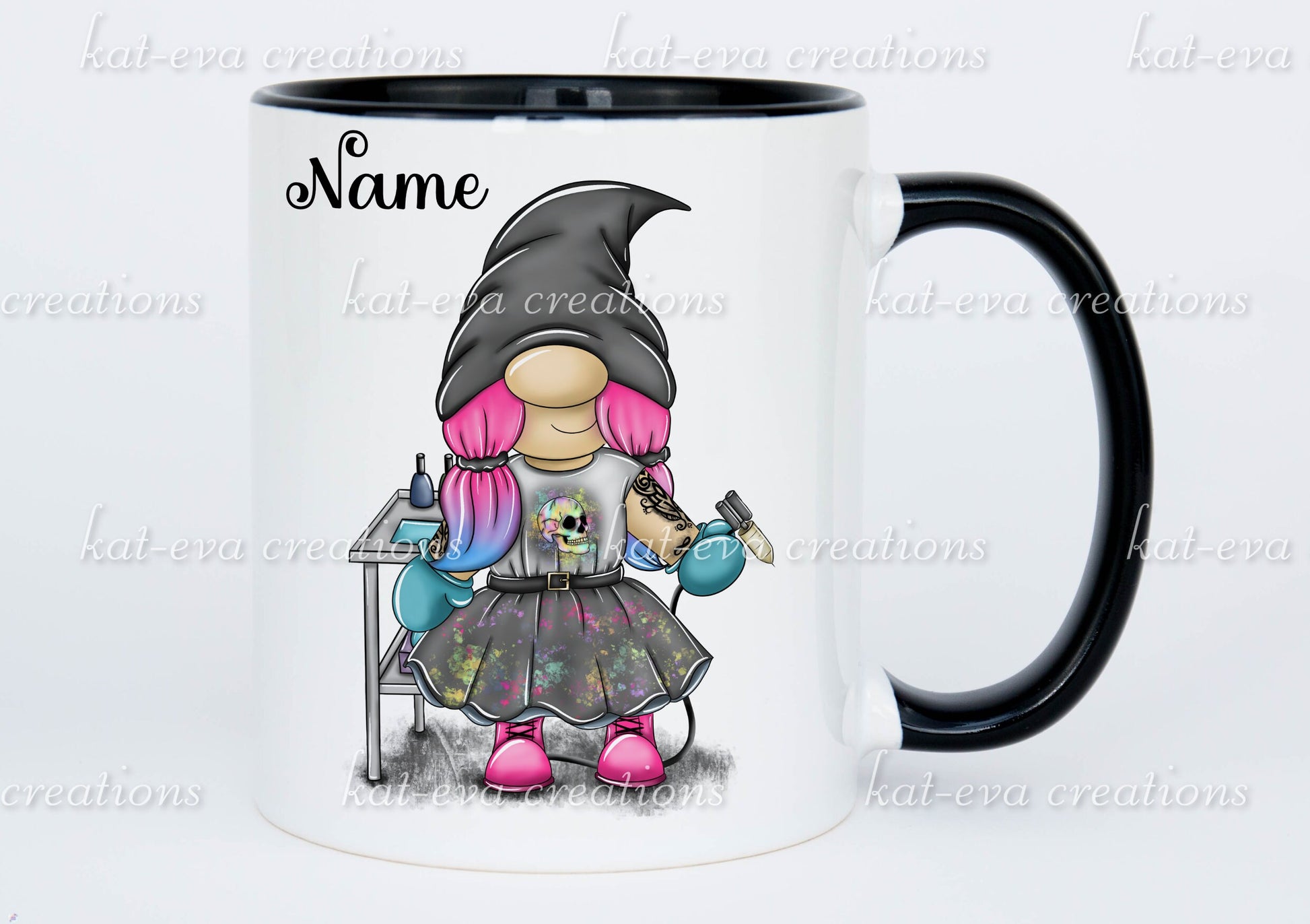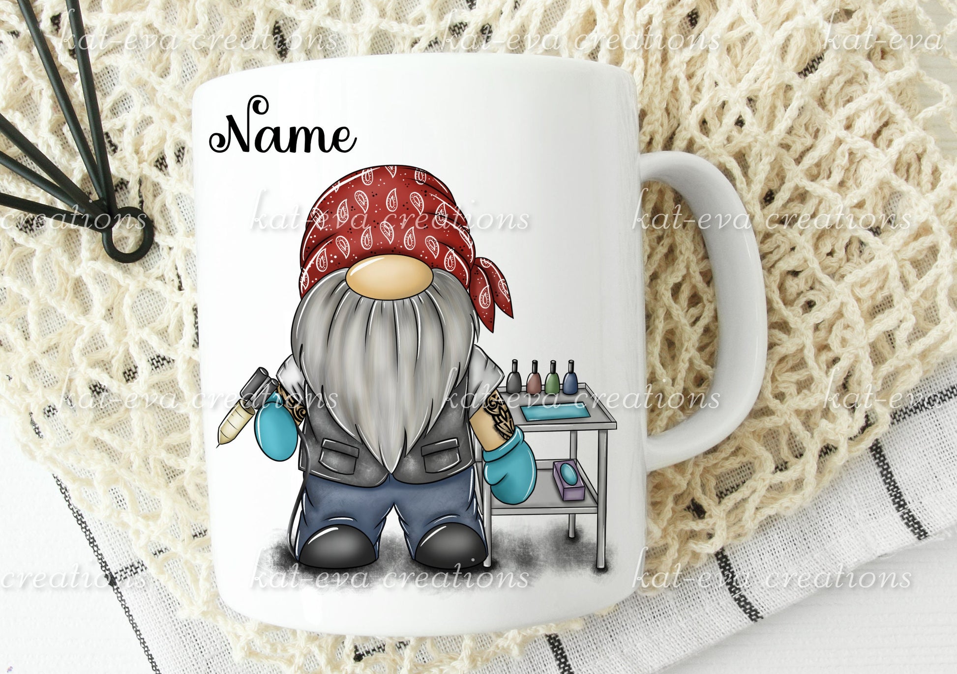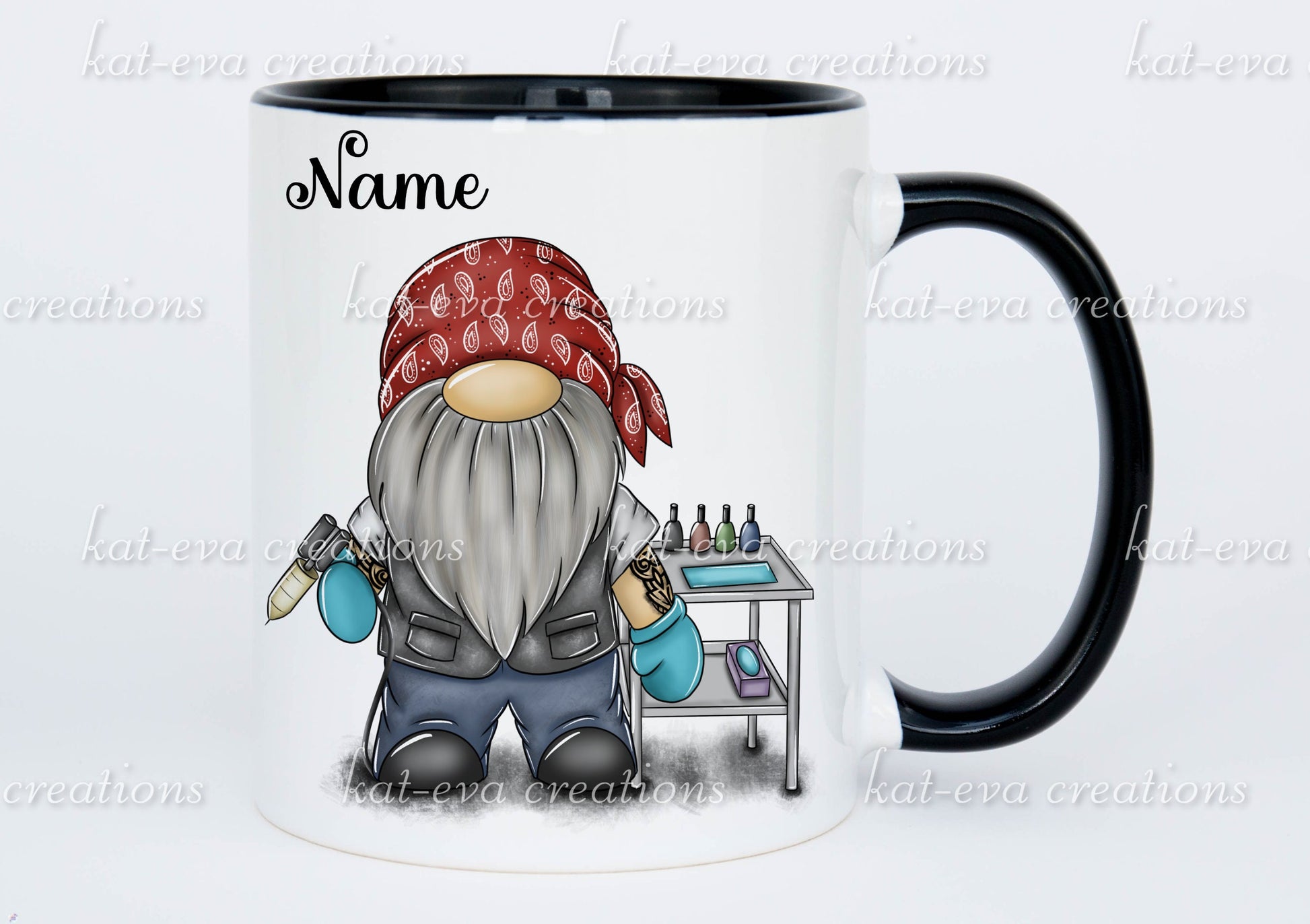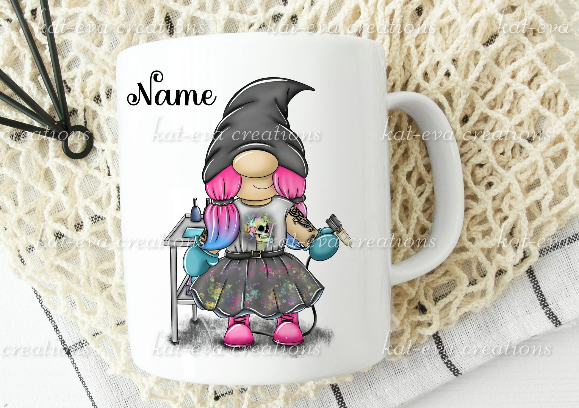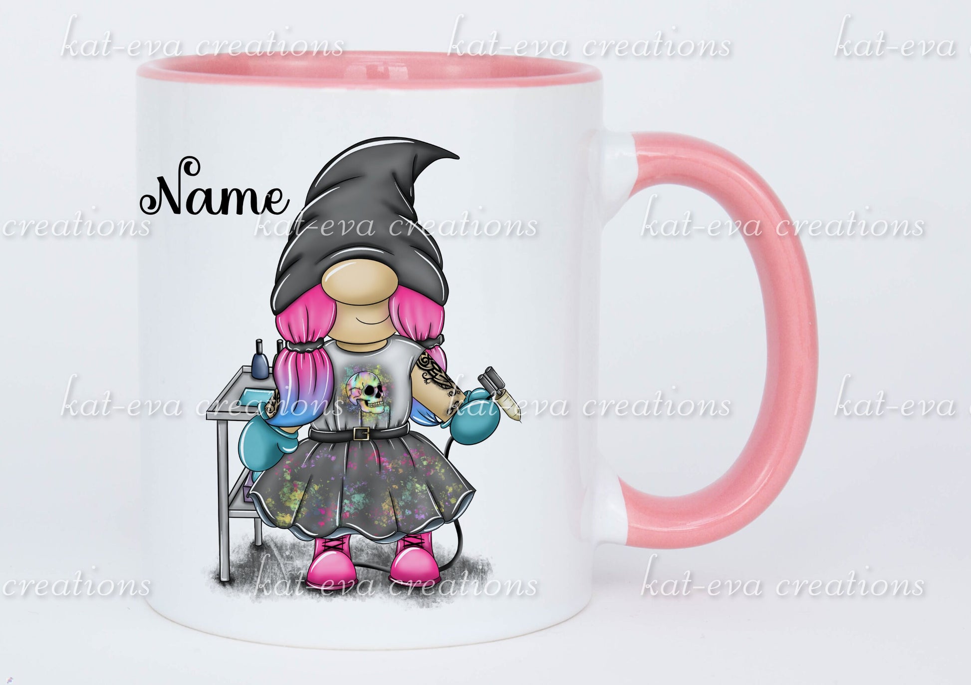tattooist gnome, gonk gonkette personalised mug or mug and coaster set