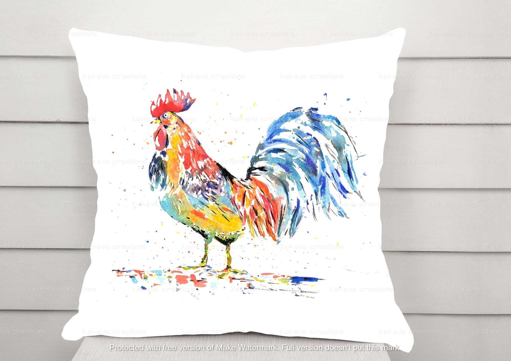 Watercolor chicken personalised cushion. Cockerel, hen. Ideal birthday or Christmas present. Farmyard animals