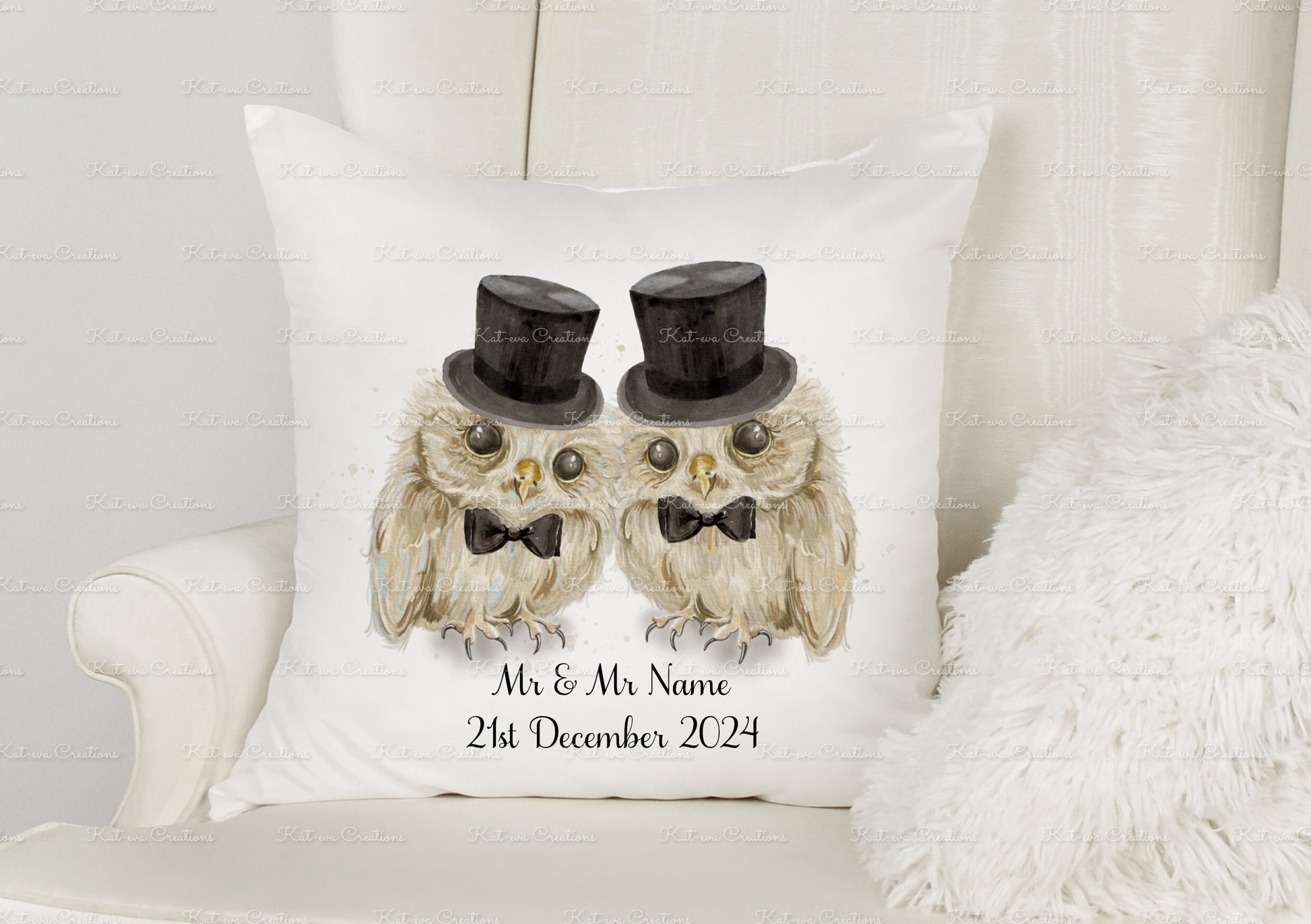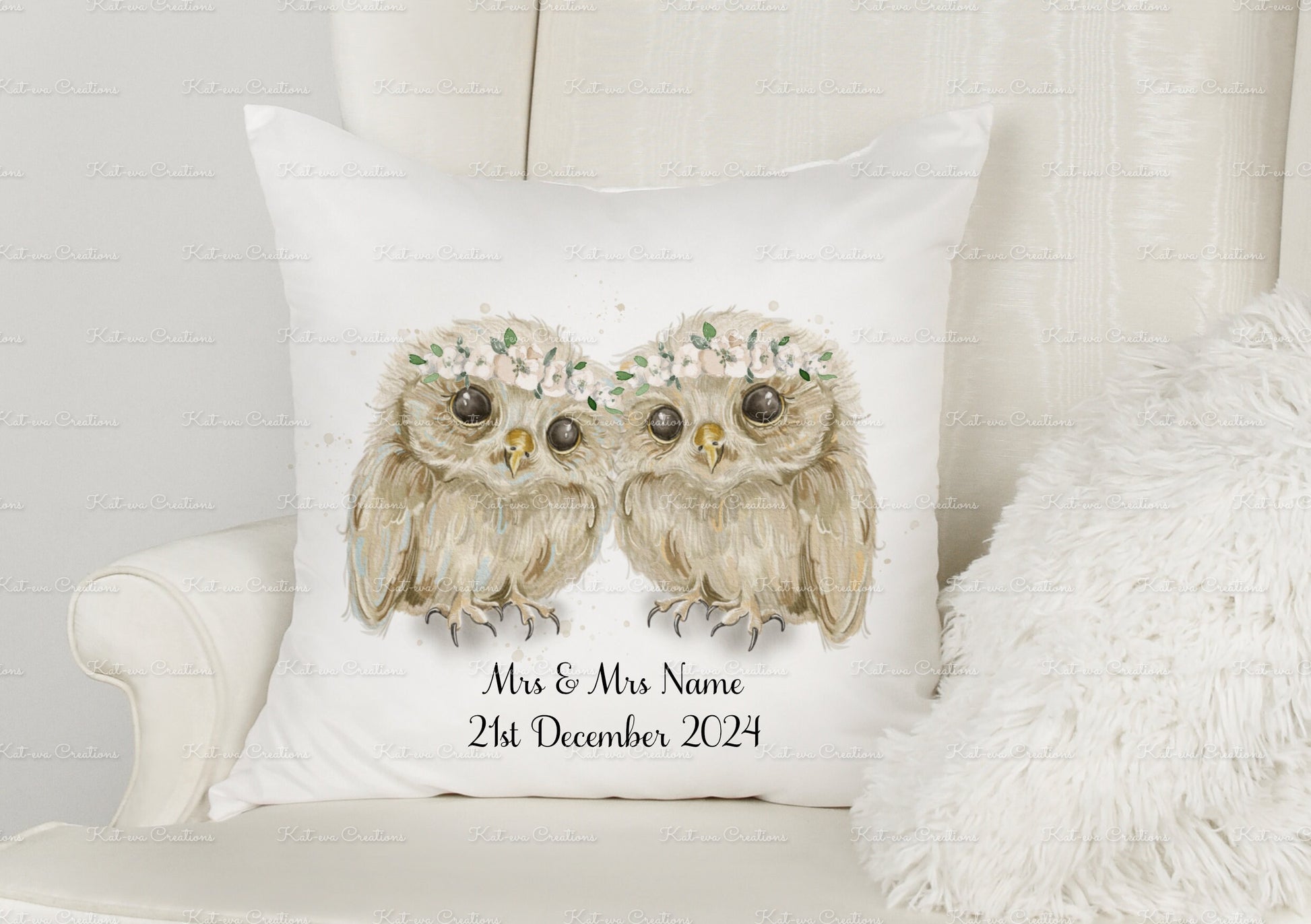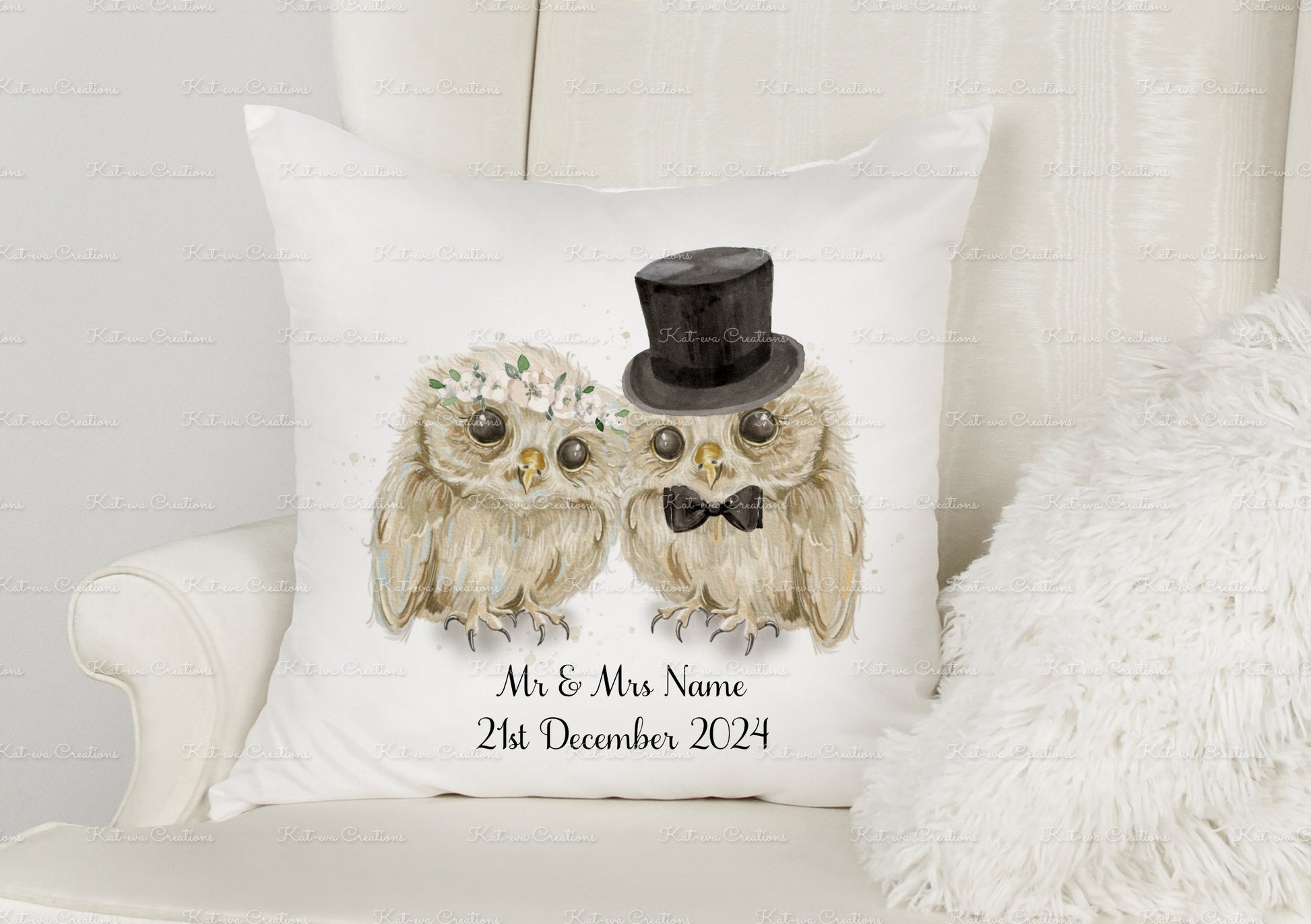 Wedding gift, Personalised Wedding Cushion. Owl pillow. Bride and Groom Owl present