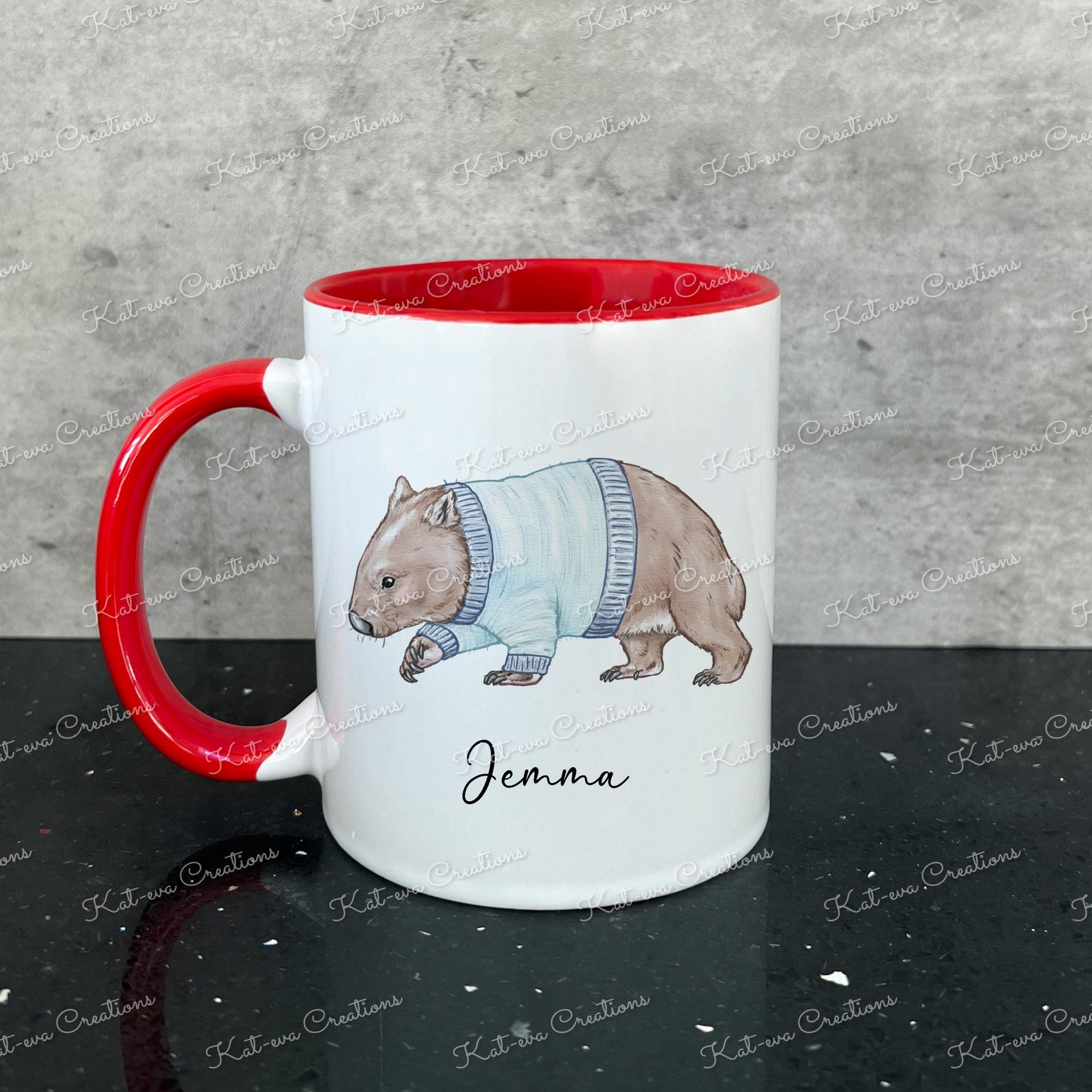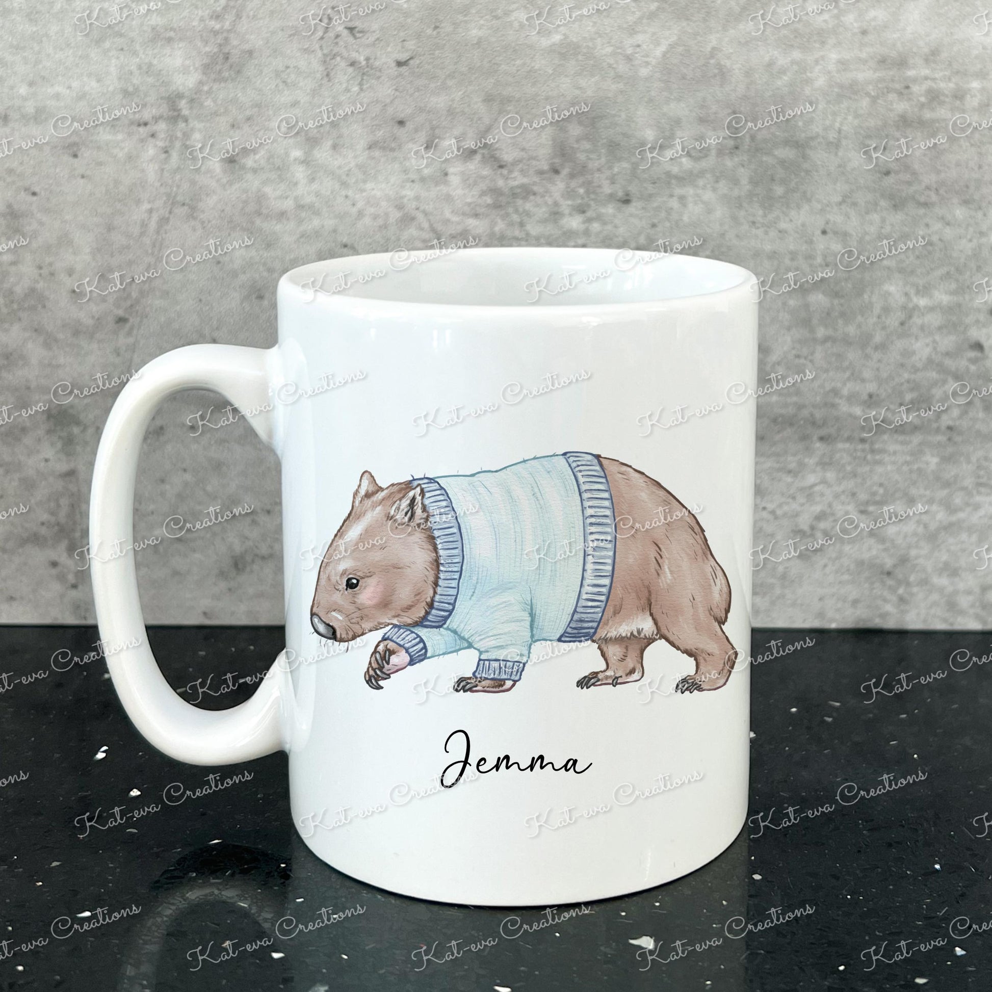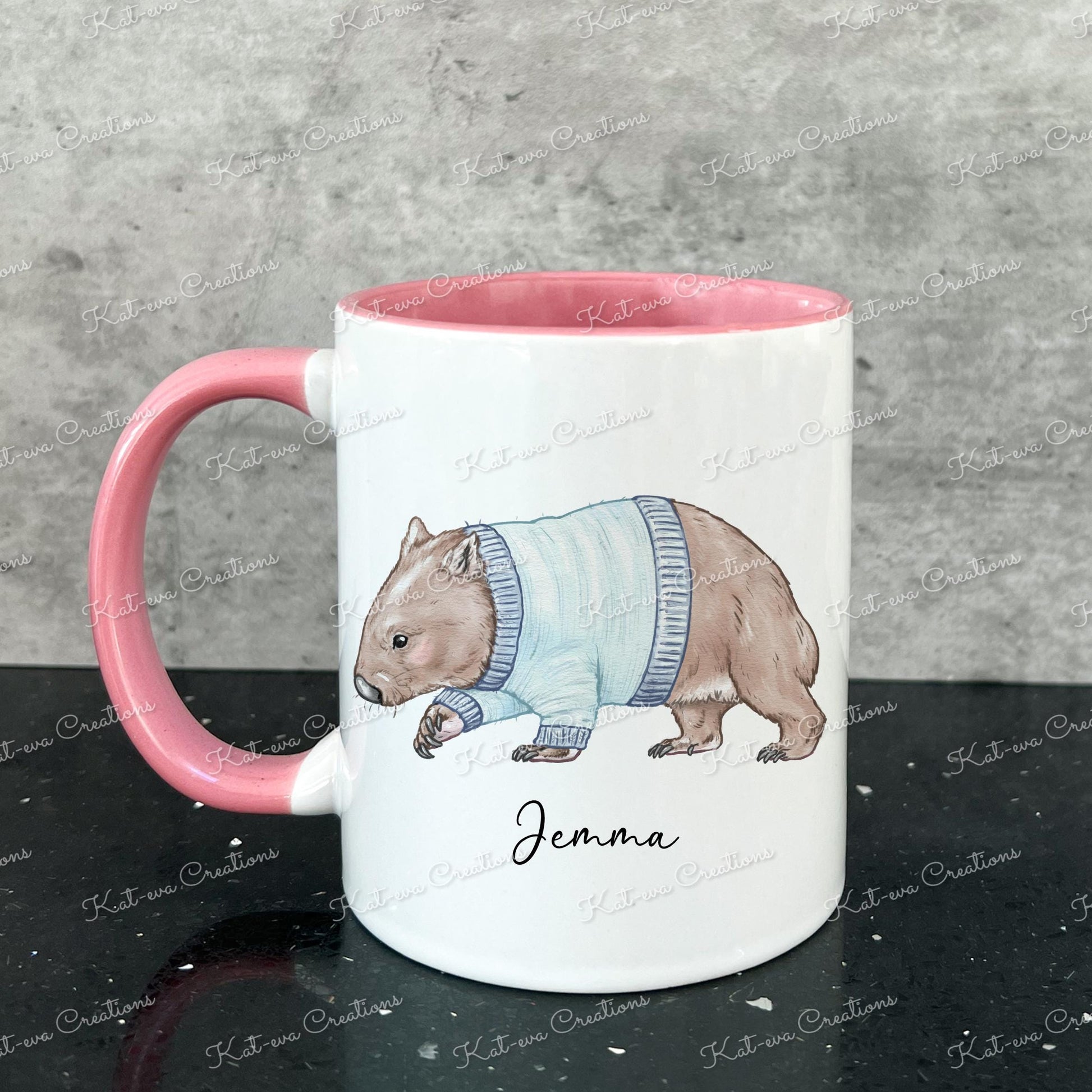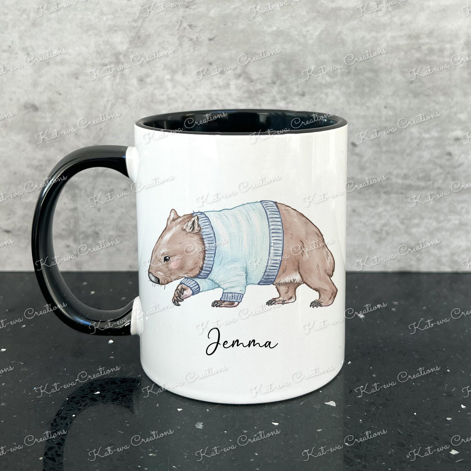 wombat mug, personalised wombat cup. ideal for Christmas eve box, stocking filler, secret santa gift or birthday present.